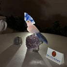 Disclaimer: This is a natural gemstone product sold by Brazil Gems® as is and as you see it in its images and video. The bird figurine has been hand carved out of natural gemstones and constructed together to give it its unique look. It and its cluster base may contain natural imperfections as well as imperfections, broken edges and repairs from the hand carving, extraction, mounting and prepping processes. The cluster base has a small hole drilled in the top for the bird to mount into. The crystal bird detaches from its base for shipping purposes. At Brazil Gems® we make every effort to get measurements as exact as possible but they are done by human hands and eyes and therefore may have minor discrepancies.