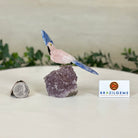 Each intricate detail of the bird is meticulously carved by skilled Brazilian artisans who have mastered the technique that combines the beauty of Brazil's gemstones with their colorful native birds into an amazing art piece. Elevate your space with the timeless charm of our Cockatoo gemstone bird on an Amethyst base.