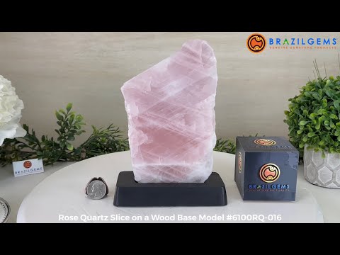 Elevate your space with this Brazilian Rose Quartz Slice on a wood base. Beautifully polished on the front and with rough edges and back. This slice will make a great addition or start to your crystal collection. It will accent the décor of any room.
