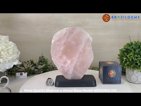 Elevate your space with this Brazilian Rose Quartz Slice on a wood base. Beautifully polished on the front and with rough edges and back. This slice will make a great addition or start to your crystal collection. It will accent the décor of any room.