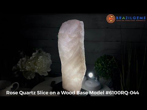 Brazilian Rose Quartz Slice on a Wood Base. Beautifully polished on the front with rough edges on the sides and back. This slice will make a great addition or start to your crystal collection. It will accent the décor of any room. Place it on a shelf or desk and admire it for years to come. It glows amazingly with a light behind it.