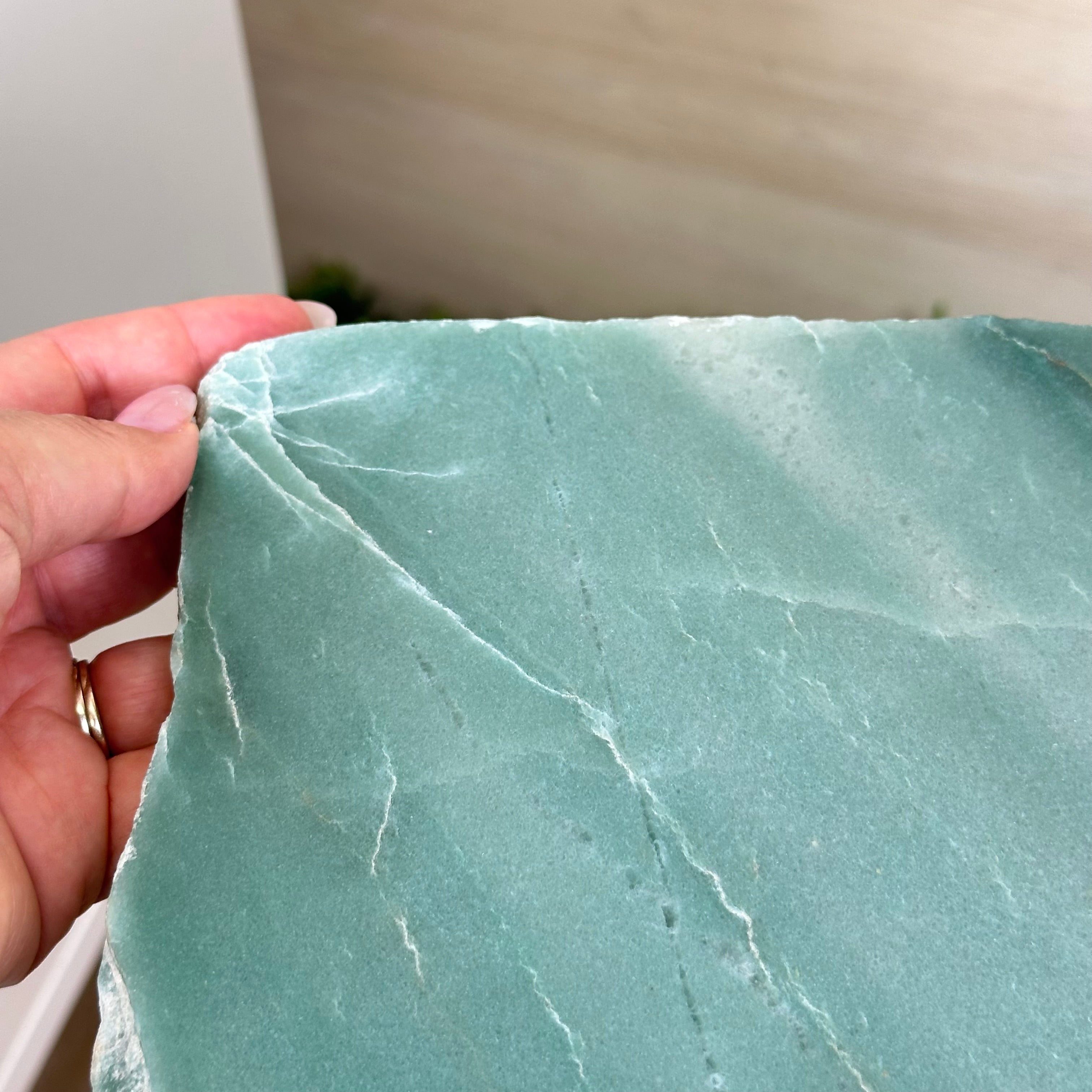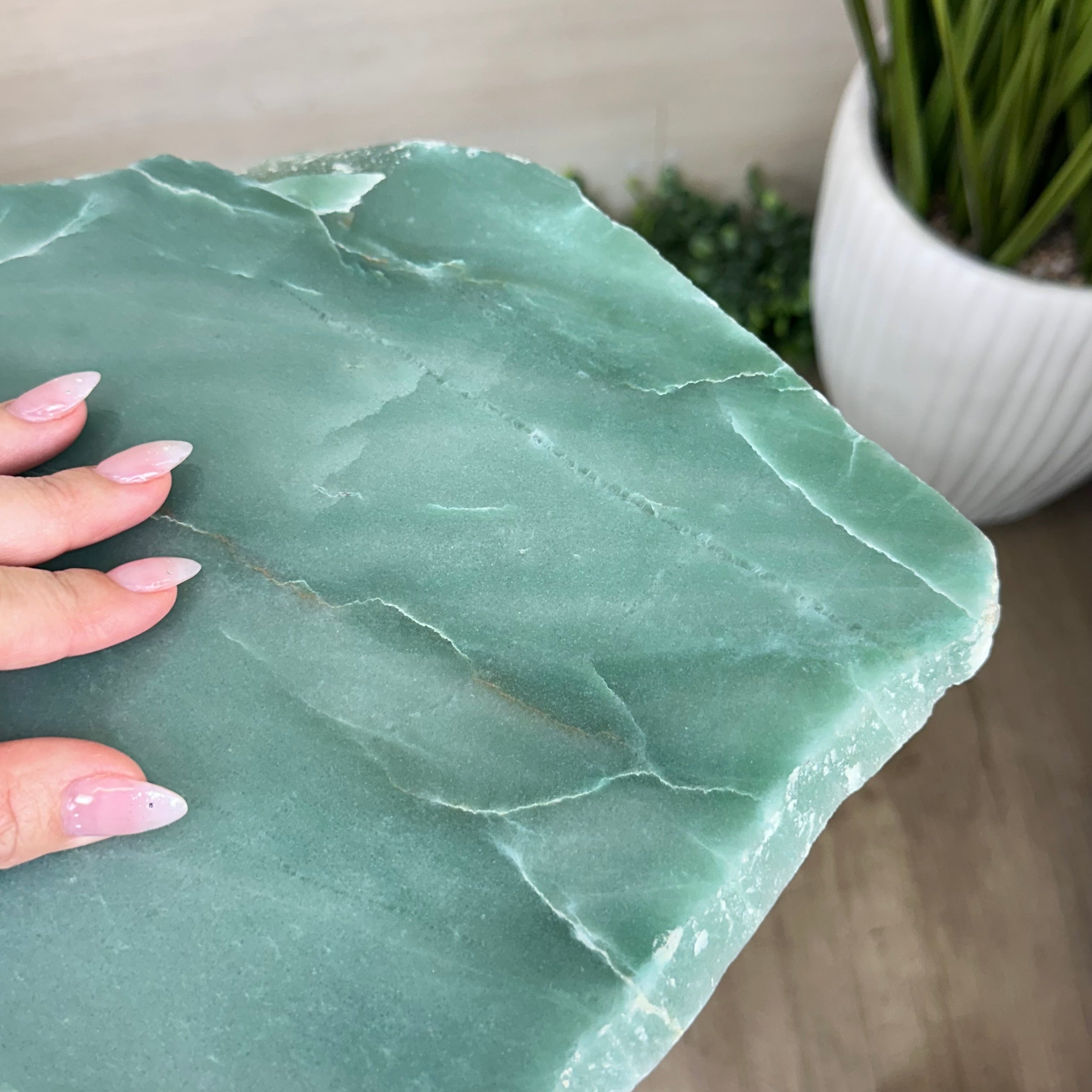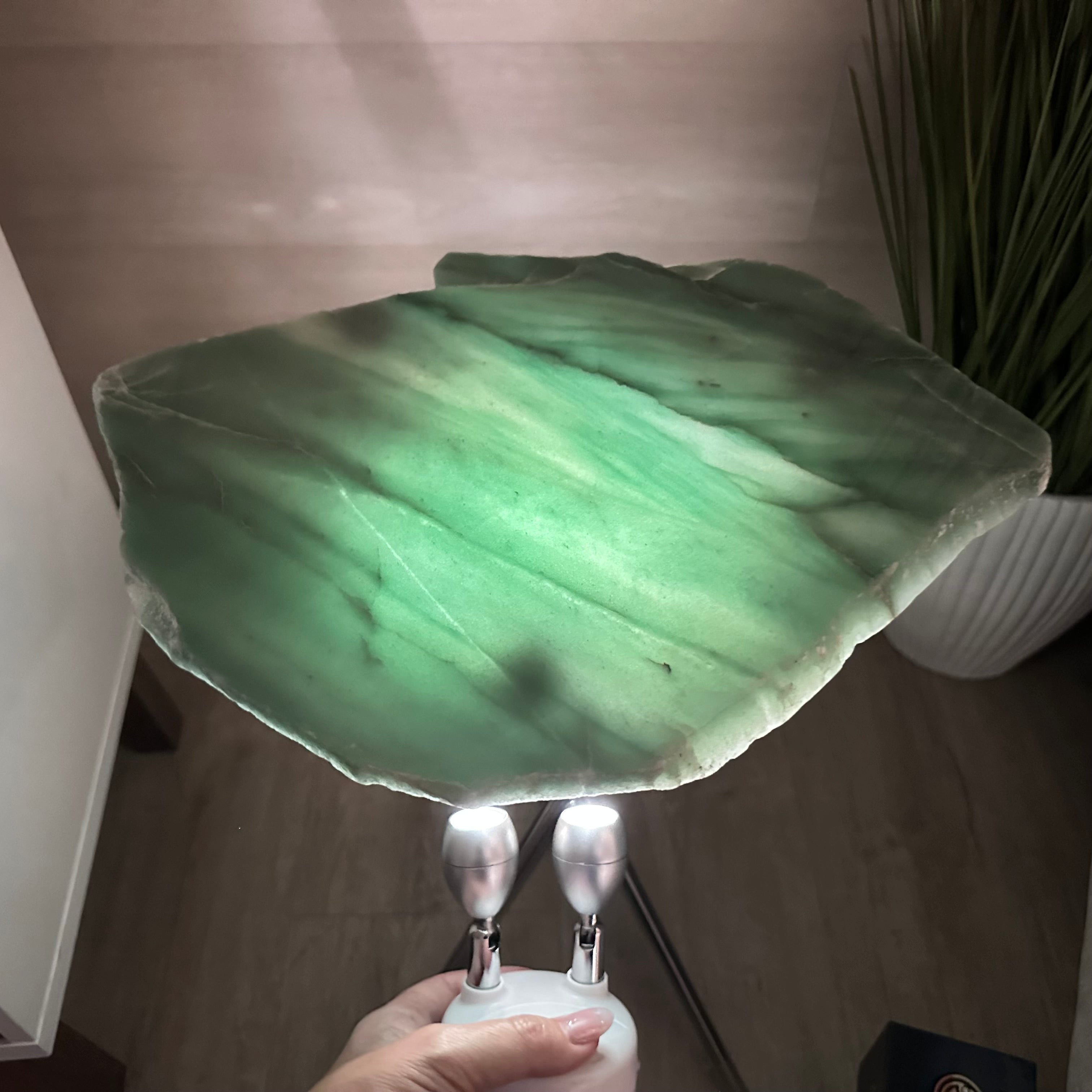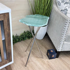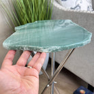 Large Natural Green Quartz Side Table w/ one slice of stone on a chrome metal base. An amazing vibrant specimen to accent the decor of your home.