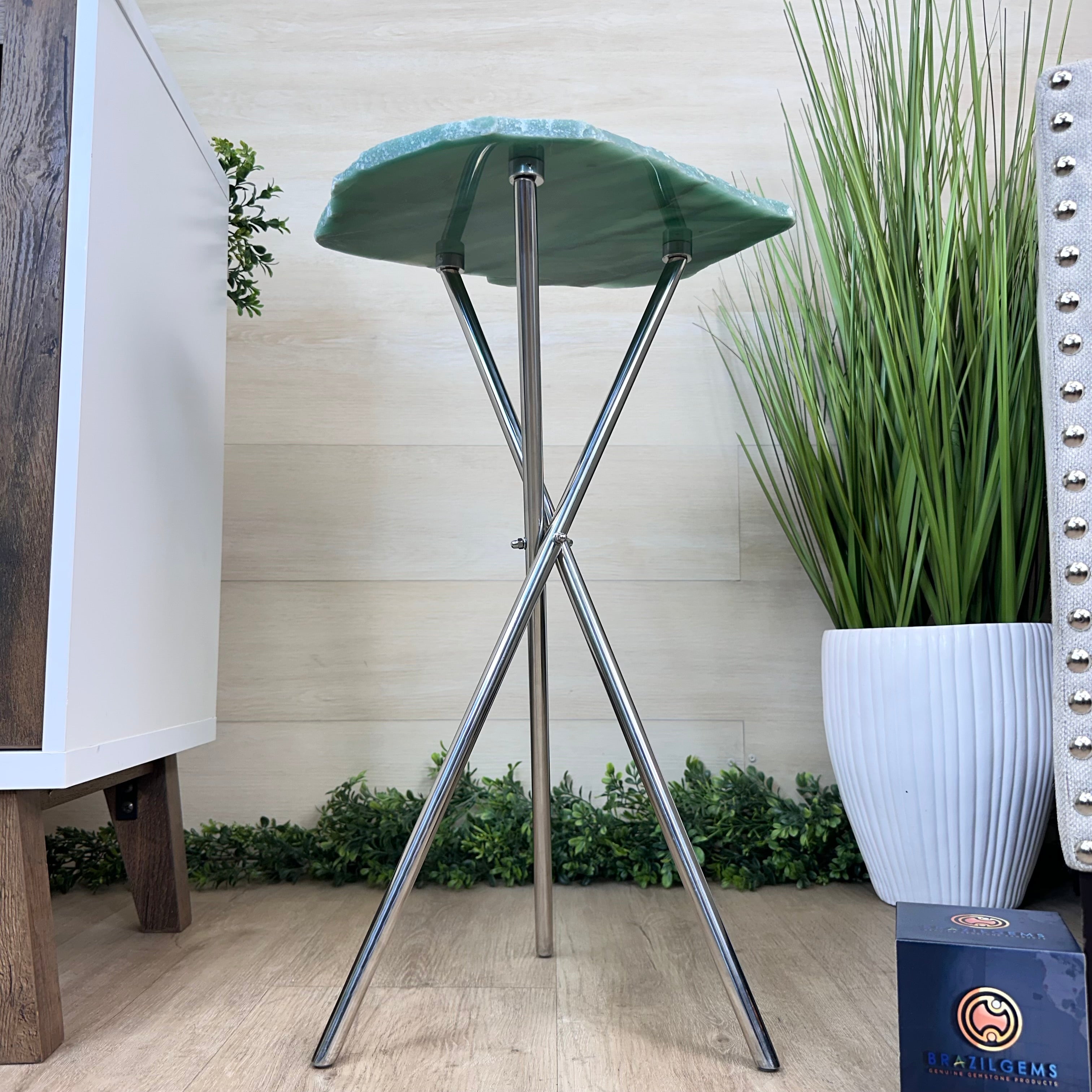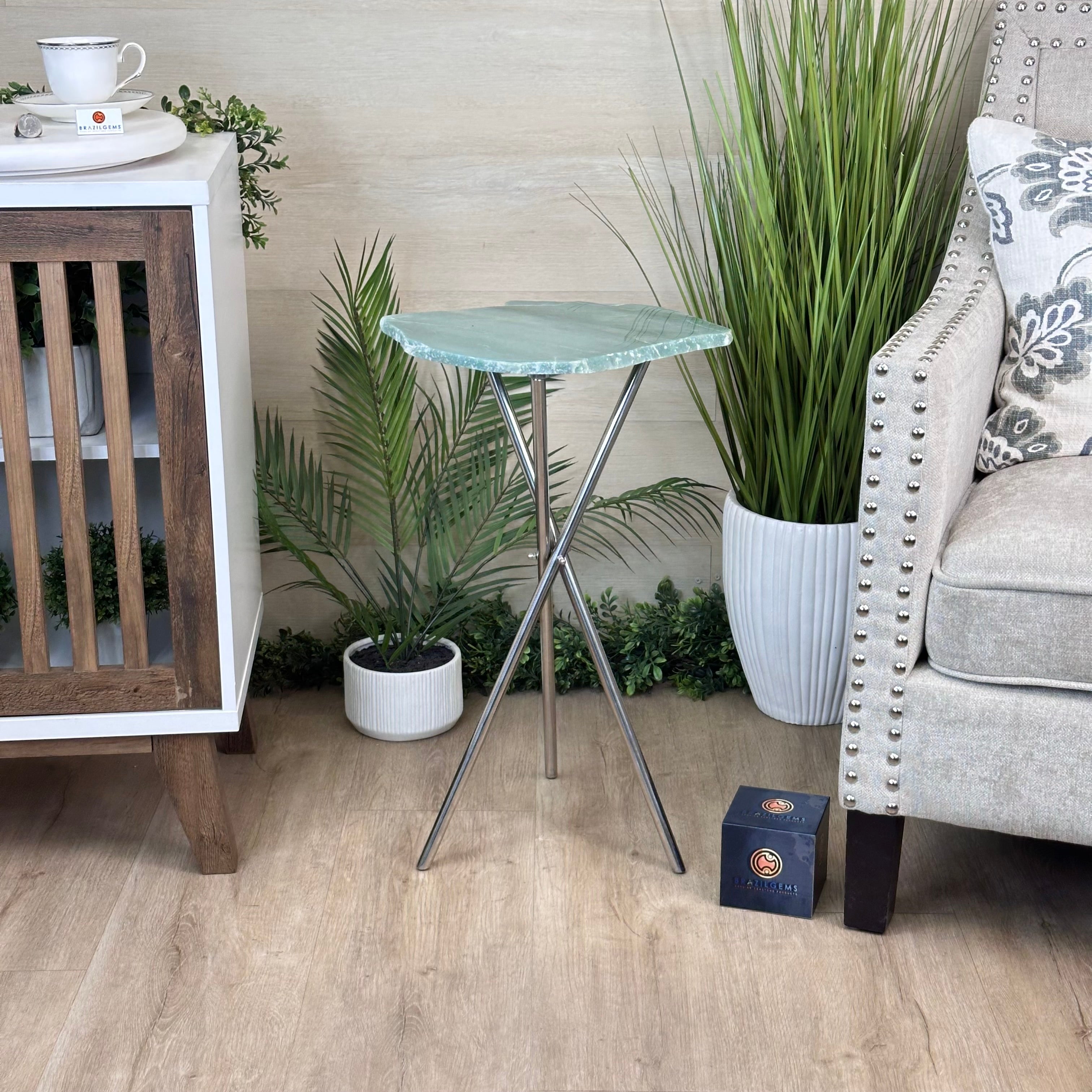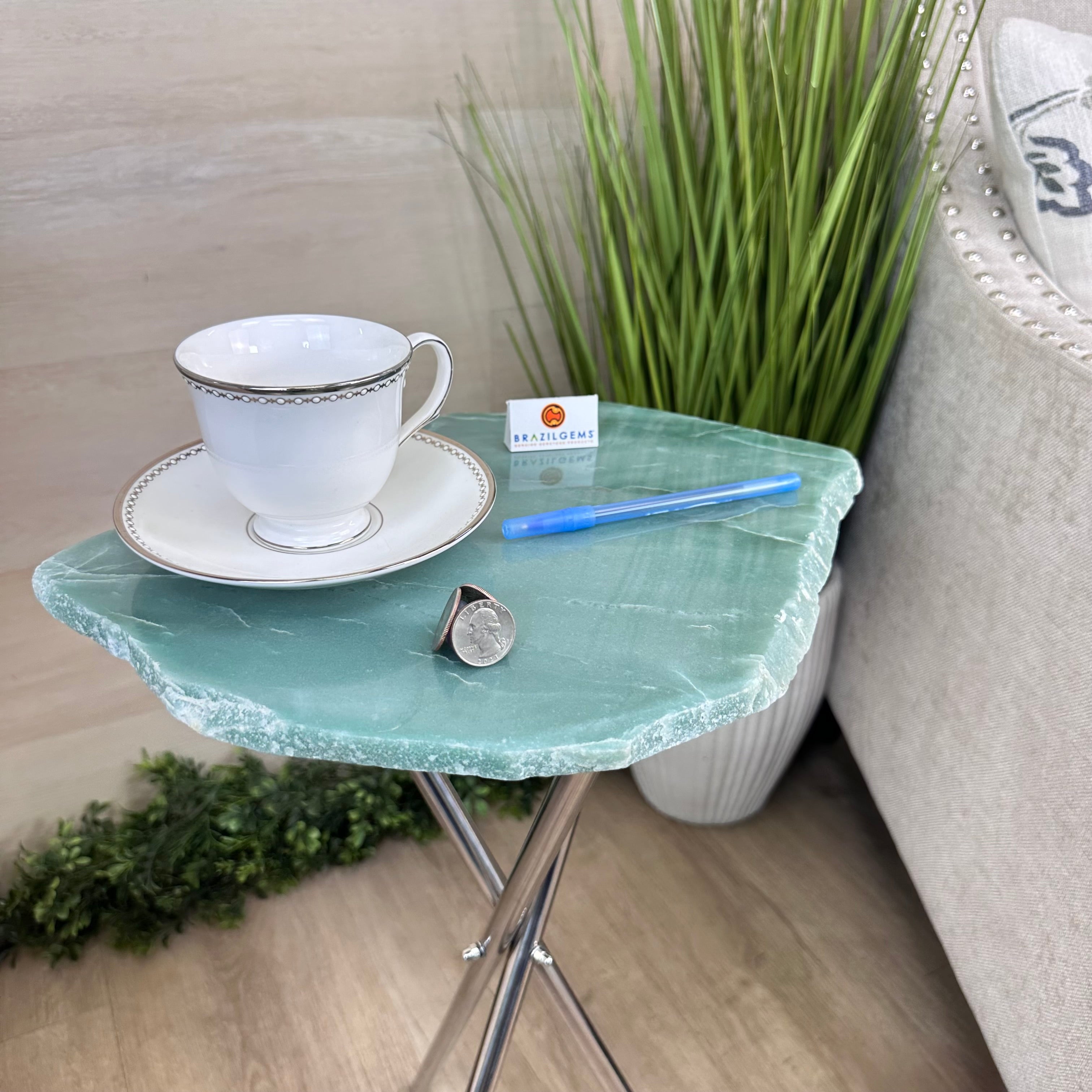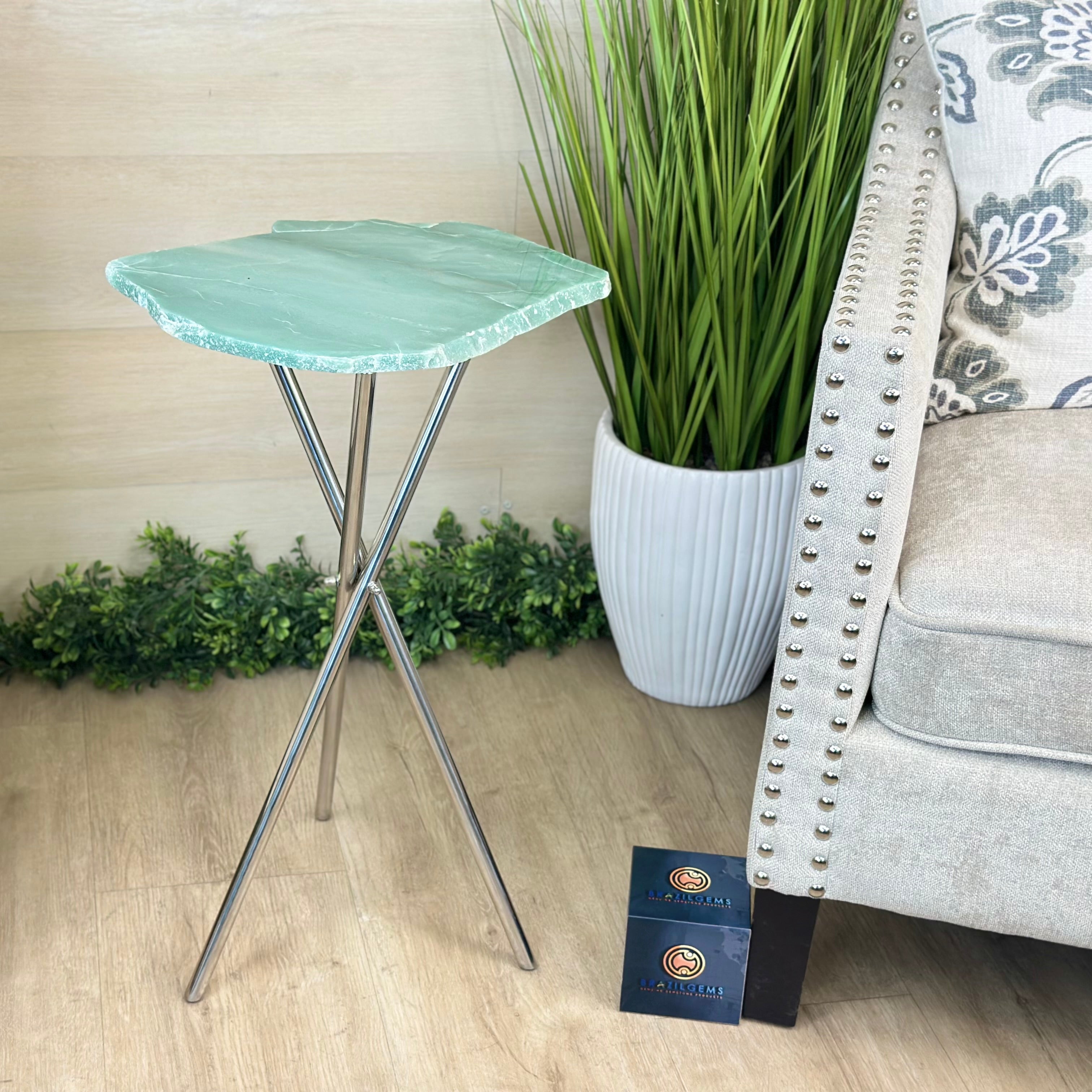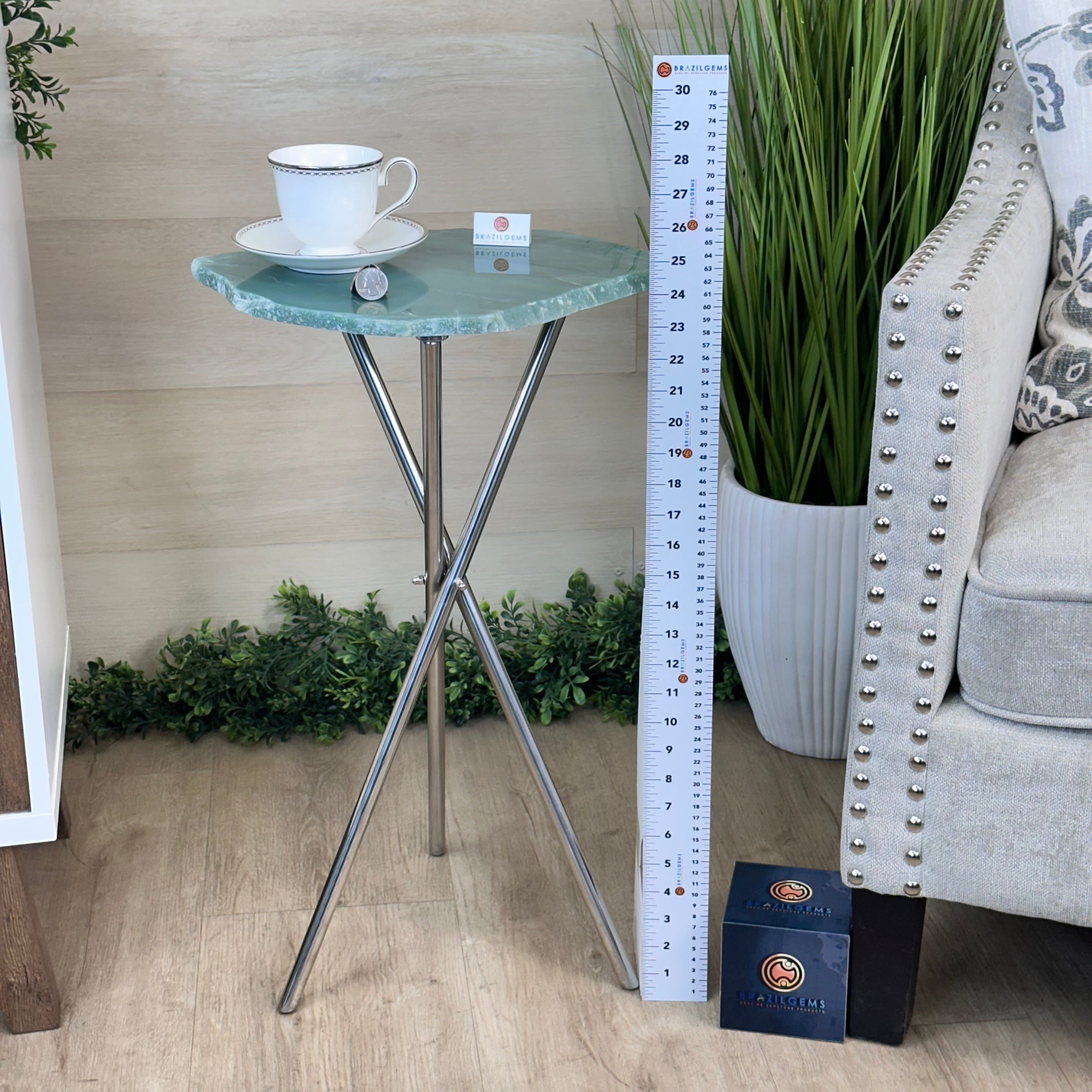 Natural Green Quartz Side Table on Chrome Metal Base, 24.6" Tall #1341GQ-001
