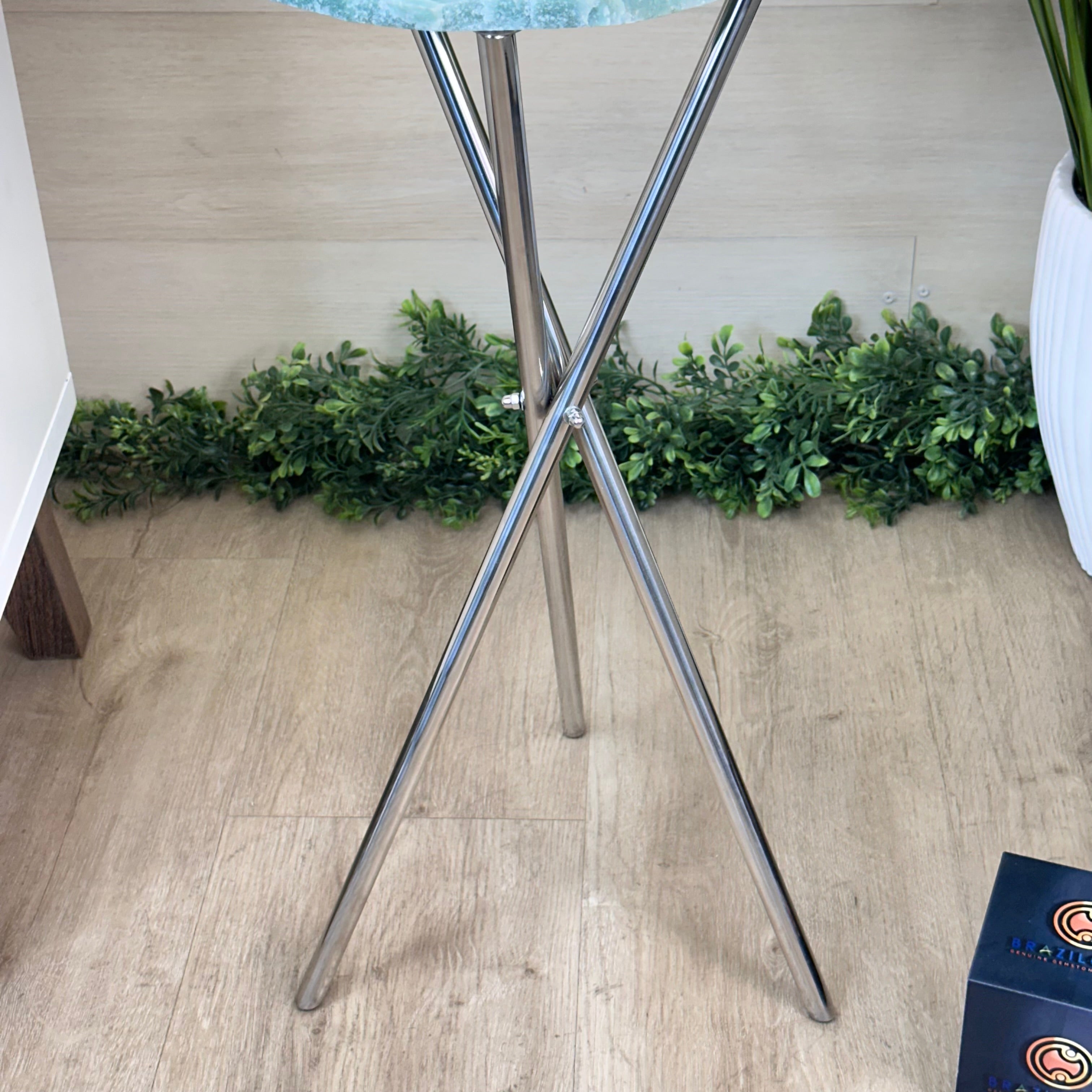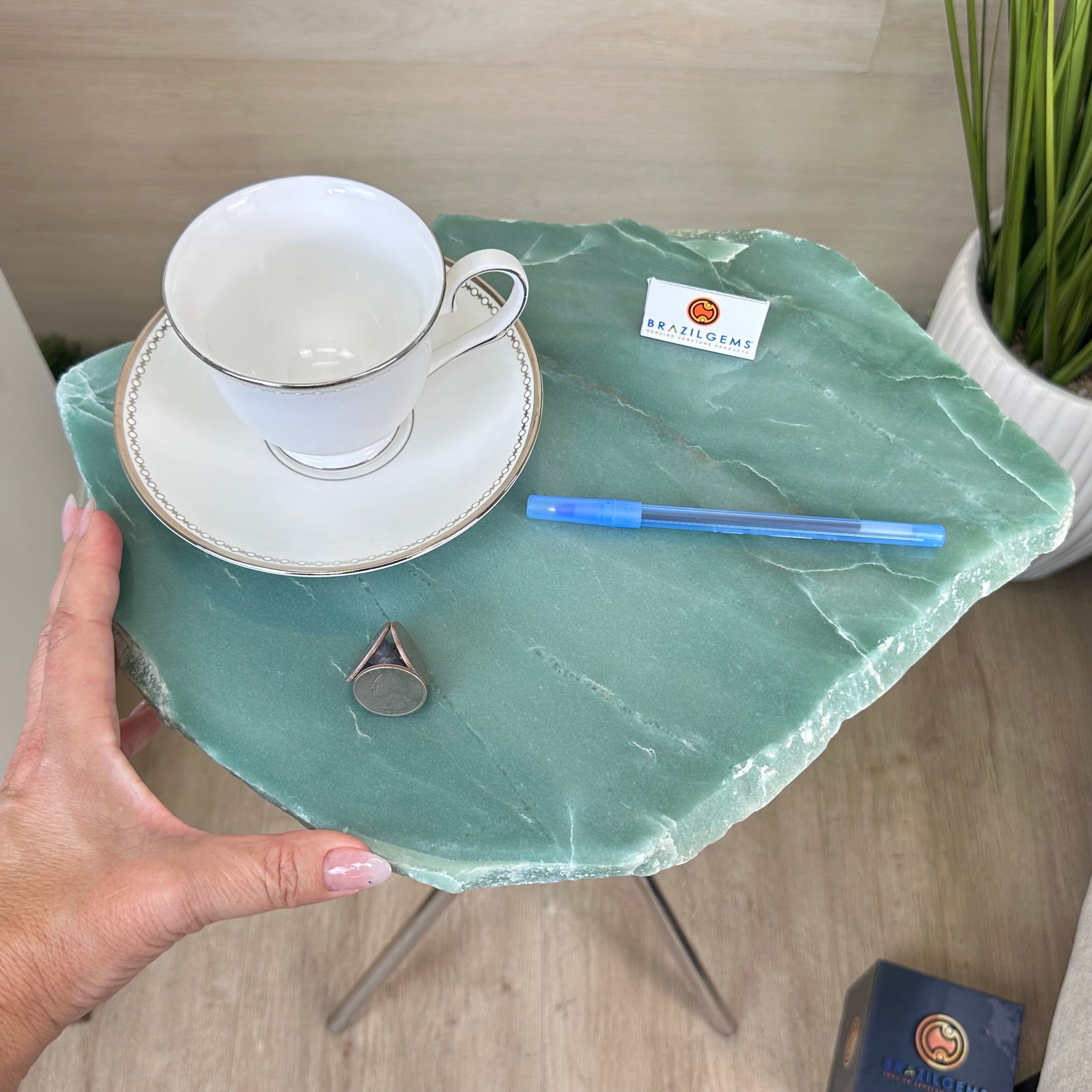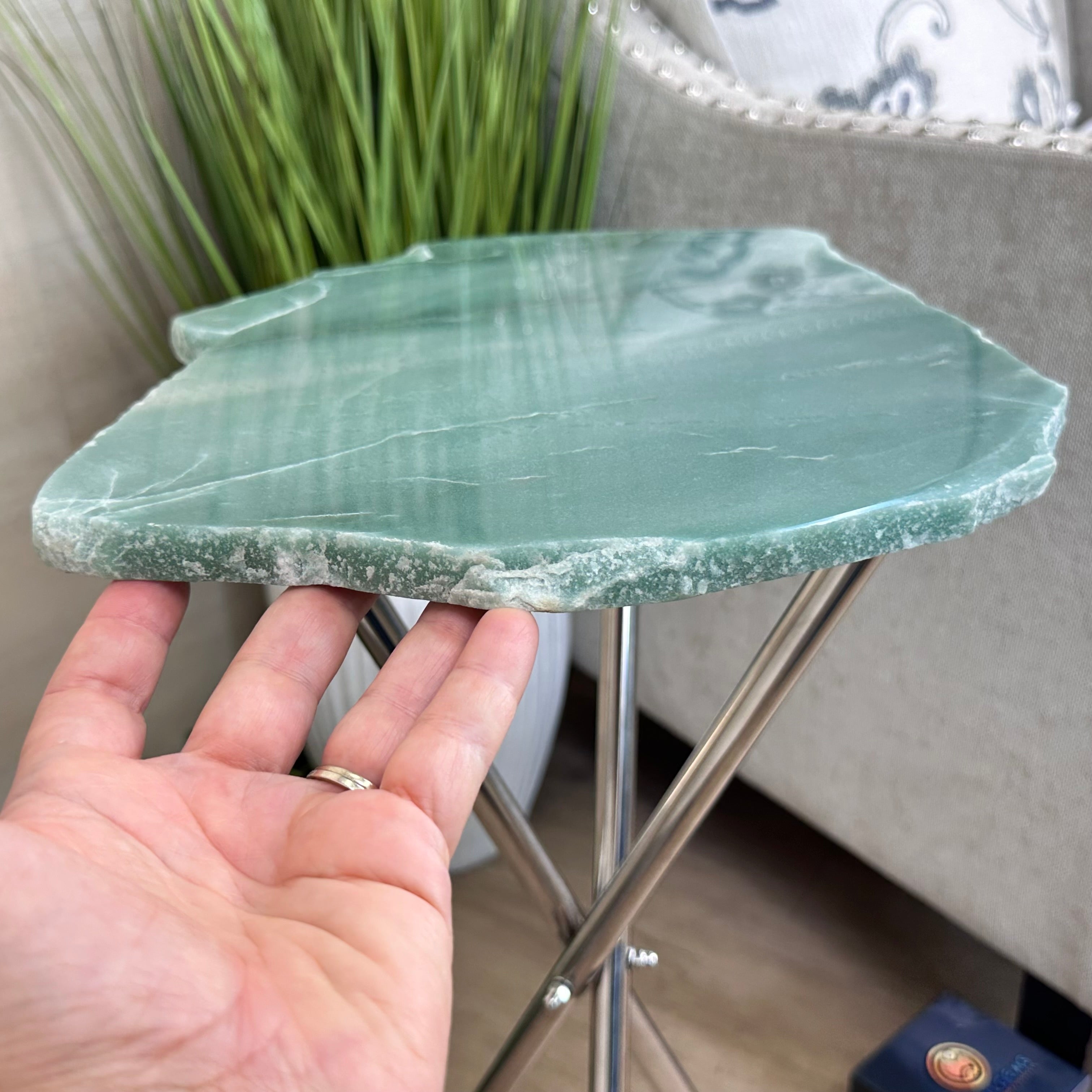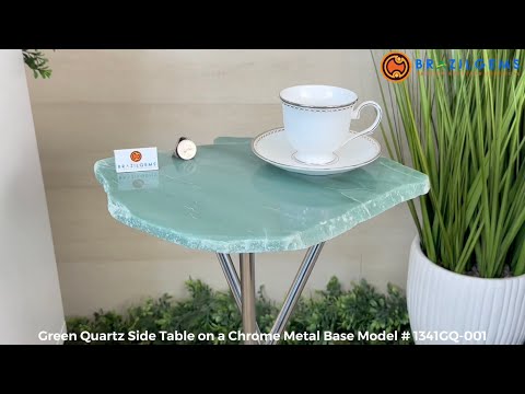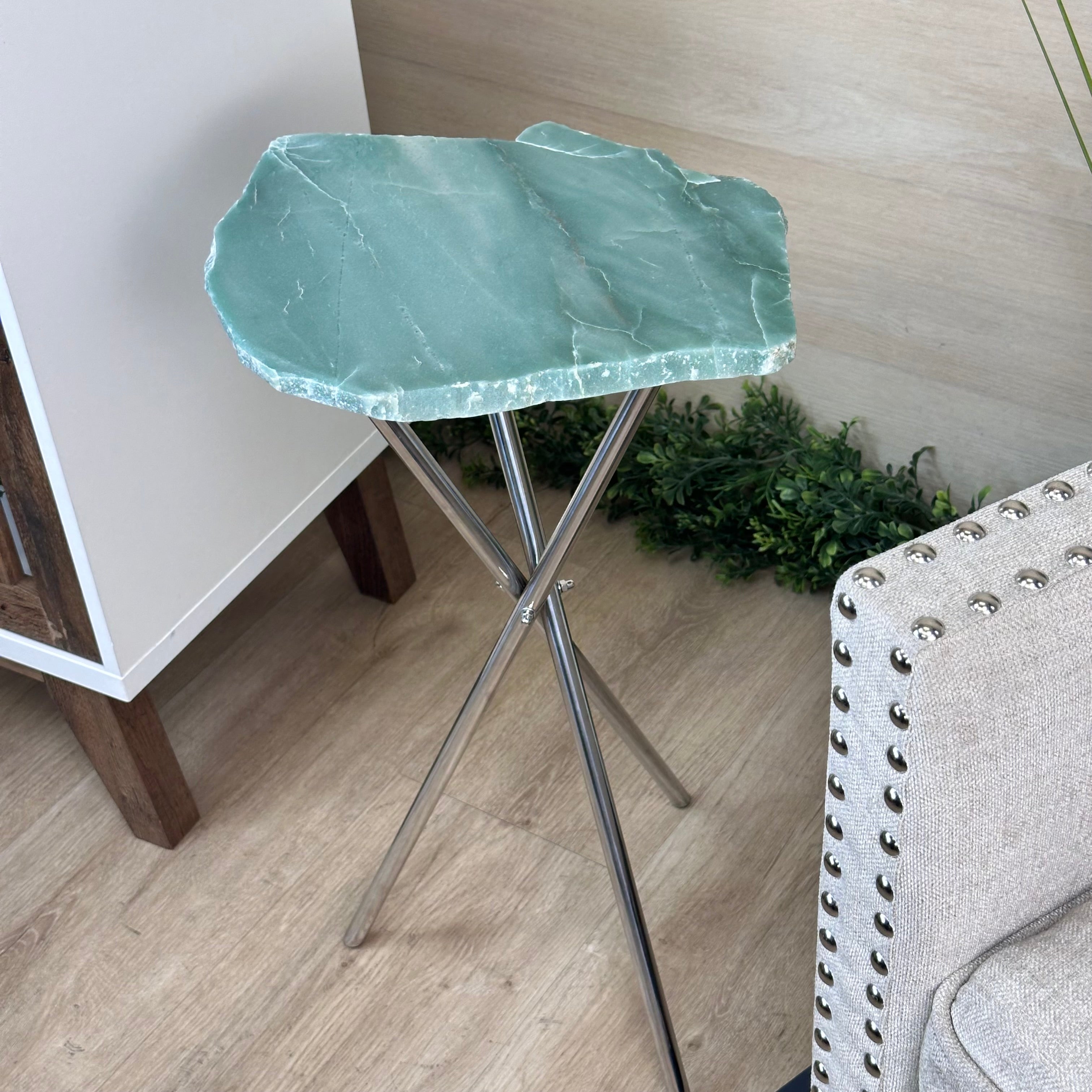Natural Green Quartz Side Table on Chrome Metal Base, 24.6" Tall #1341GQ-001