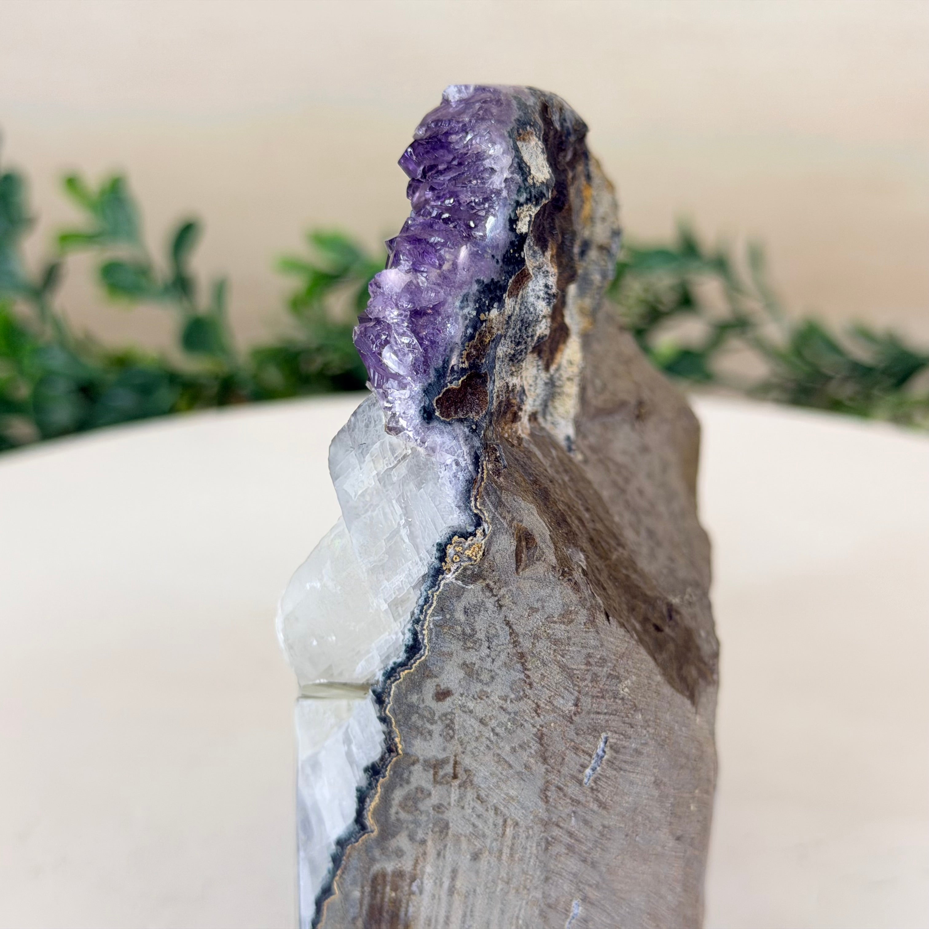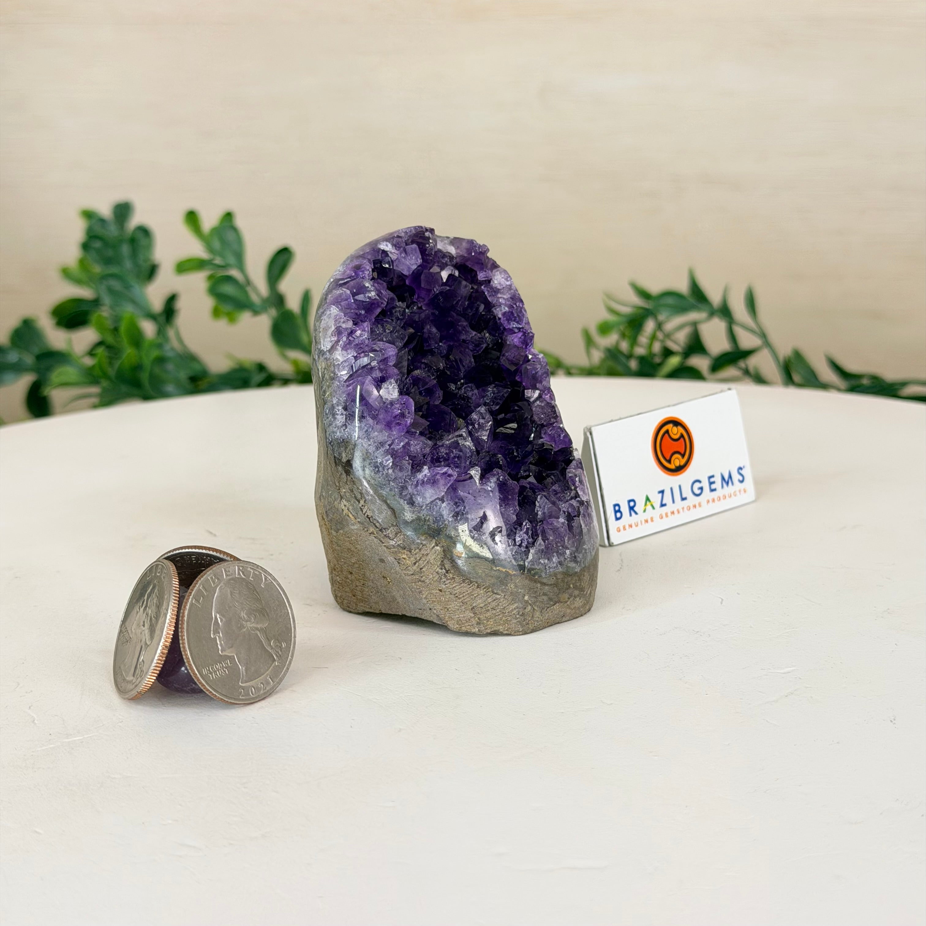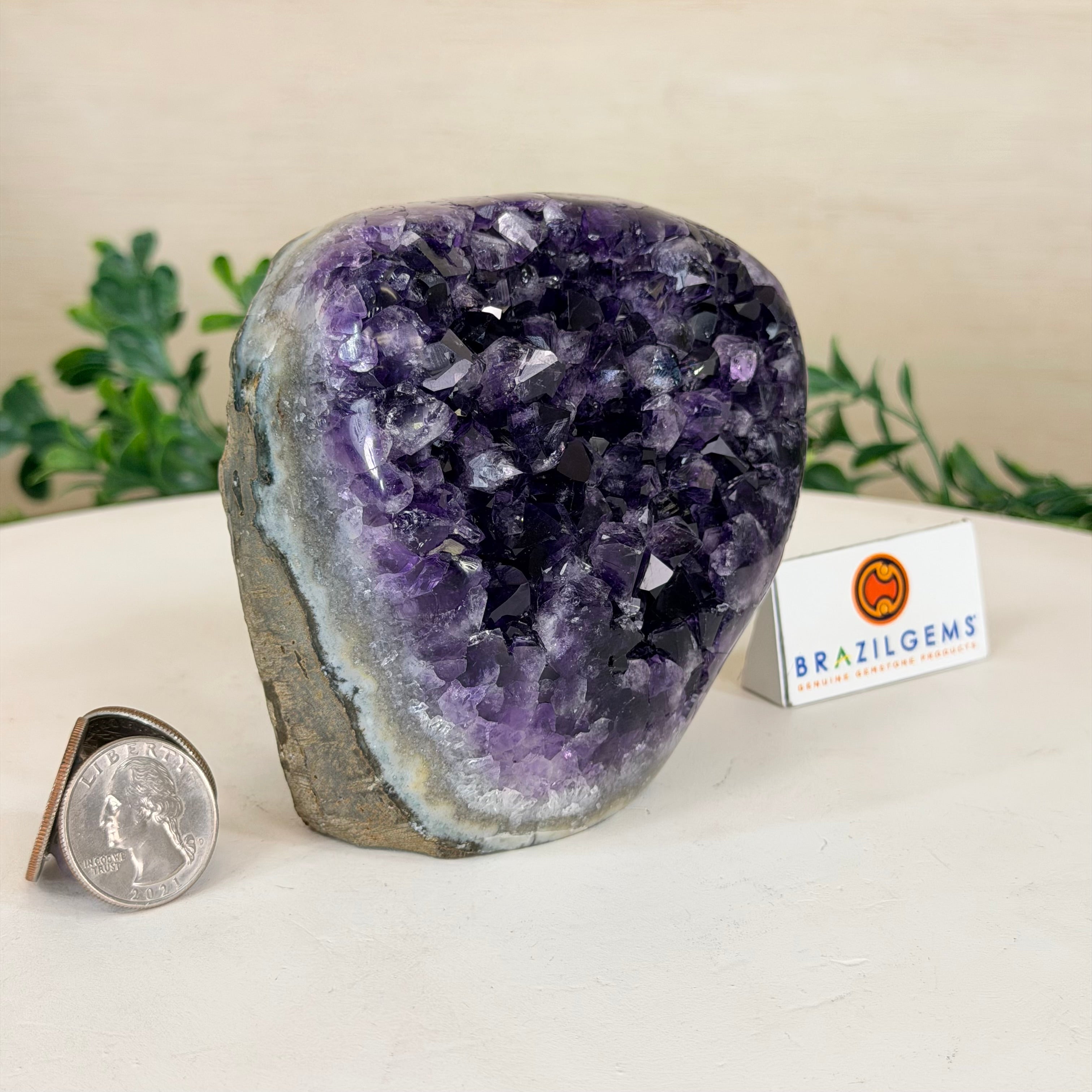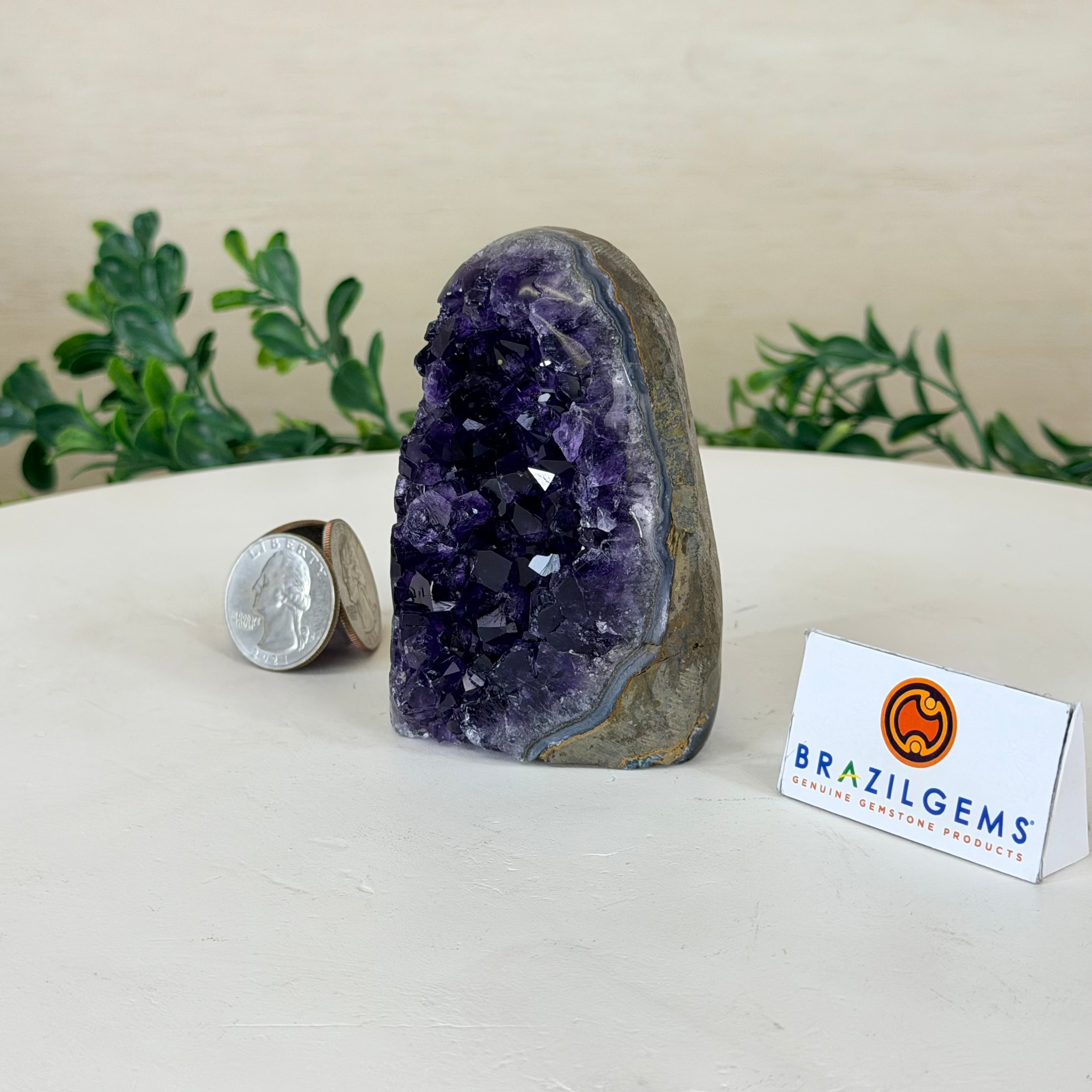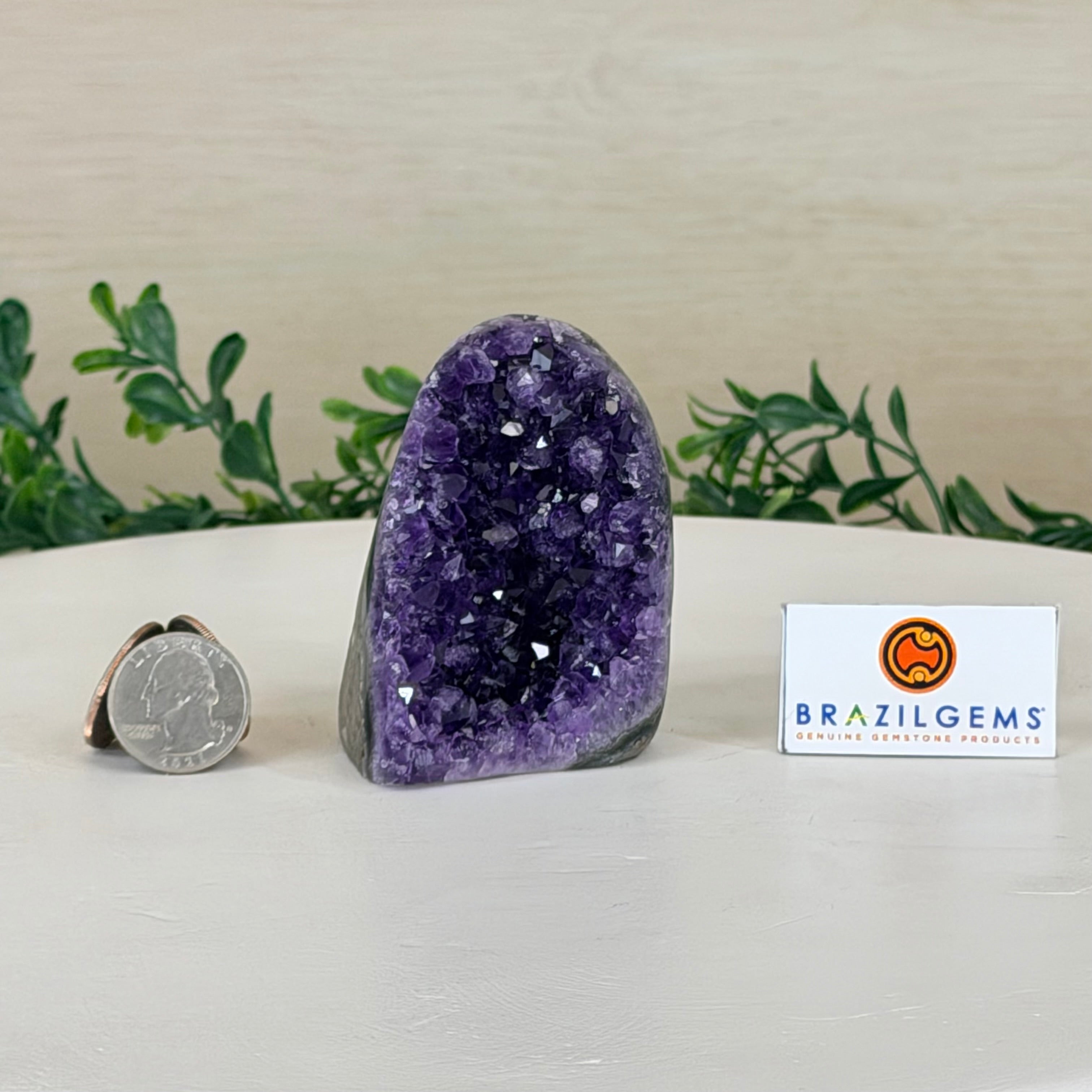 These clusters grow inside geodes–where mineral-rich water slowly deposits crystals over time. The result is a captivating arrangement of pointed amethyst crystals that can beautify any space.
