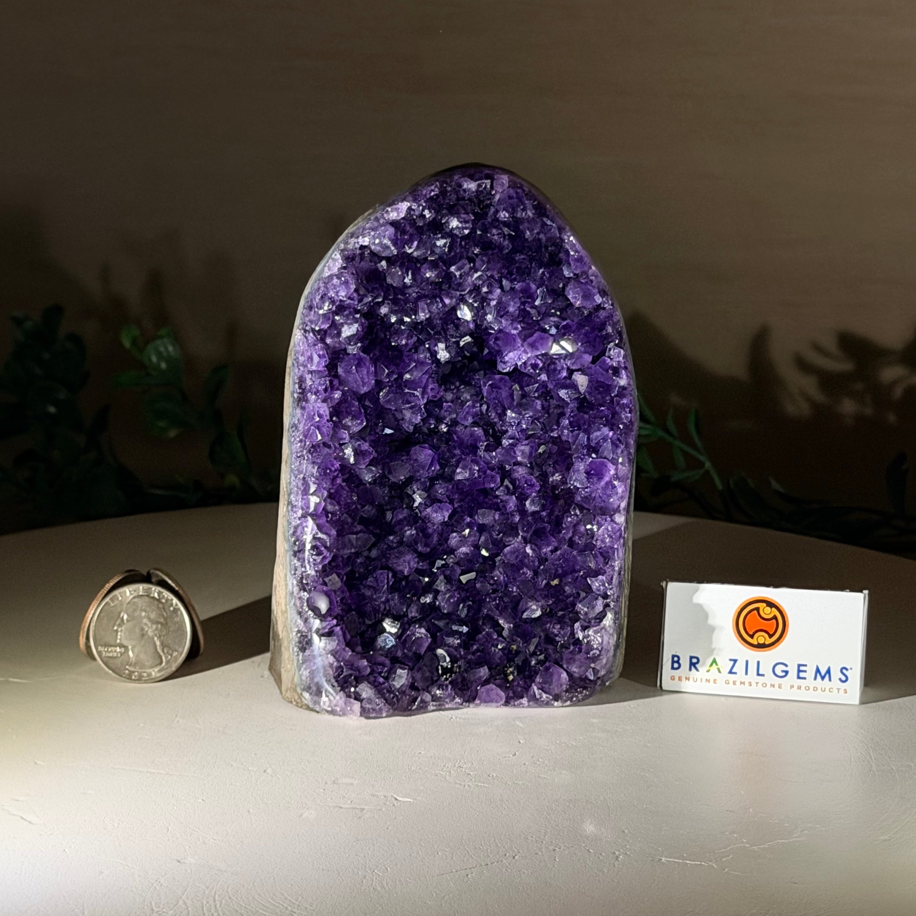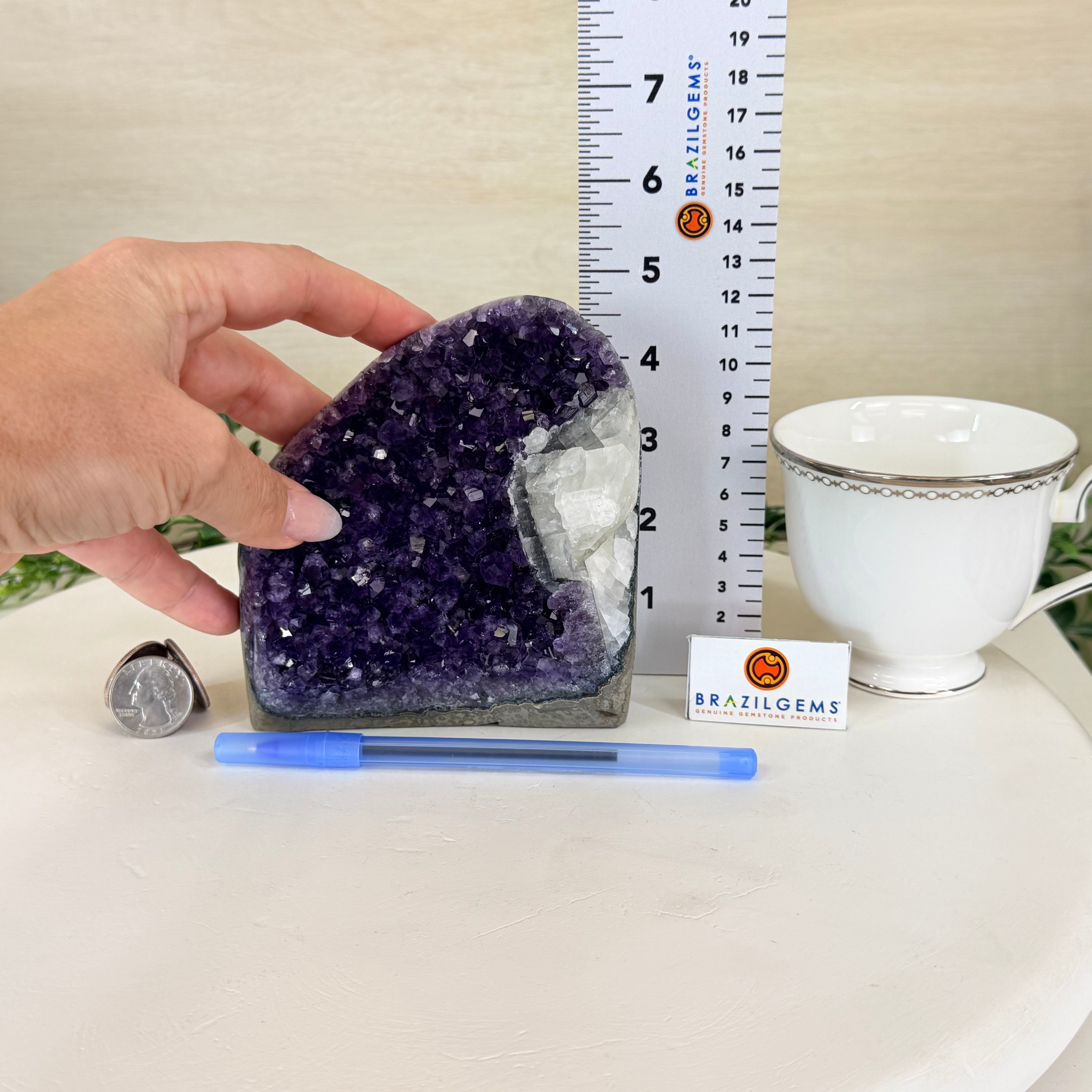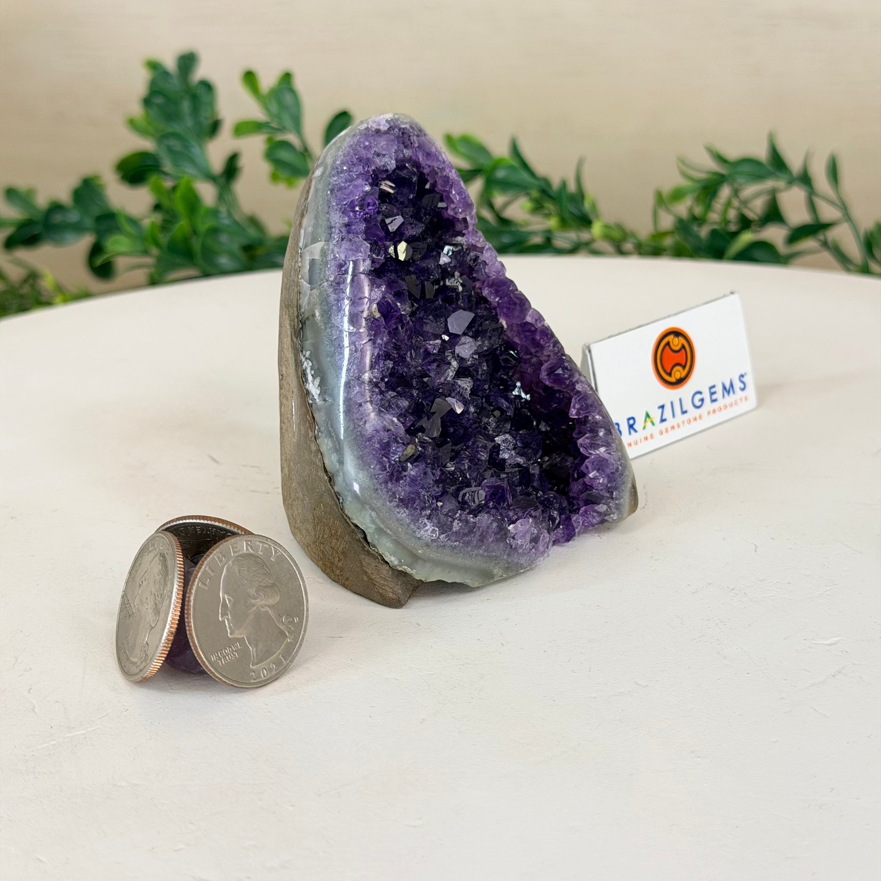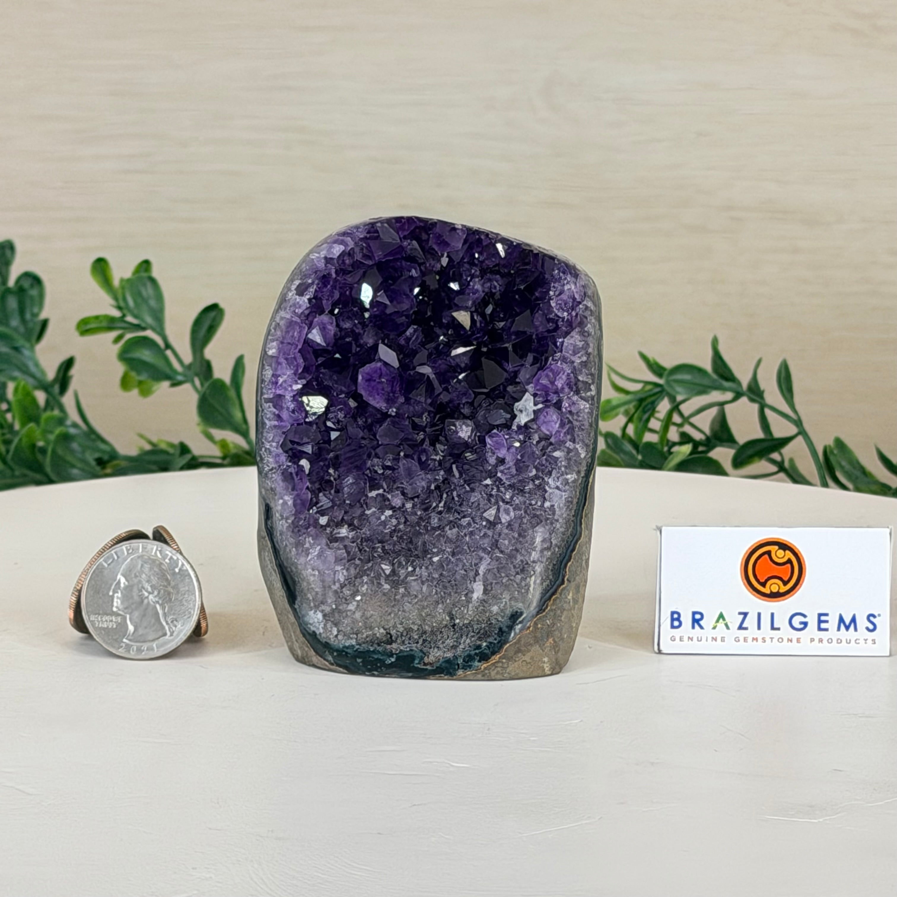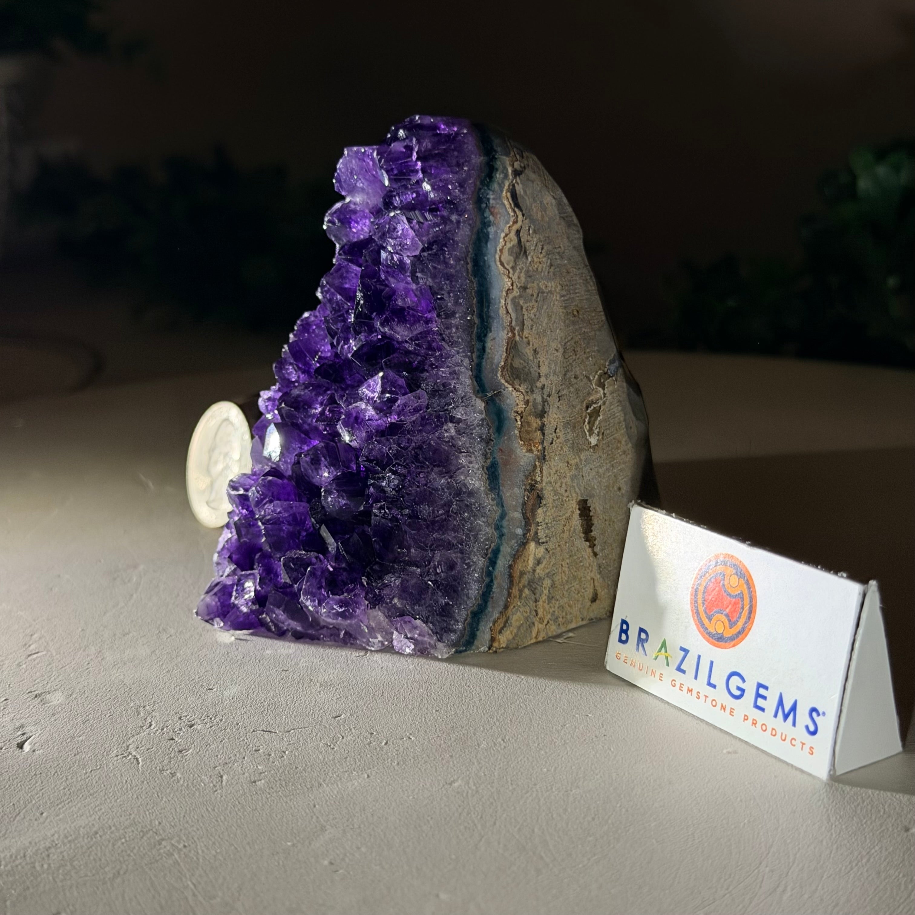 These clusters grow inside geodes–where mineral-rich water slowly deposits crystals over time. The result is a captivating arrangement of pointed amethyst crystals that can beautify any space.