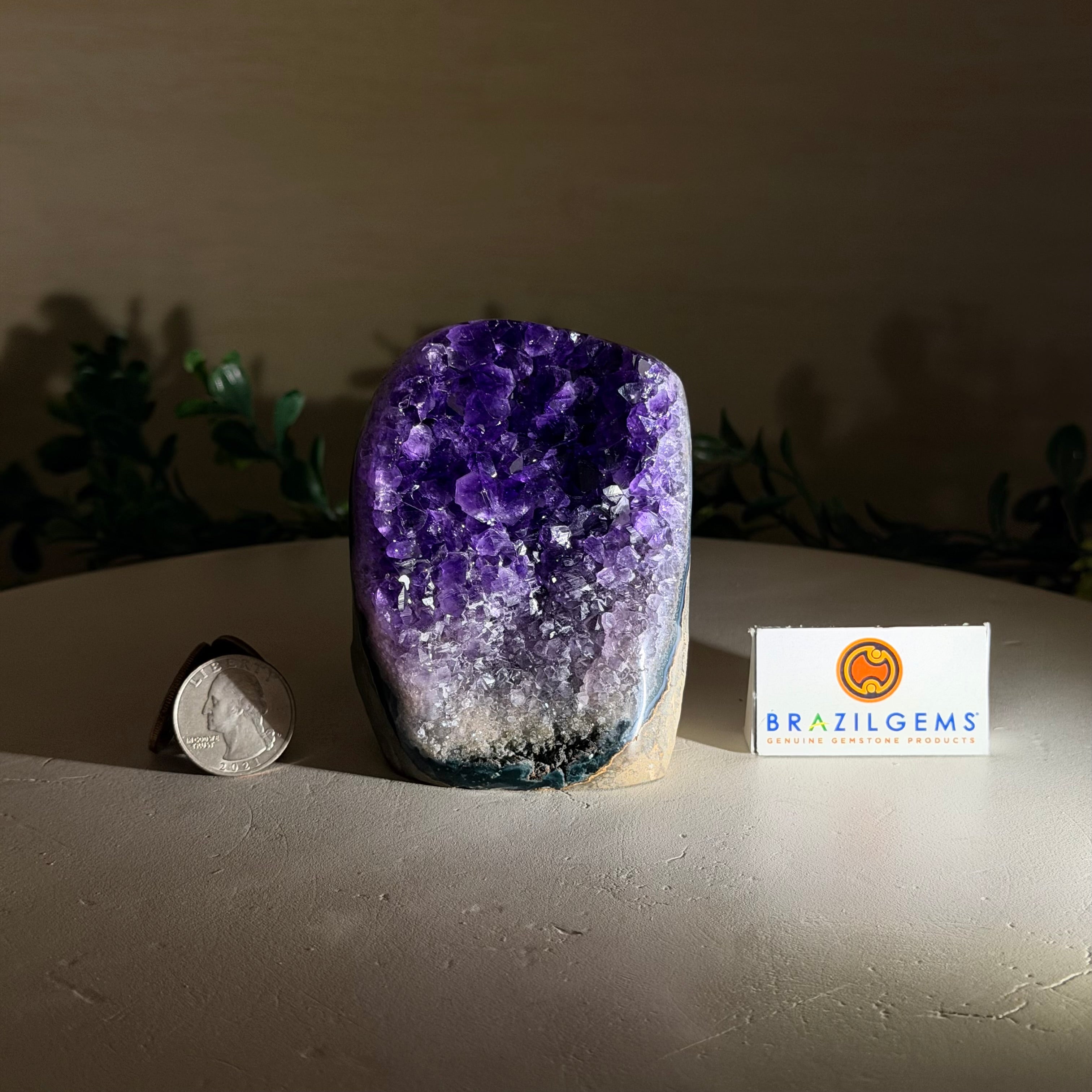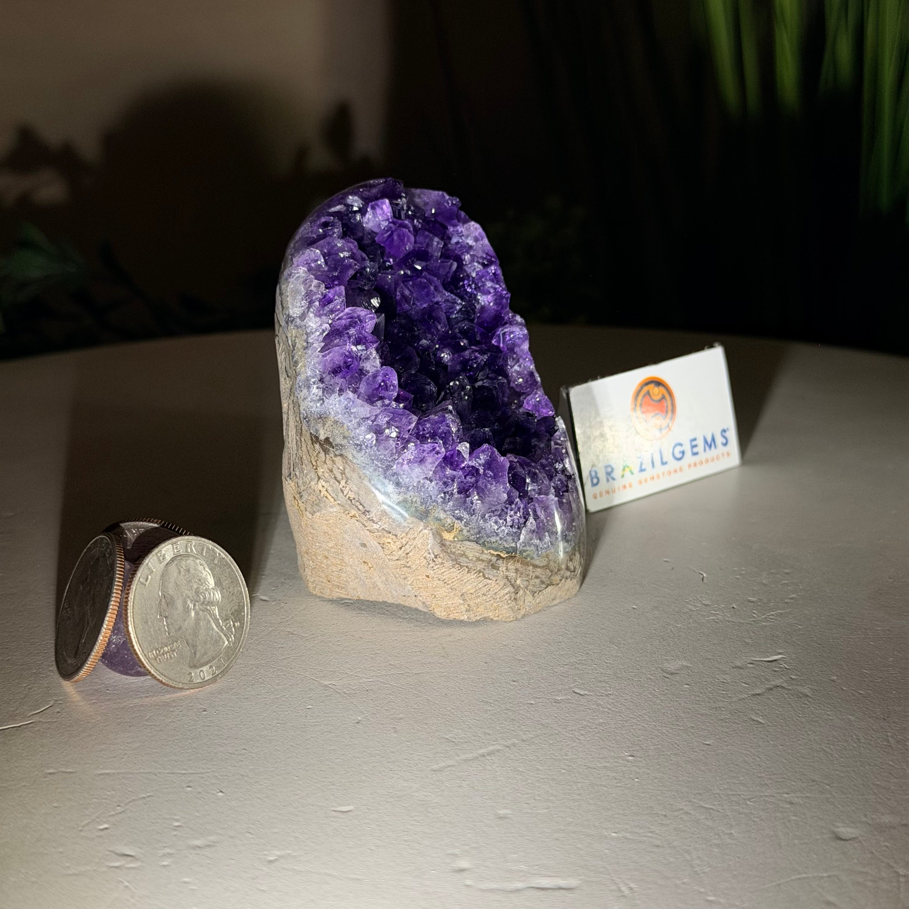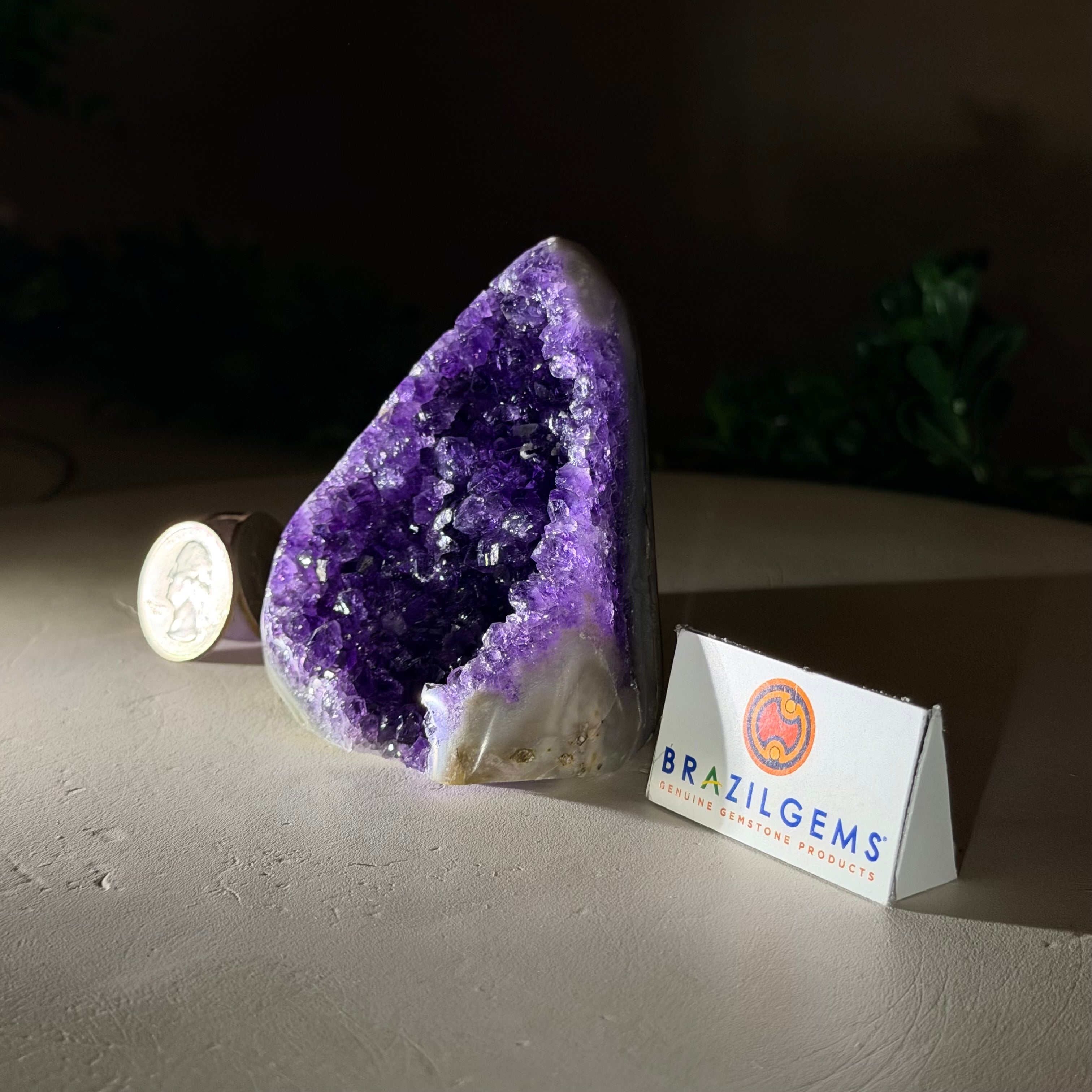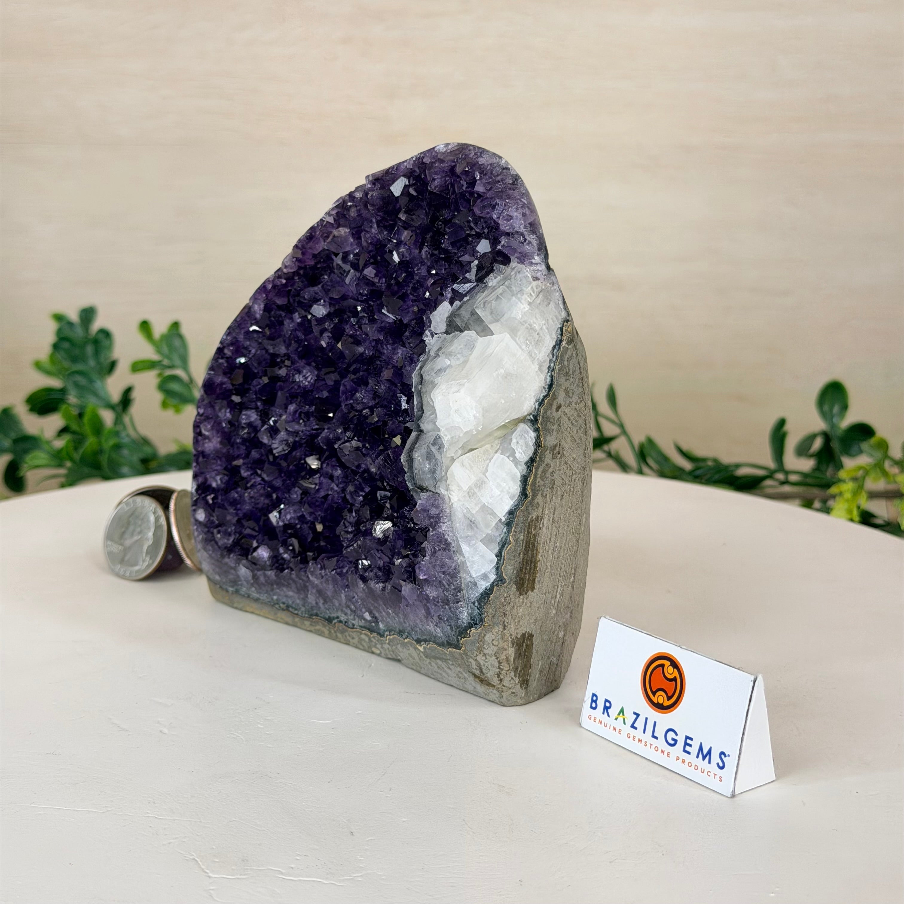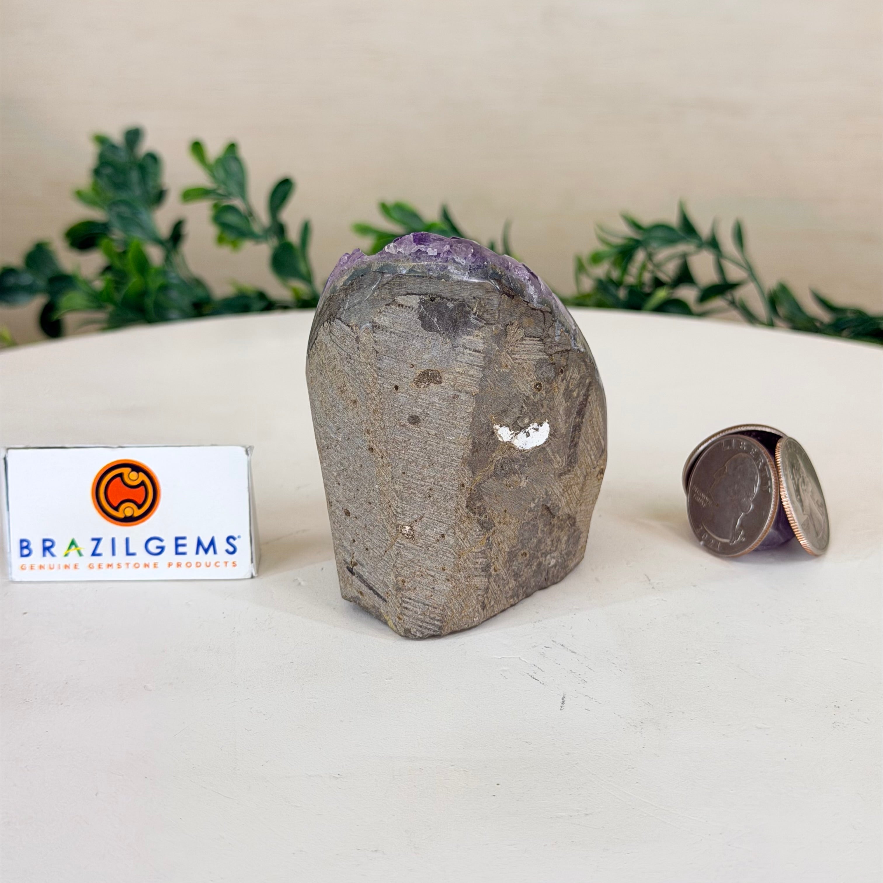 These clusters grow inside geodes–where mineral-rich water slowly deposits crystals over time. The result is a captivating arrangement of pointed amethyst crystals that can beautify any space.