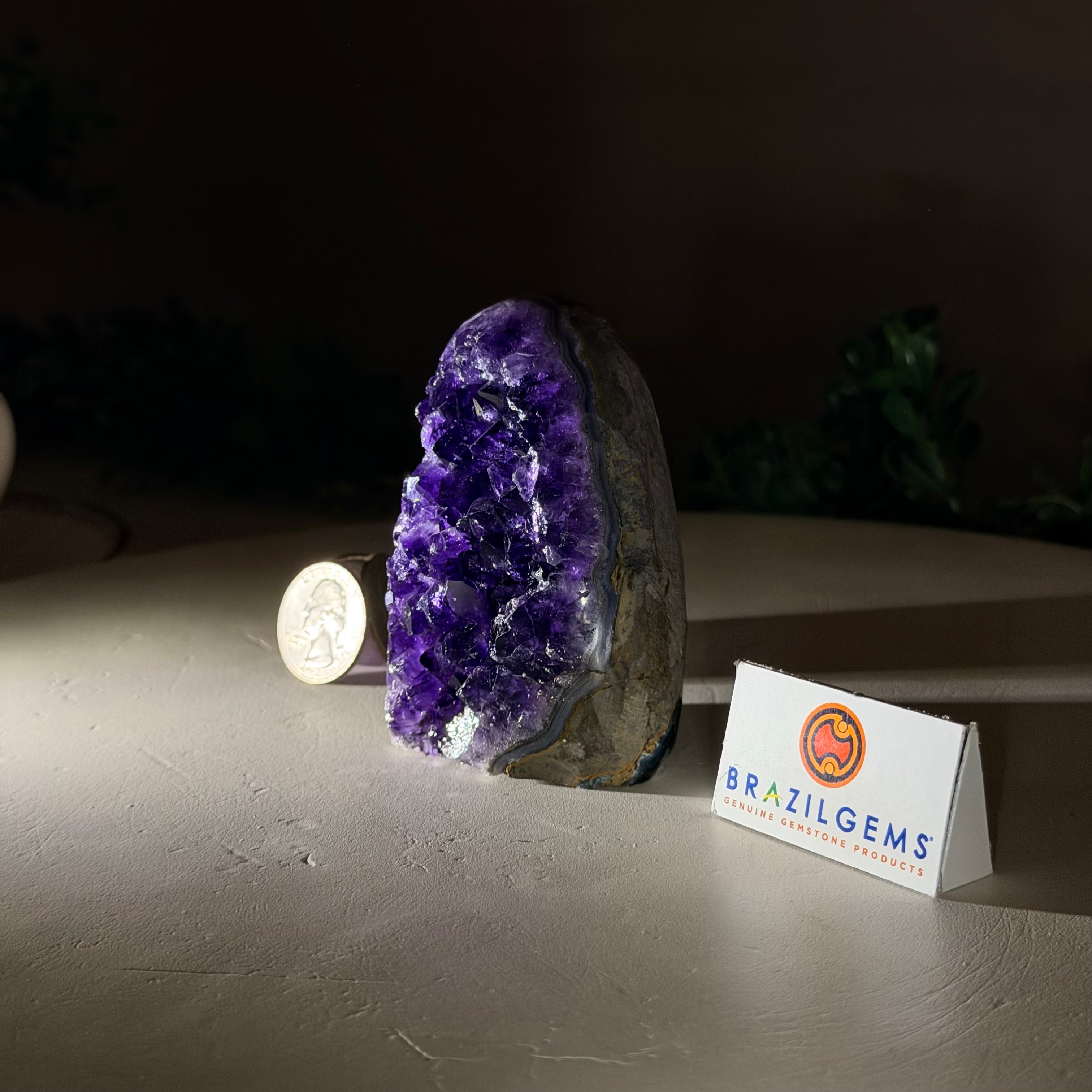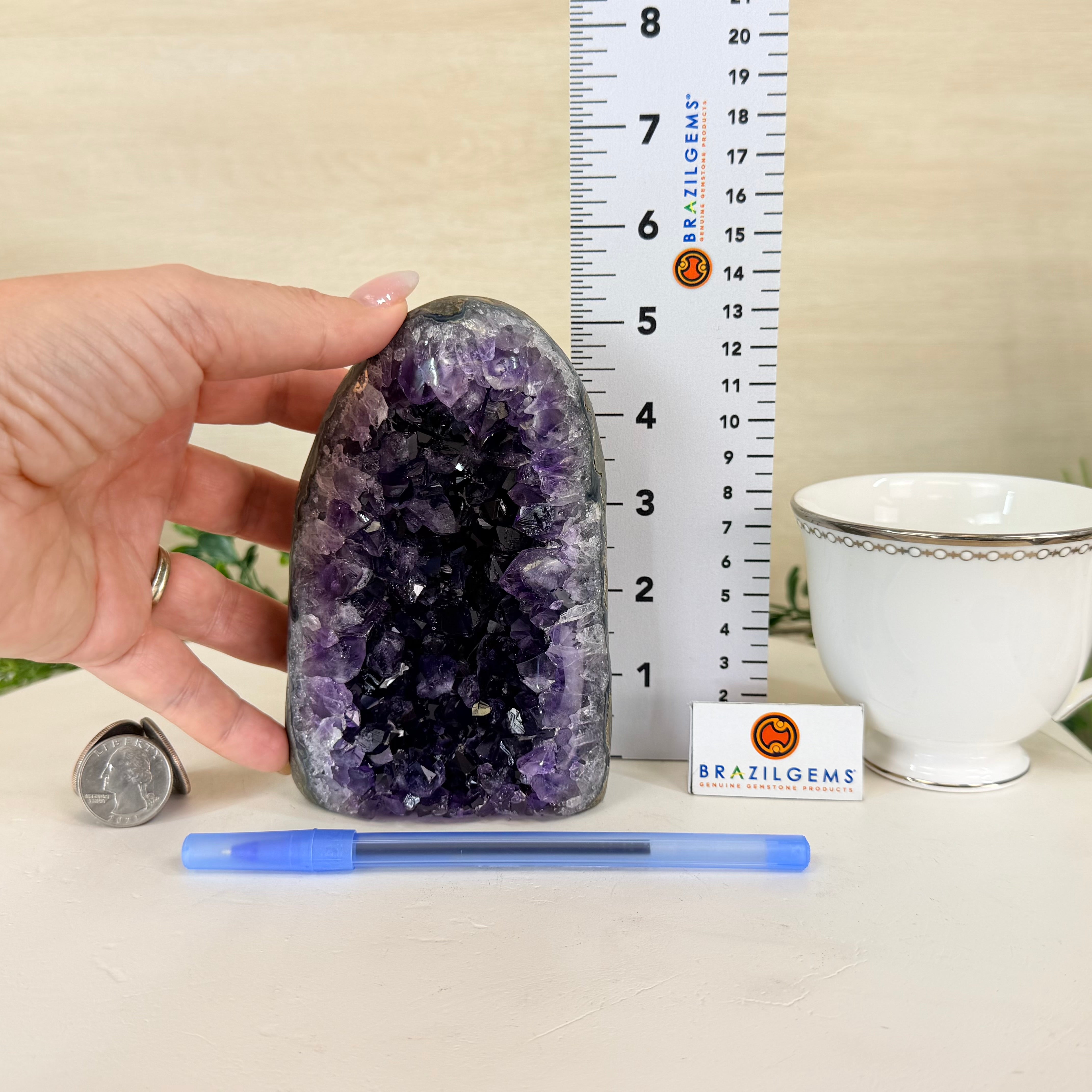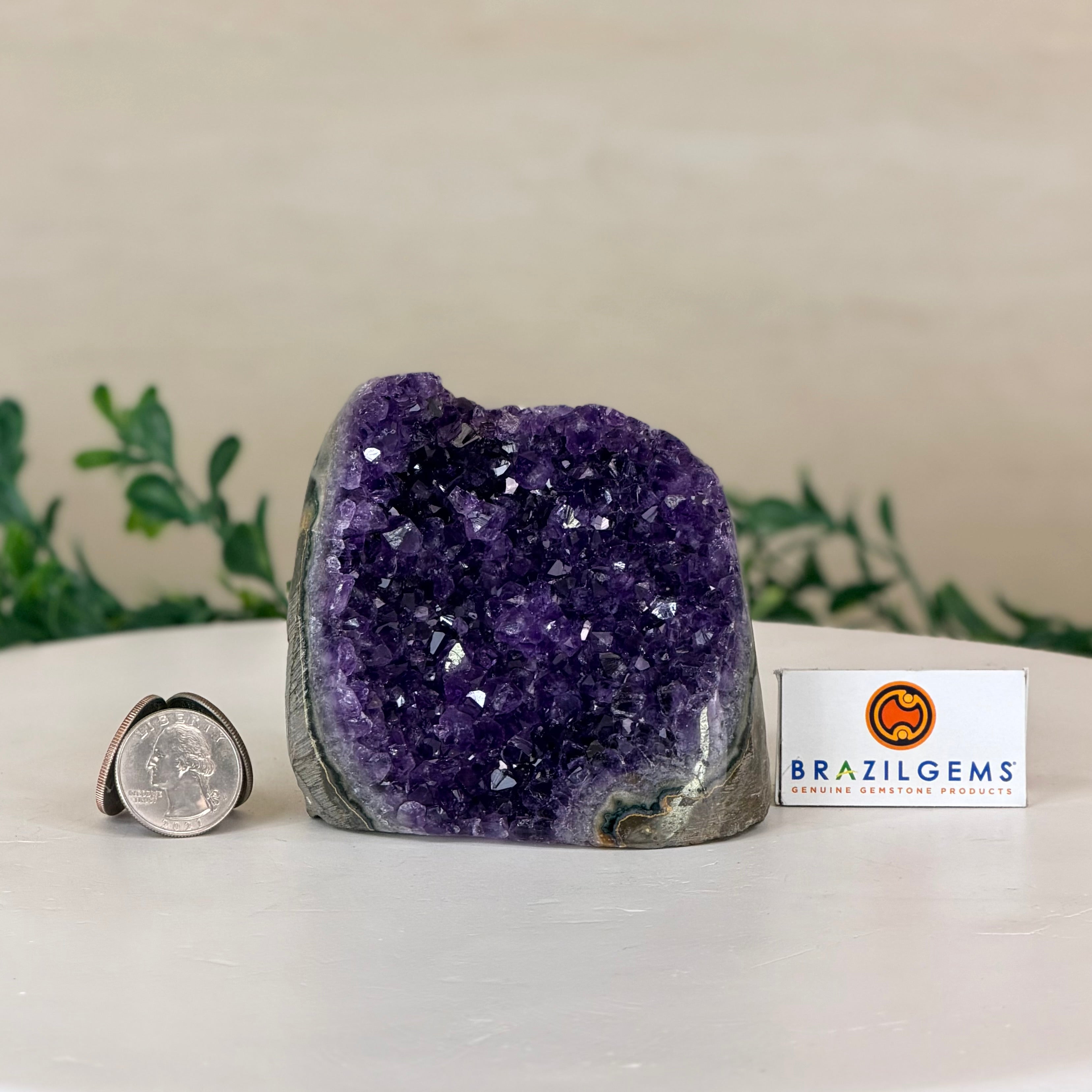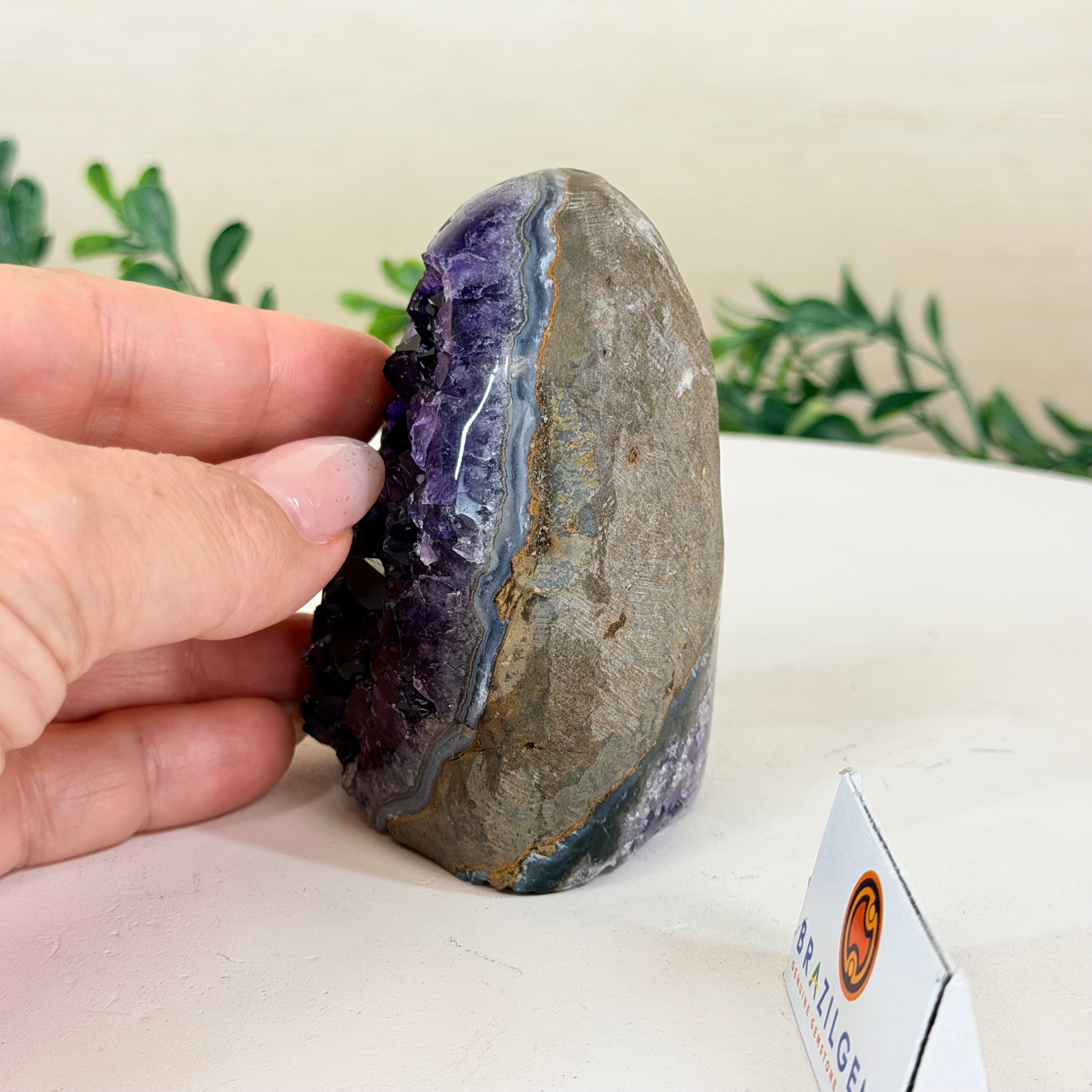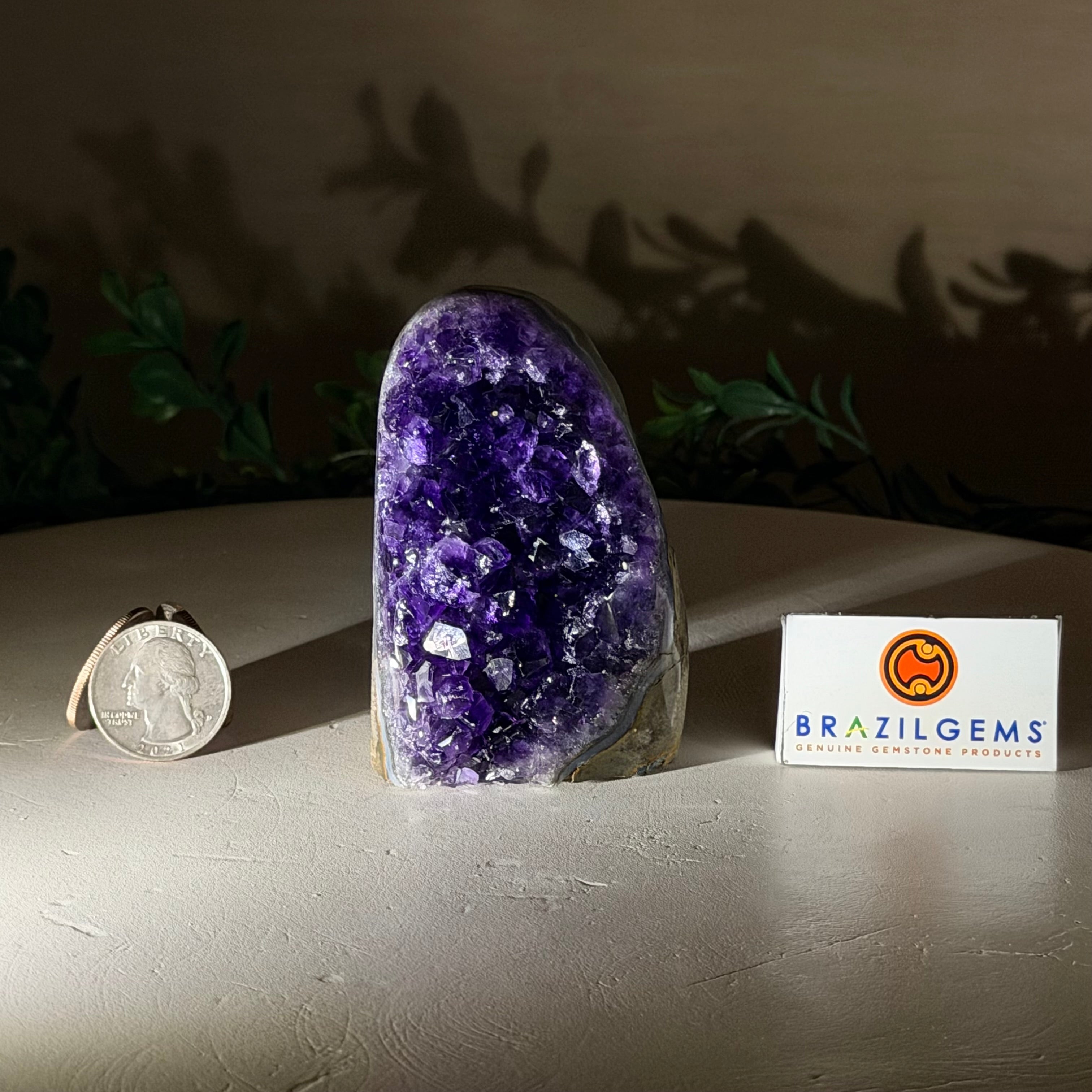 These clusters grow inside geodes–where mineral-rich water slowly deposits crystals over time. The result is a captivating arrangement of pointed amethyst crystals that can beautify any space.