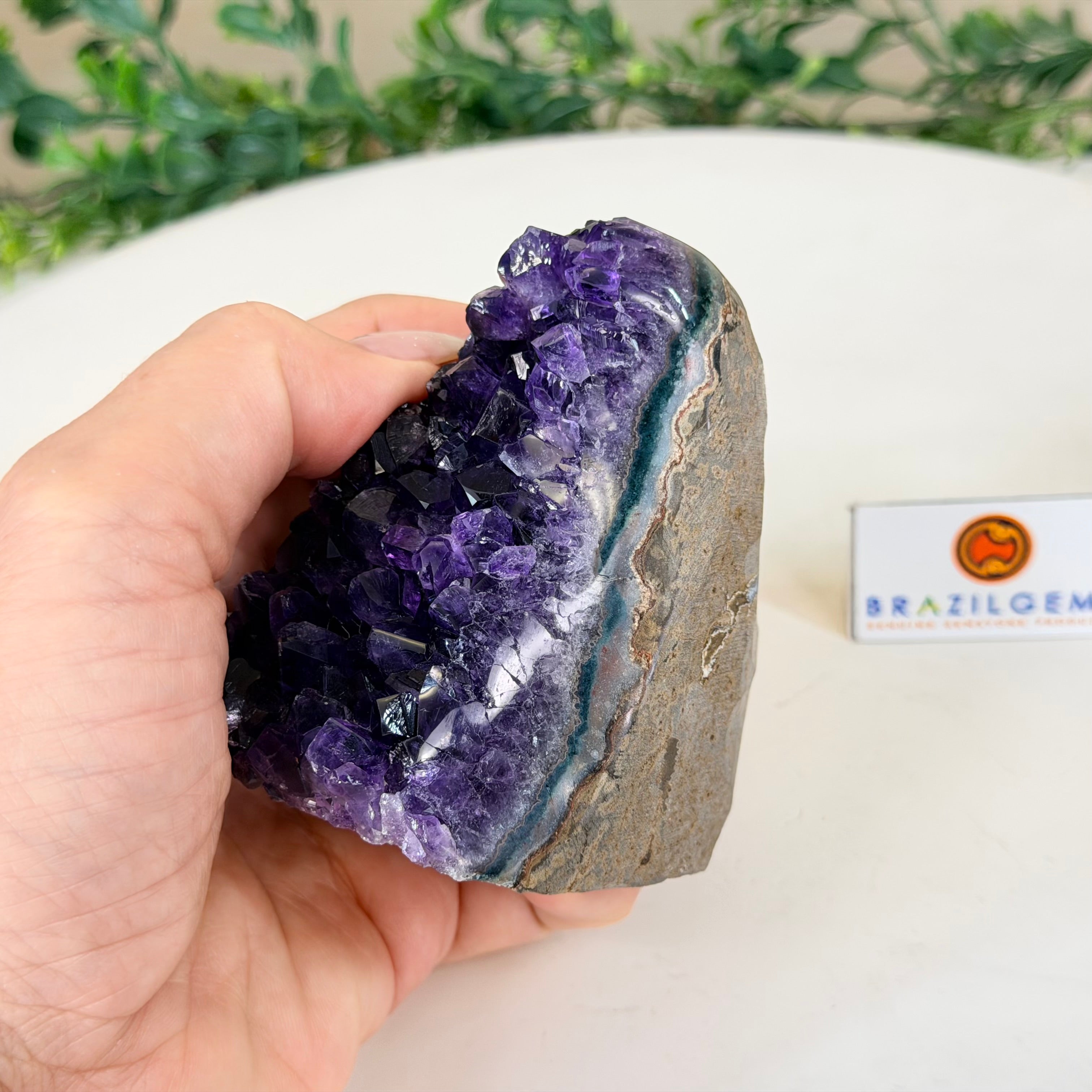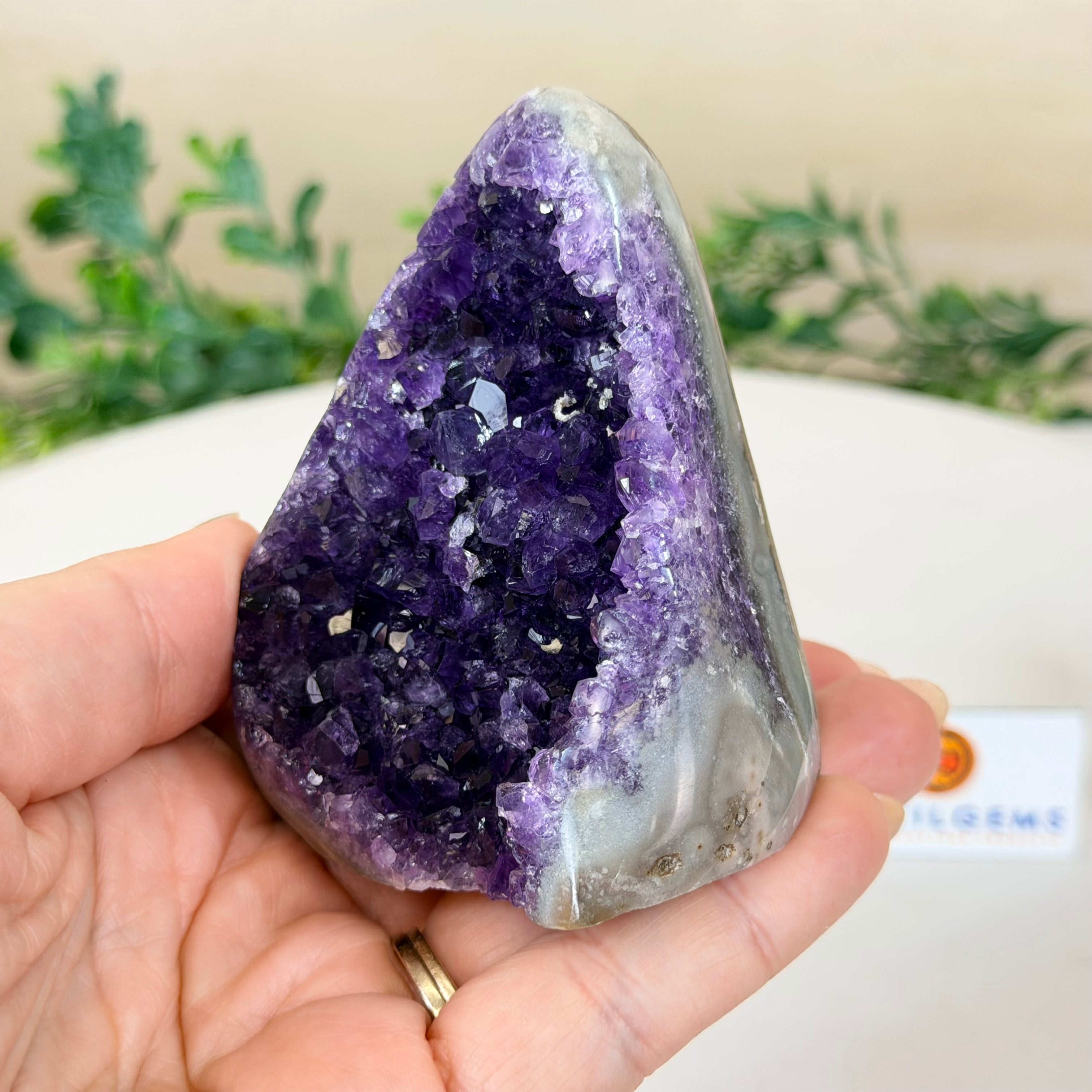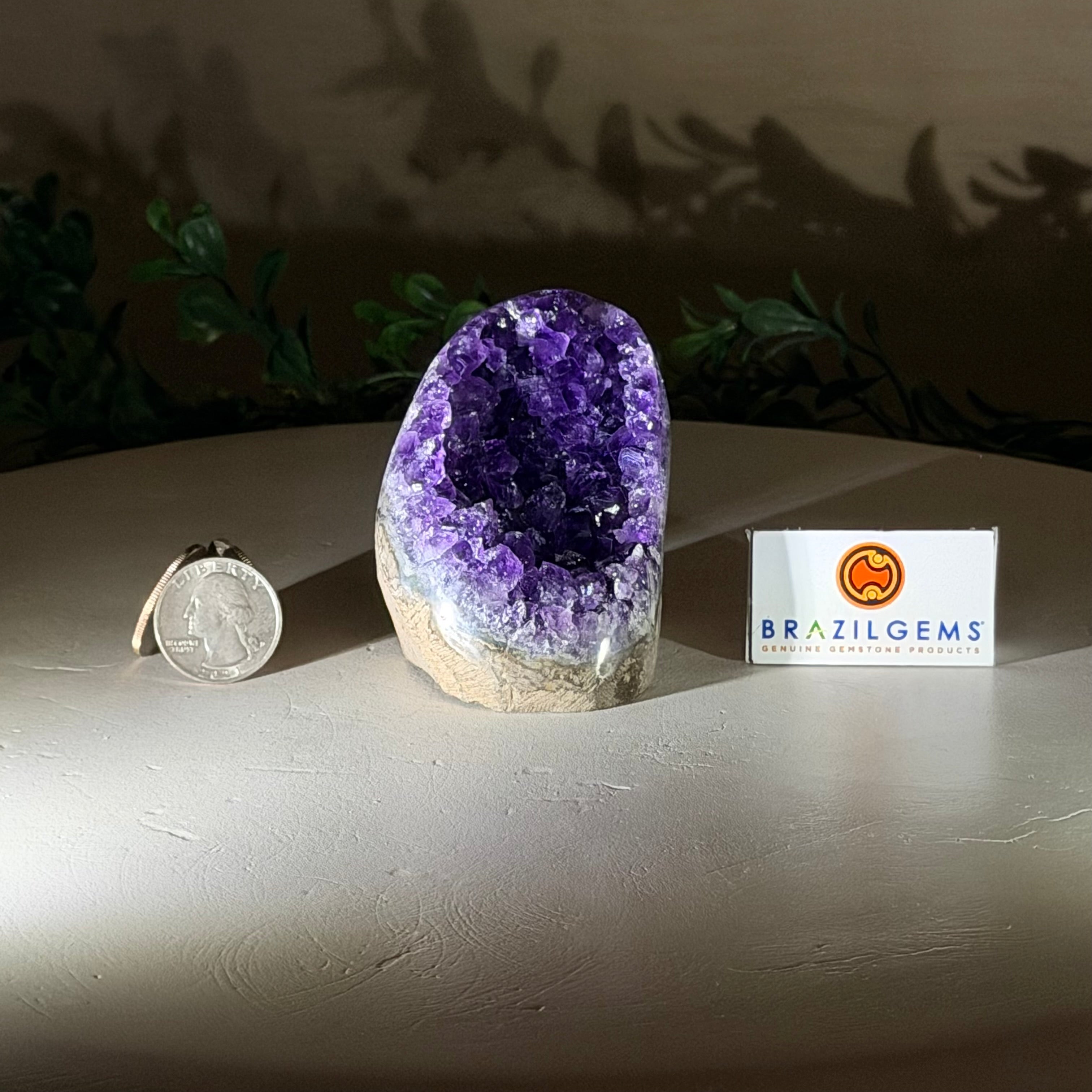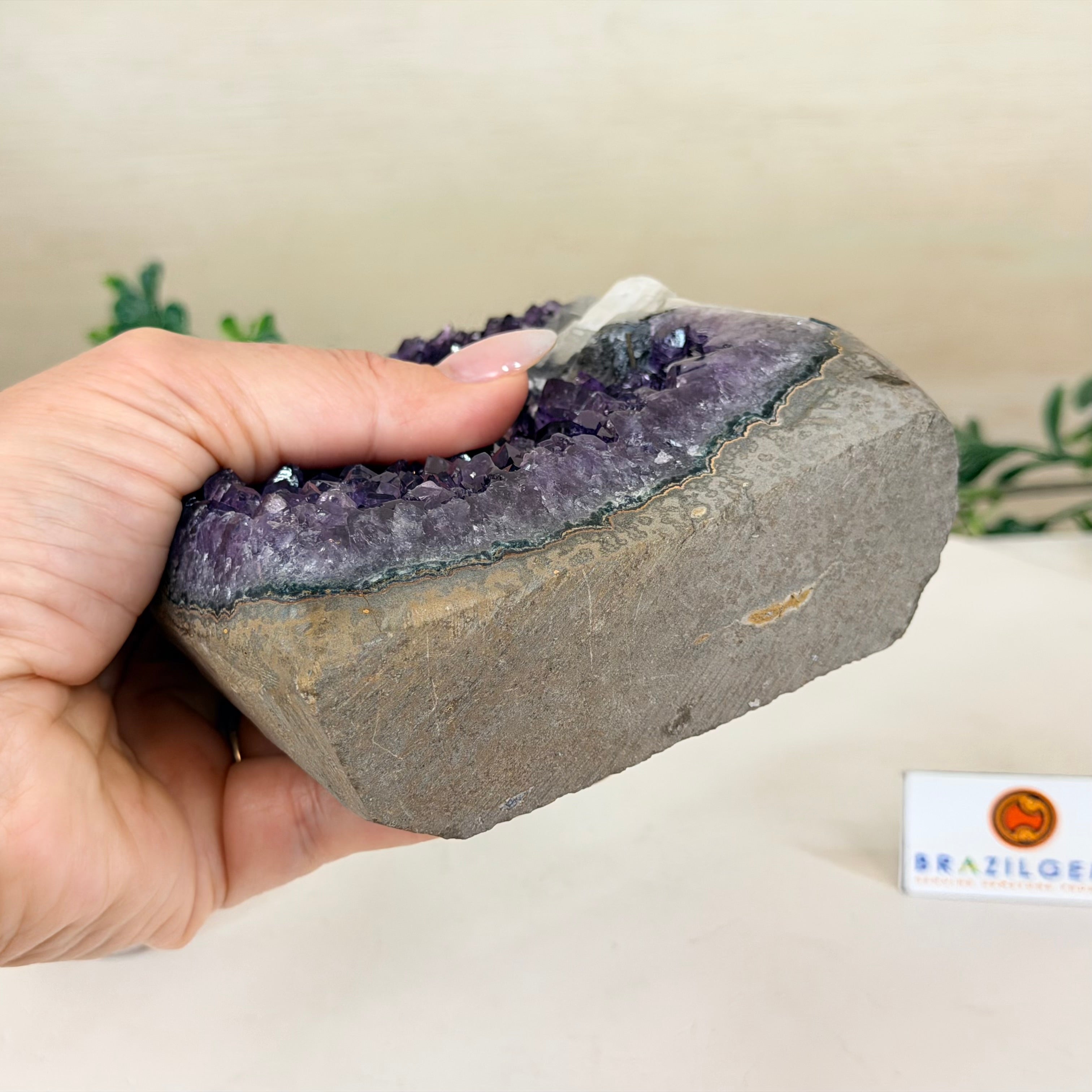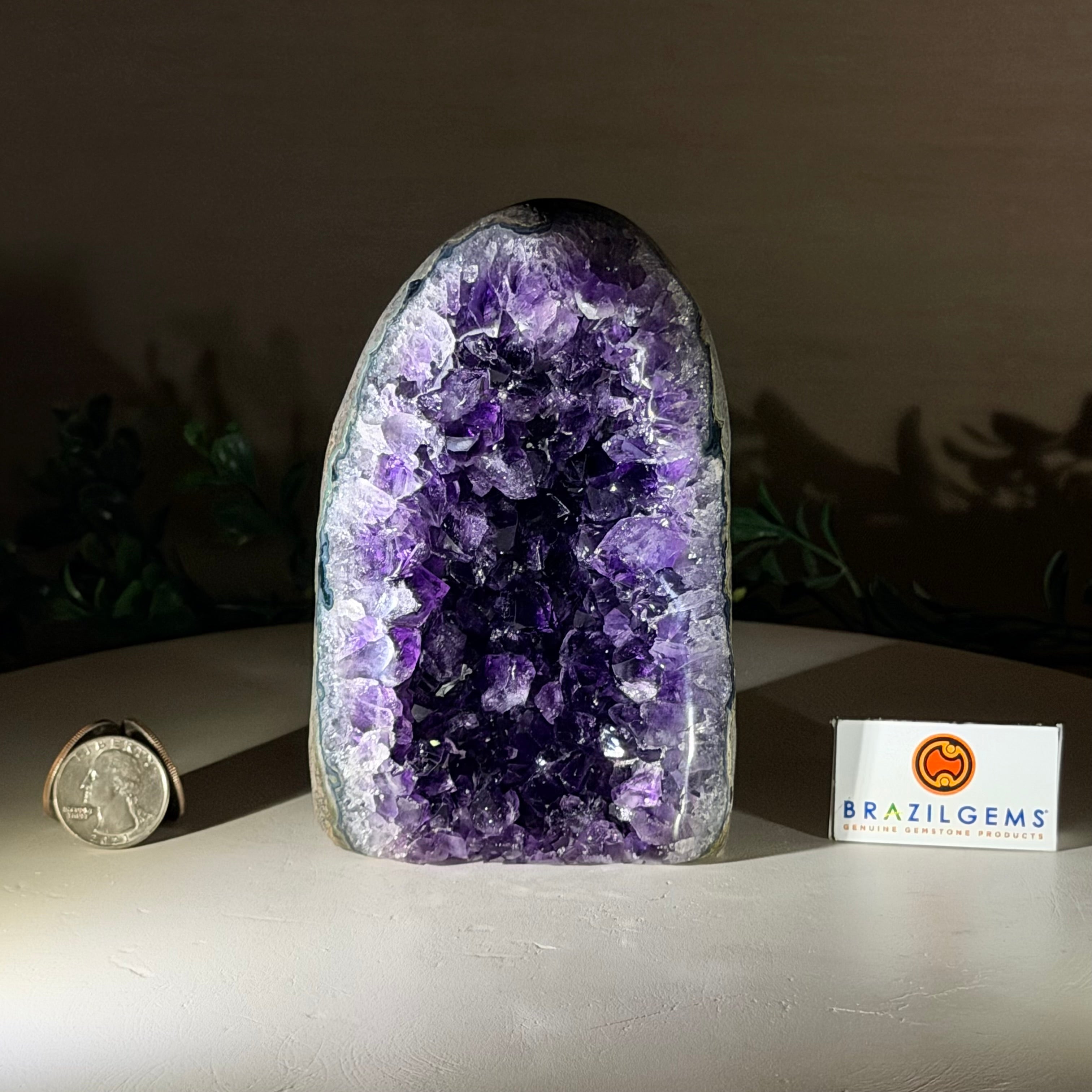 These clusters grow inside geodes–where mineral-rich water slowly deposits crystals over time. The result is a captivating arrangement of pointed amethyst crystals that can beautify any space.