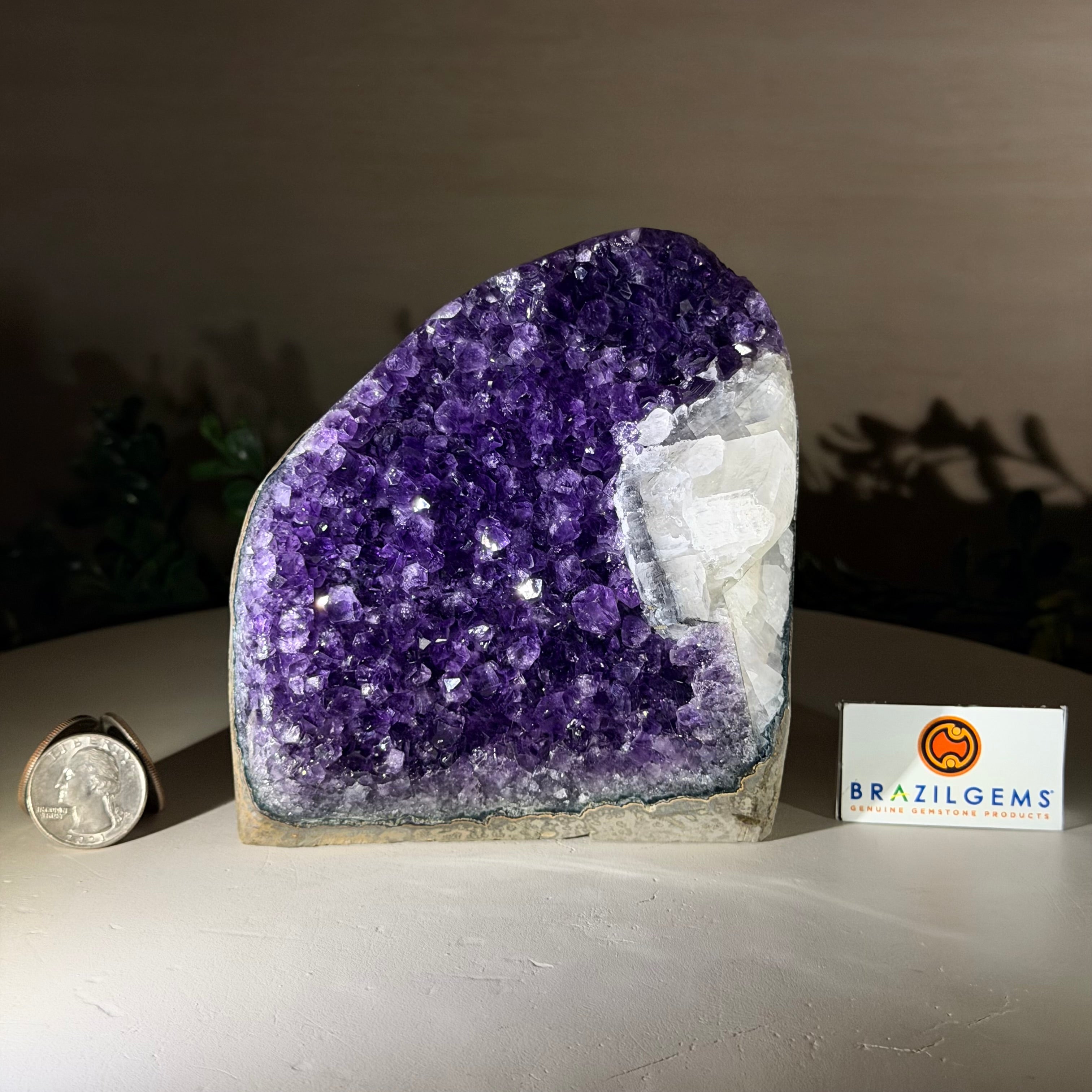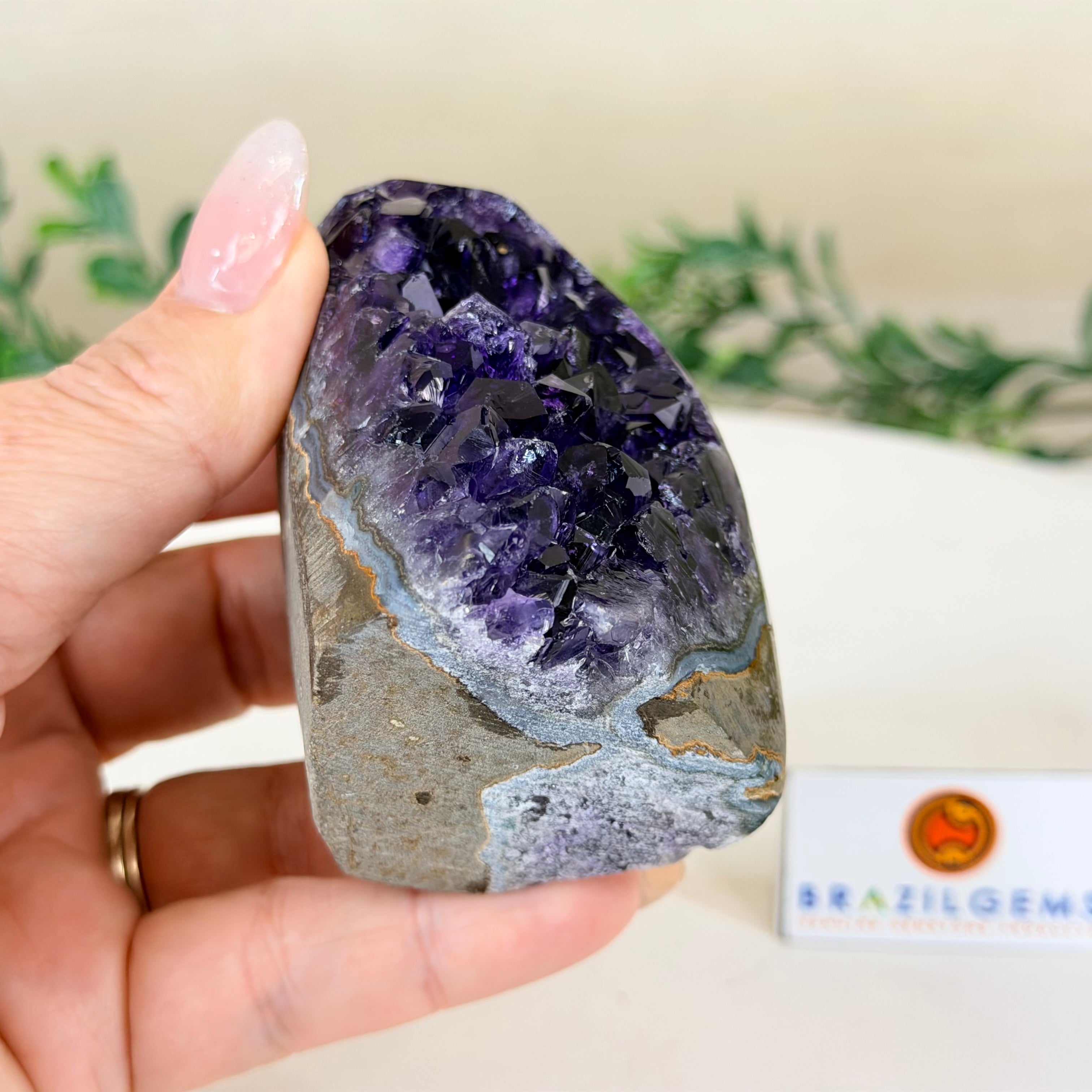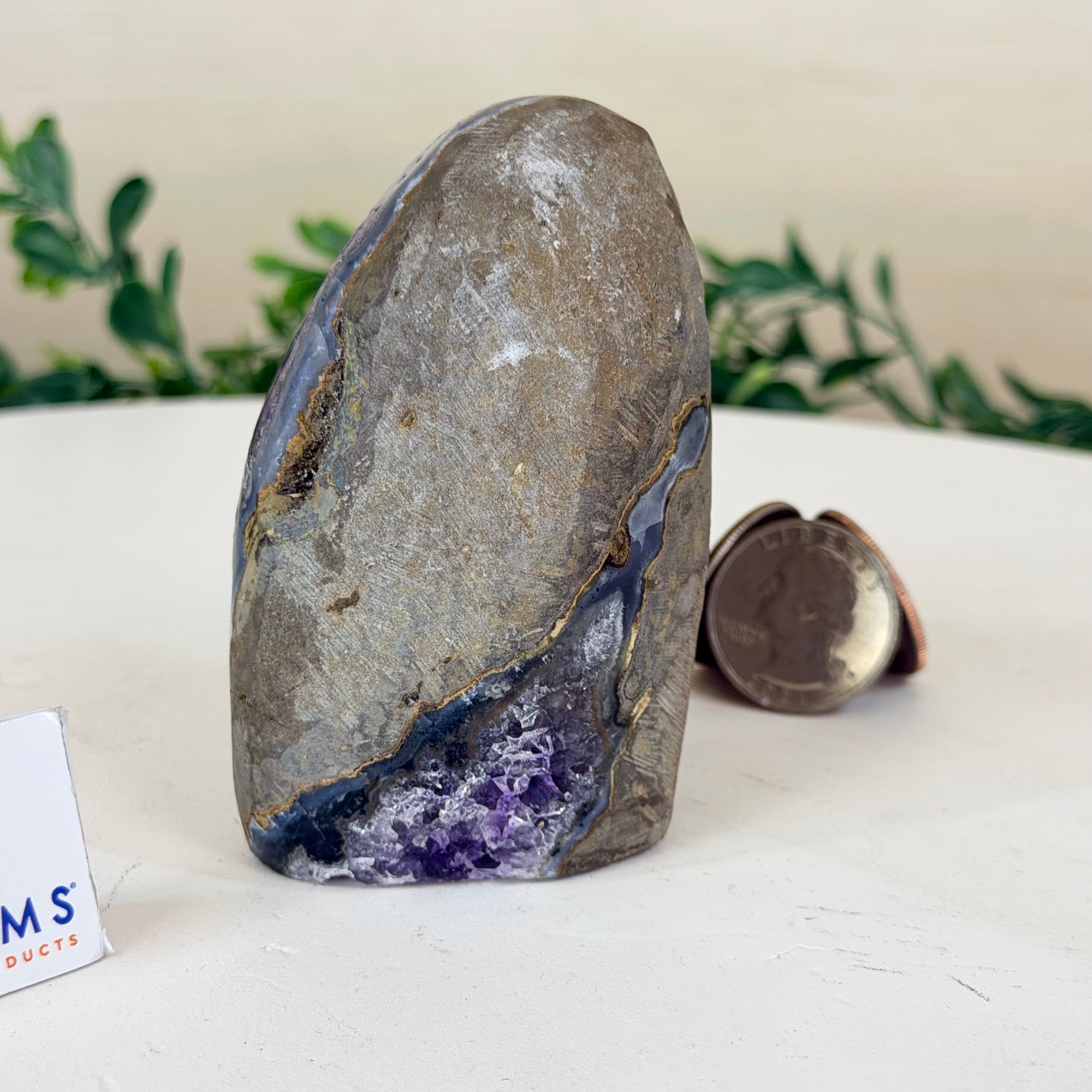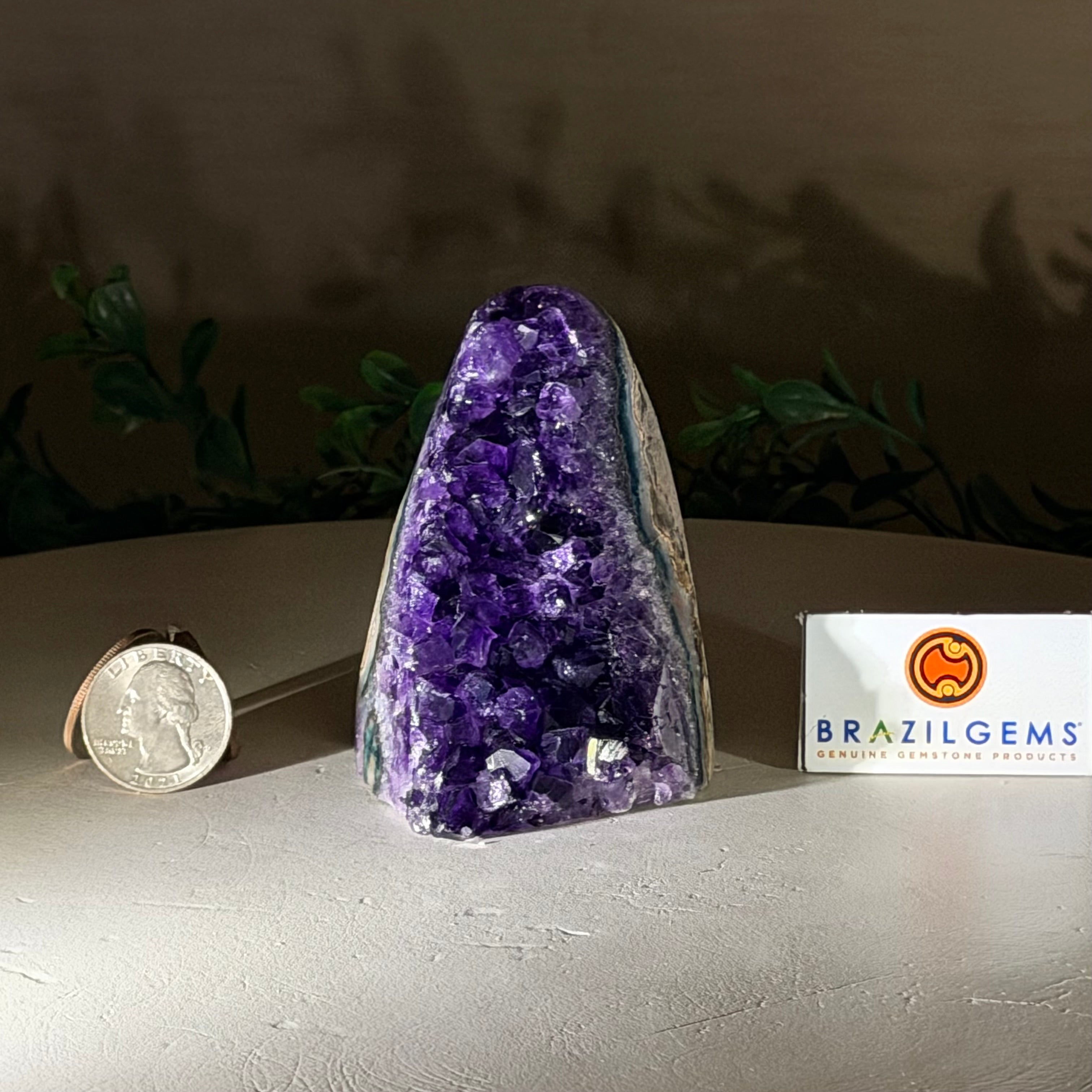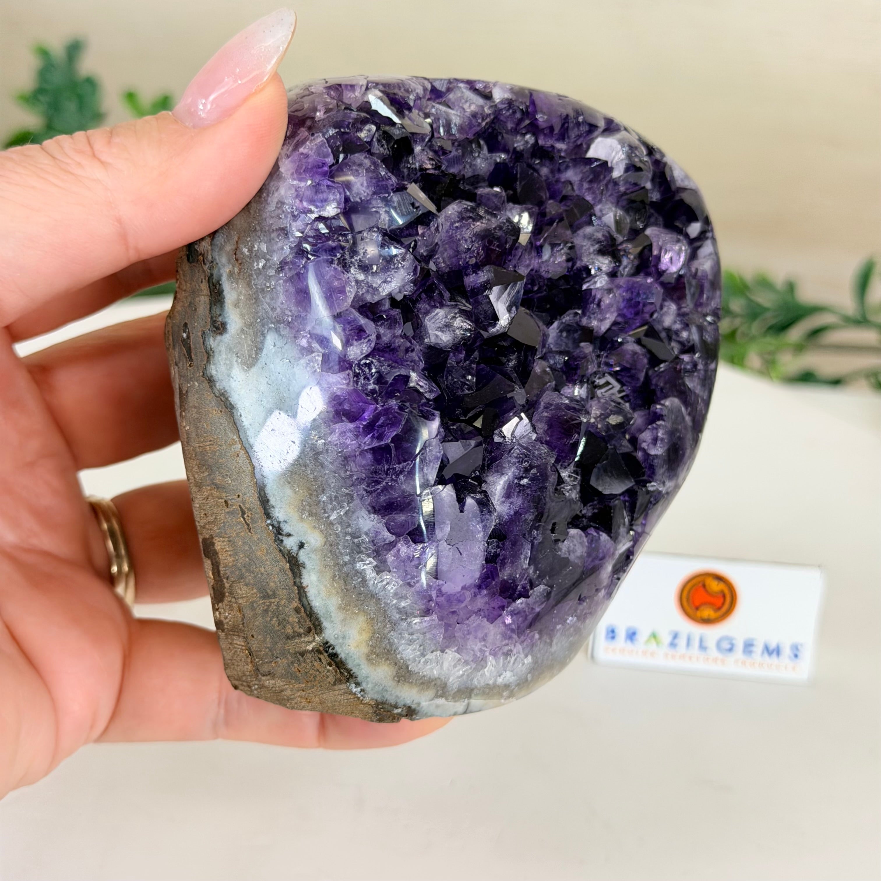 These clusters grow inside geodes–where mineral-rich water slowly deposits crystals over time. The result is a captivating arrangement of pointed amethyst crystals that can beautify any space.