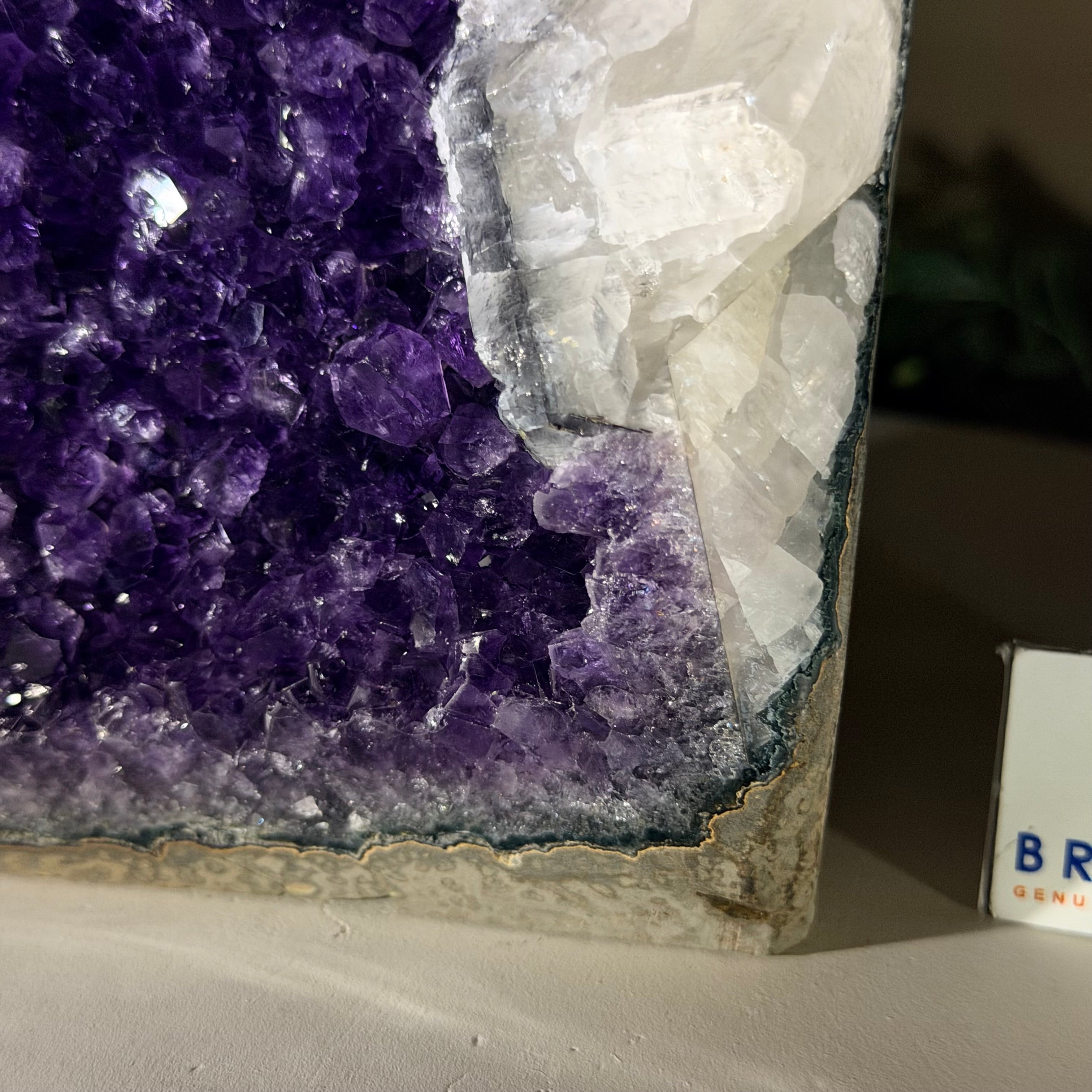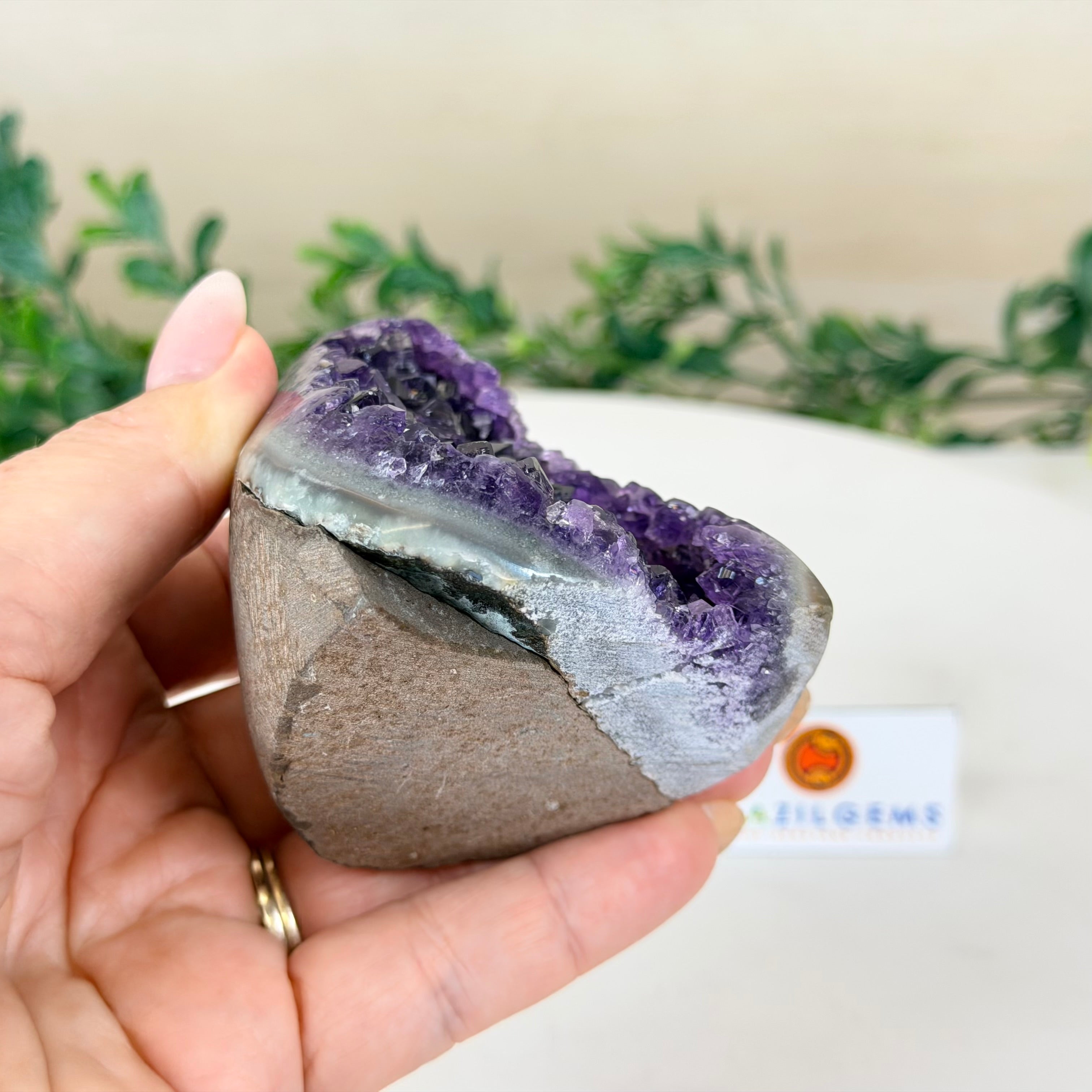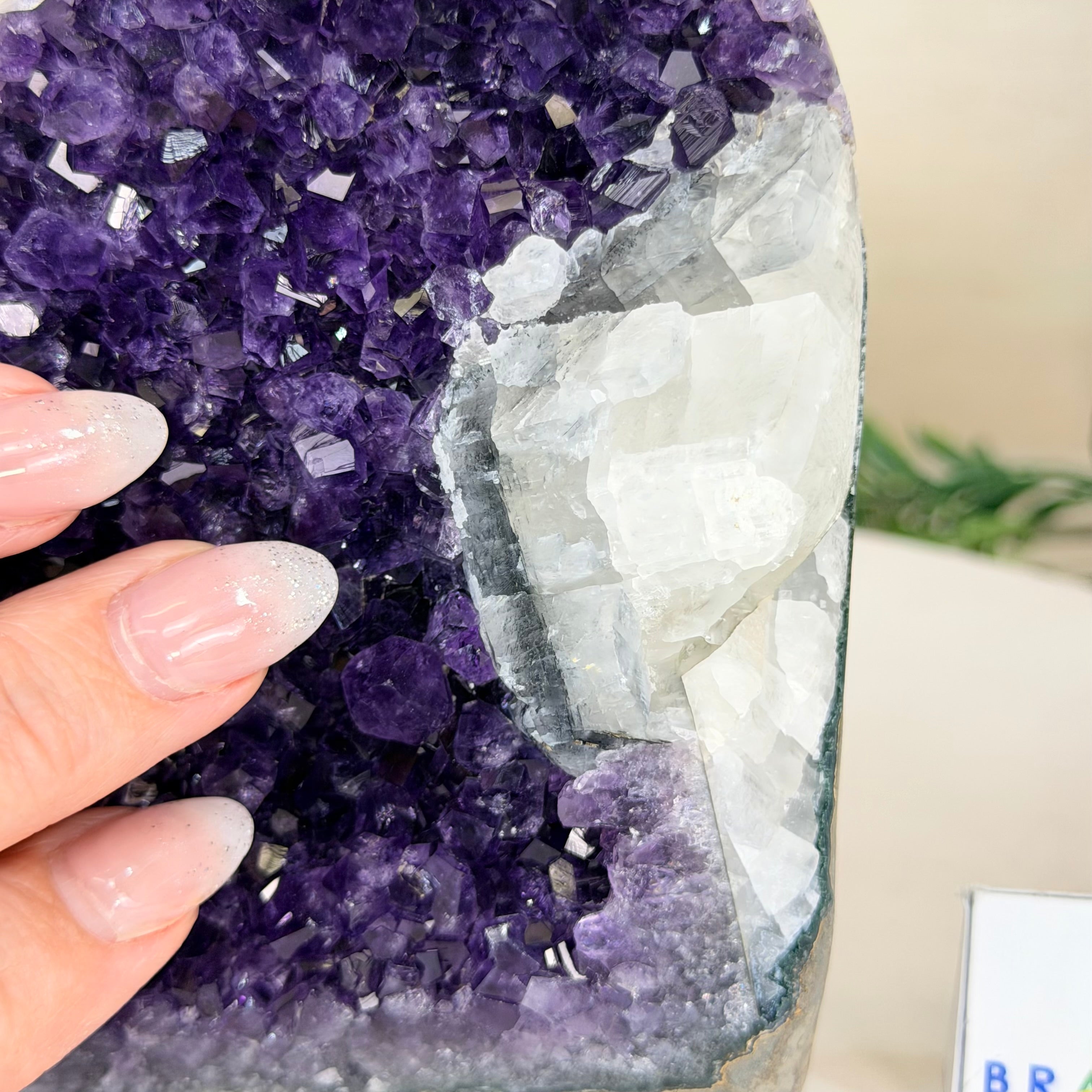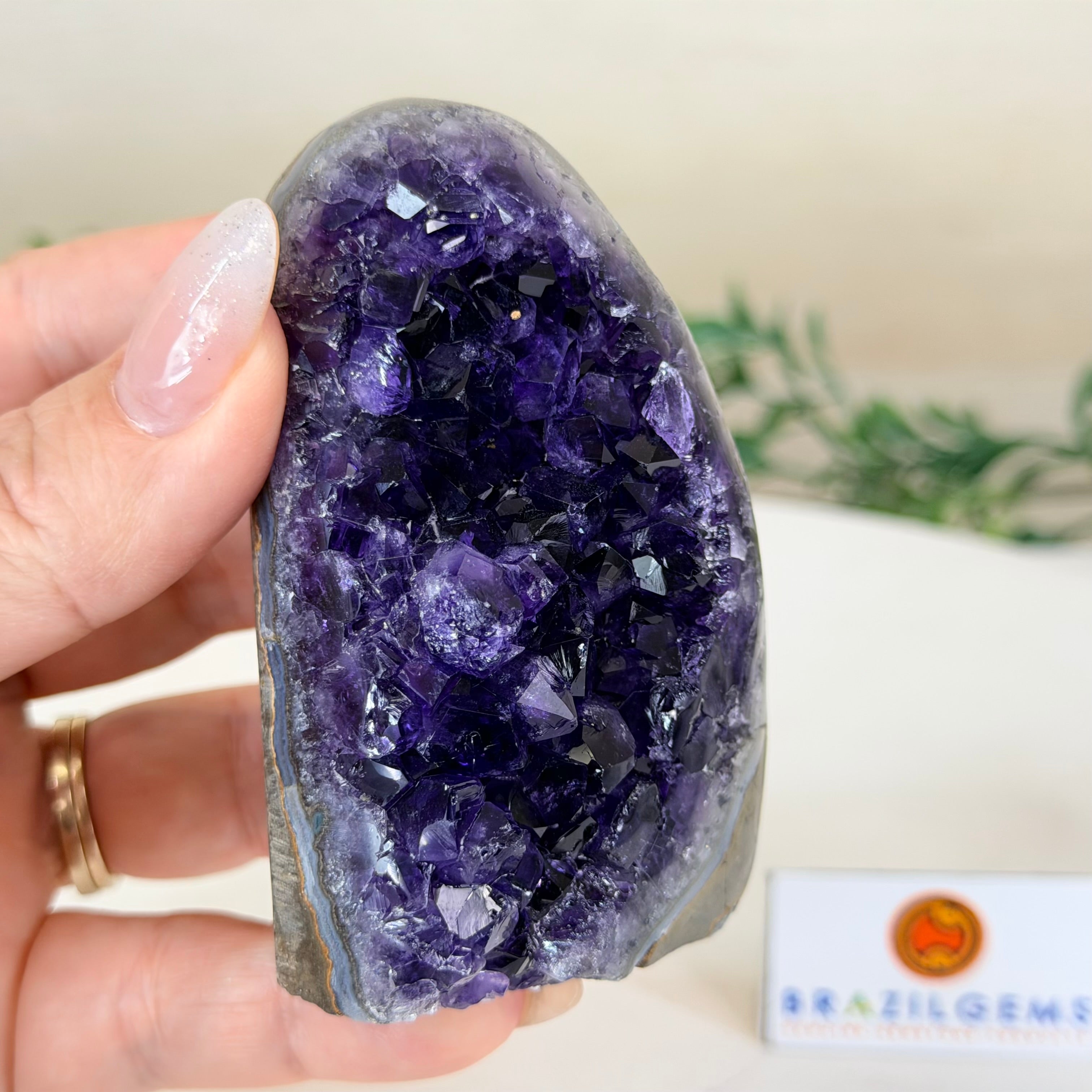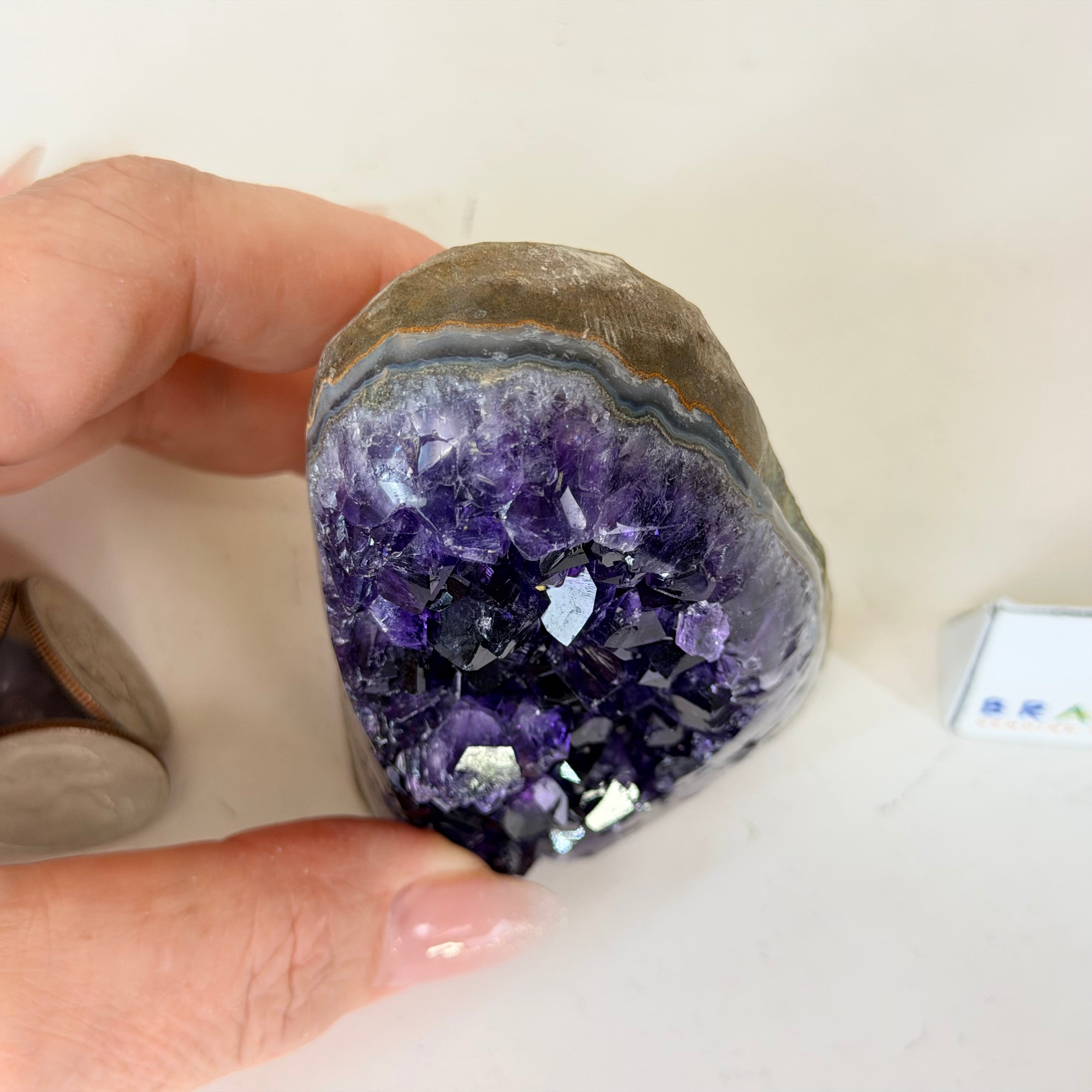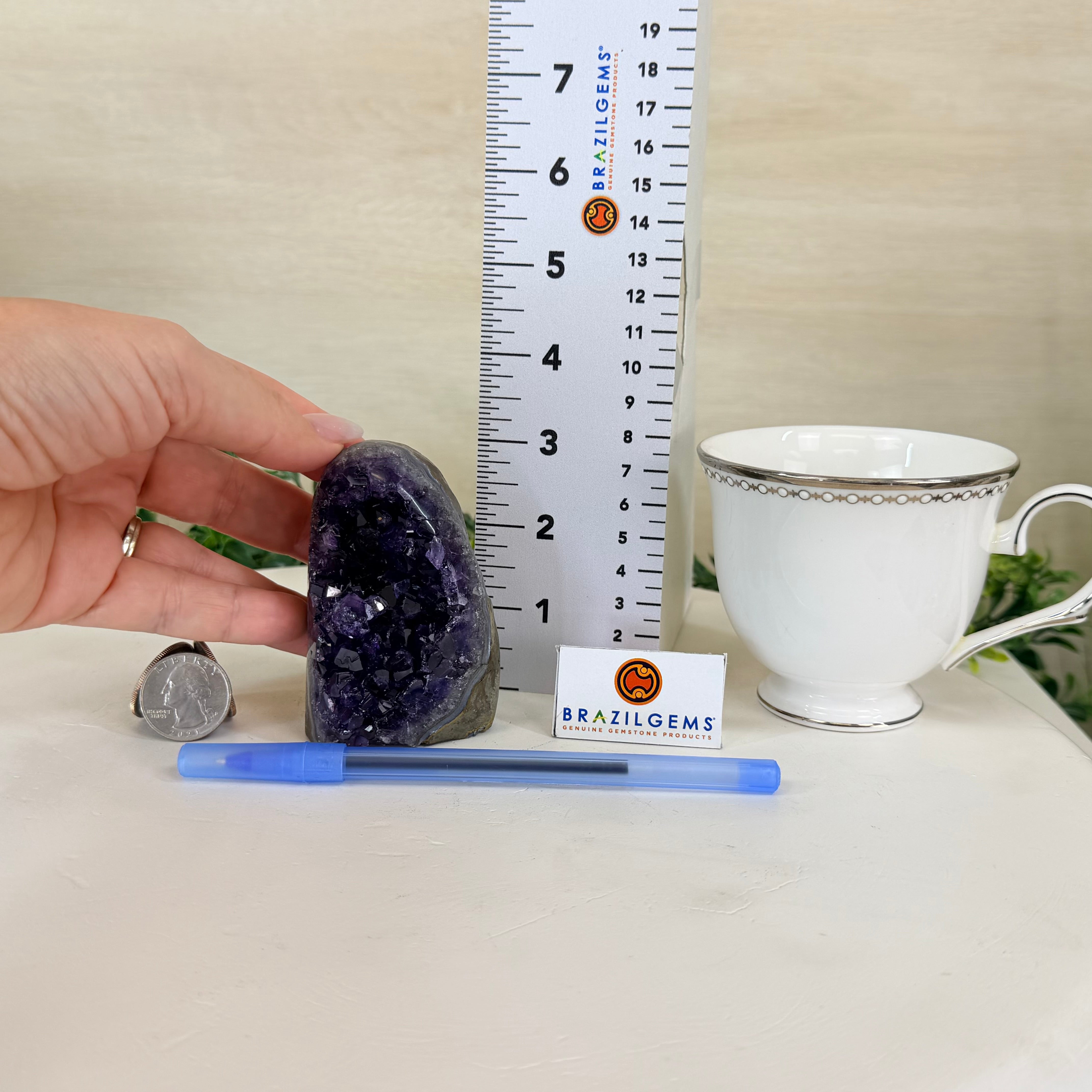 These clusters grow inside geodes–where mineral-rich water slowly deposits crystals over time. The result is a captivating arrangement of pointed amethyst crystals that can beautify any space.