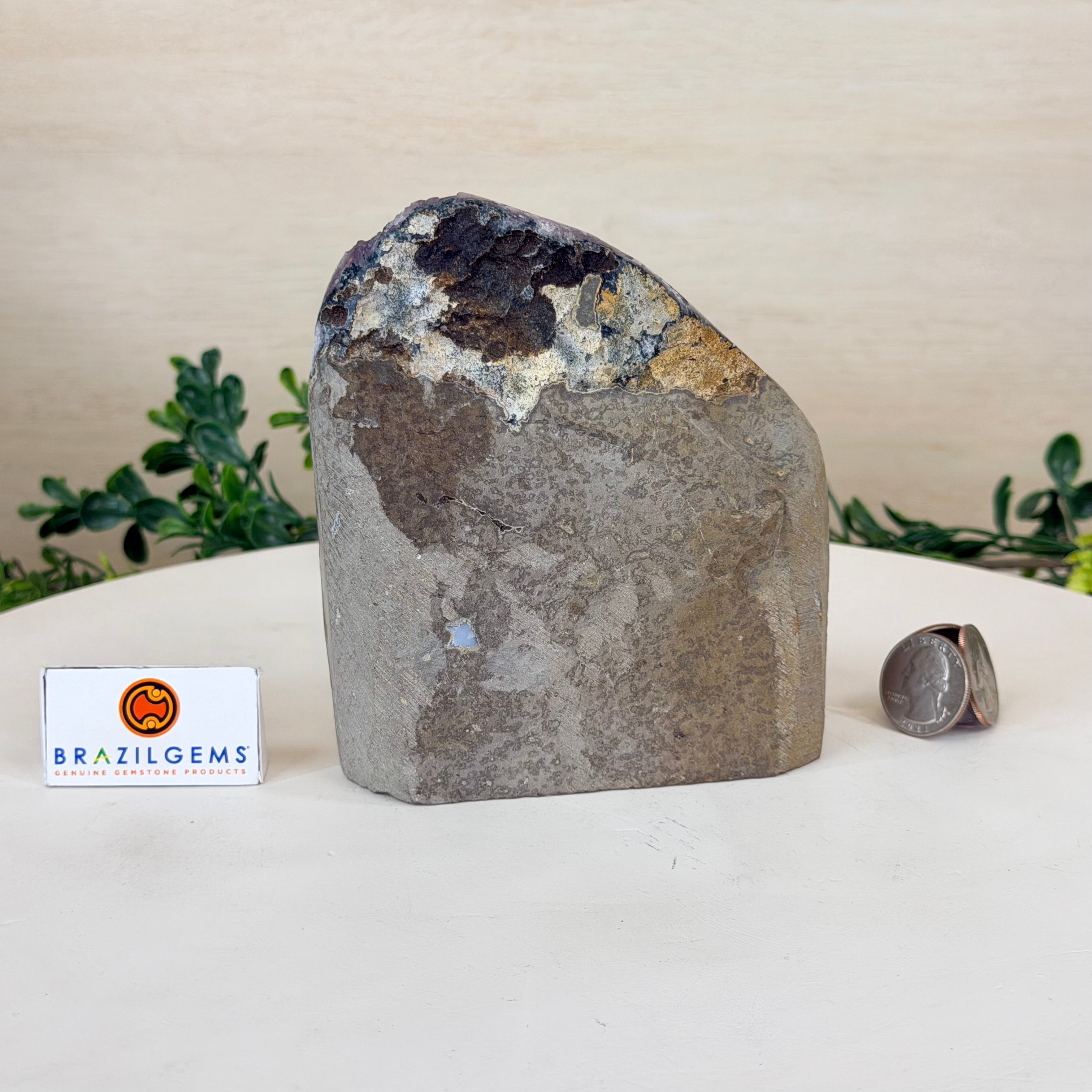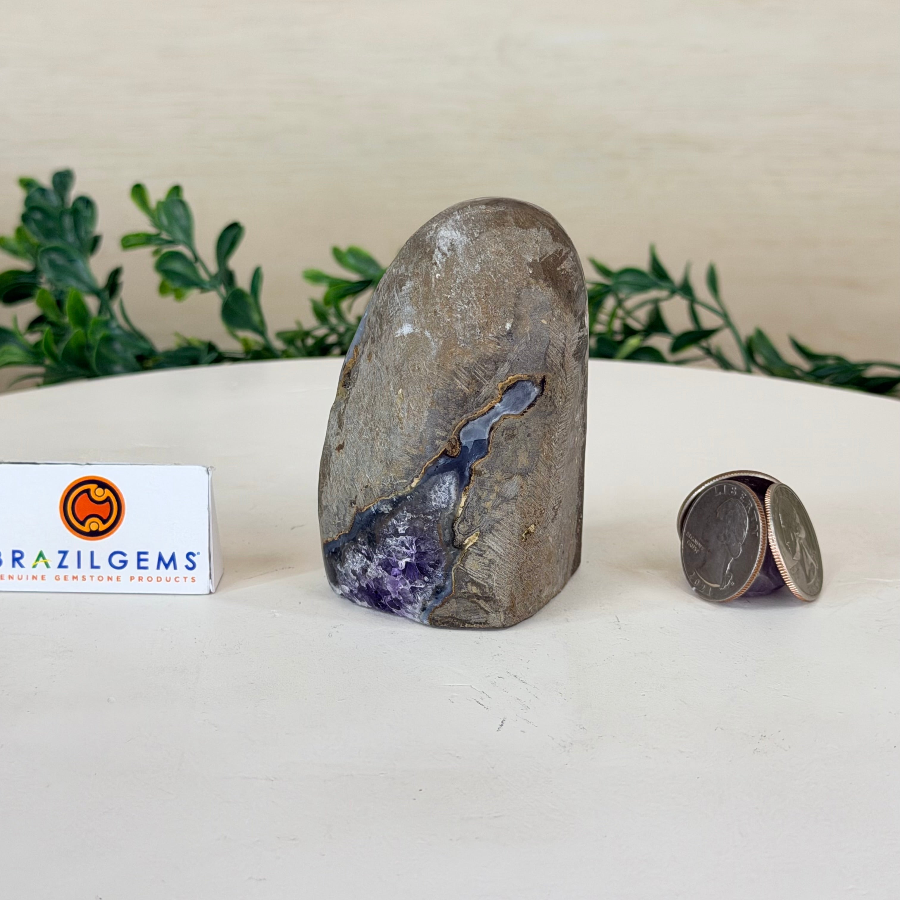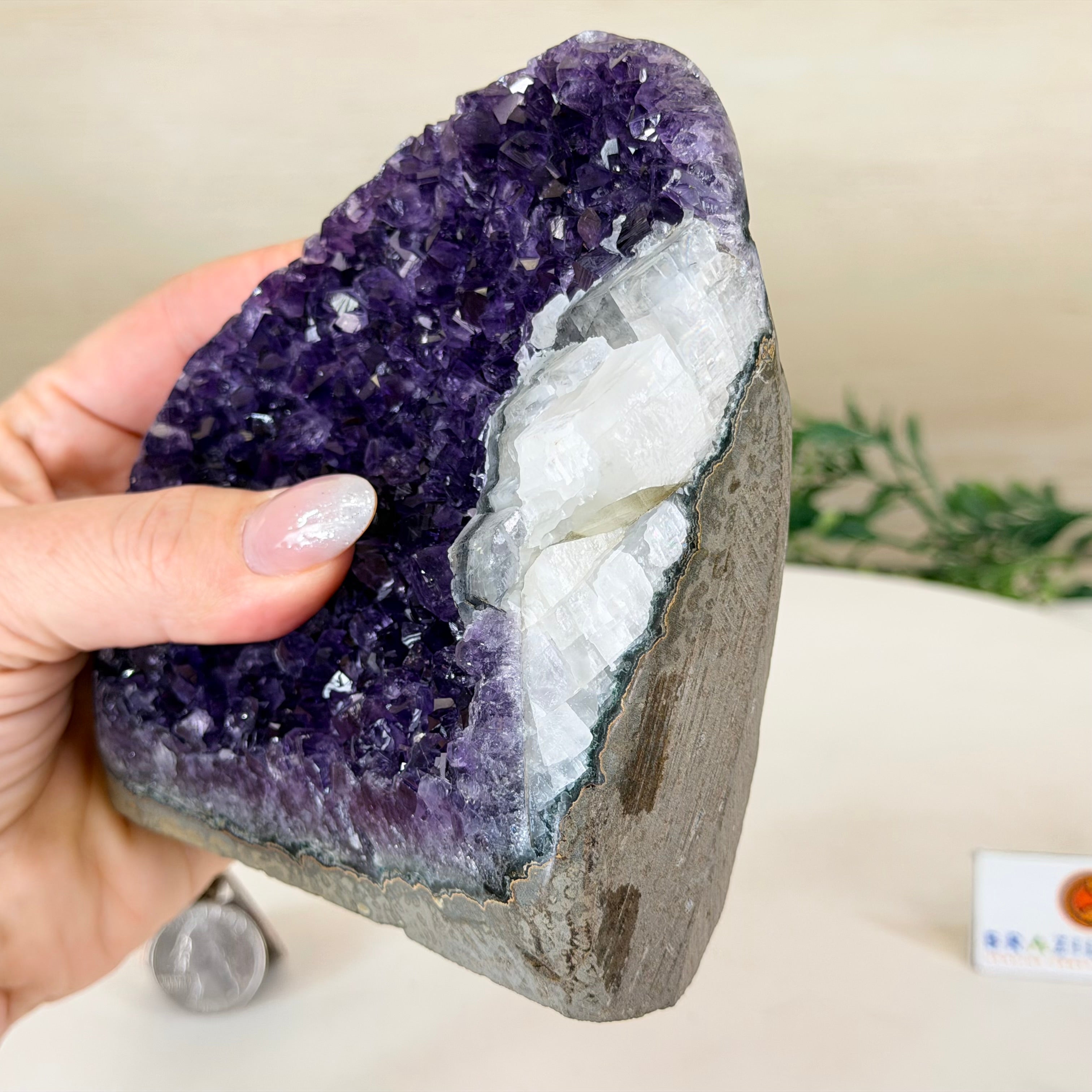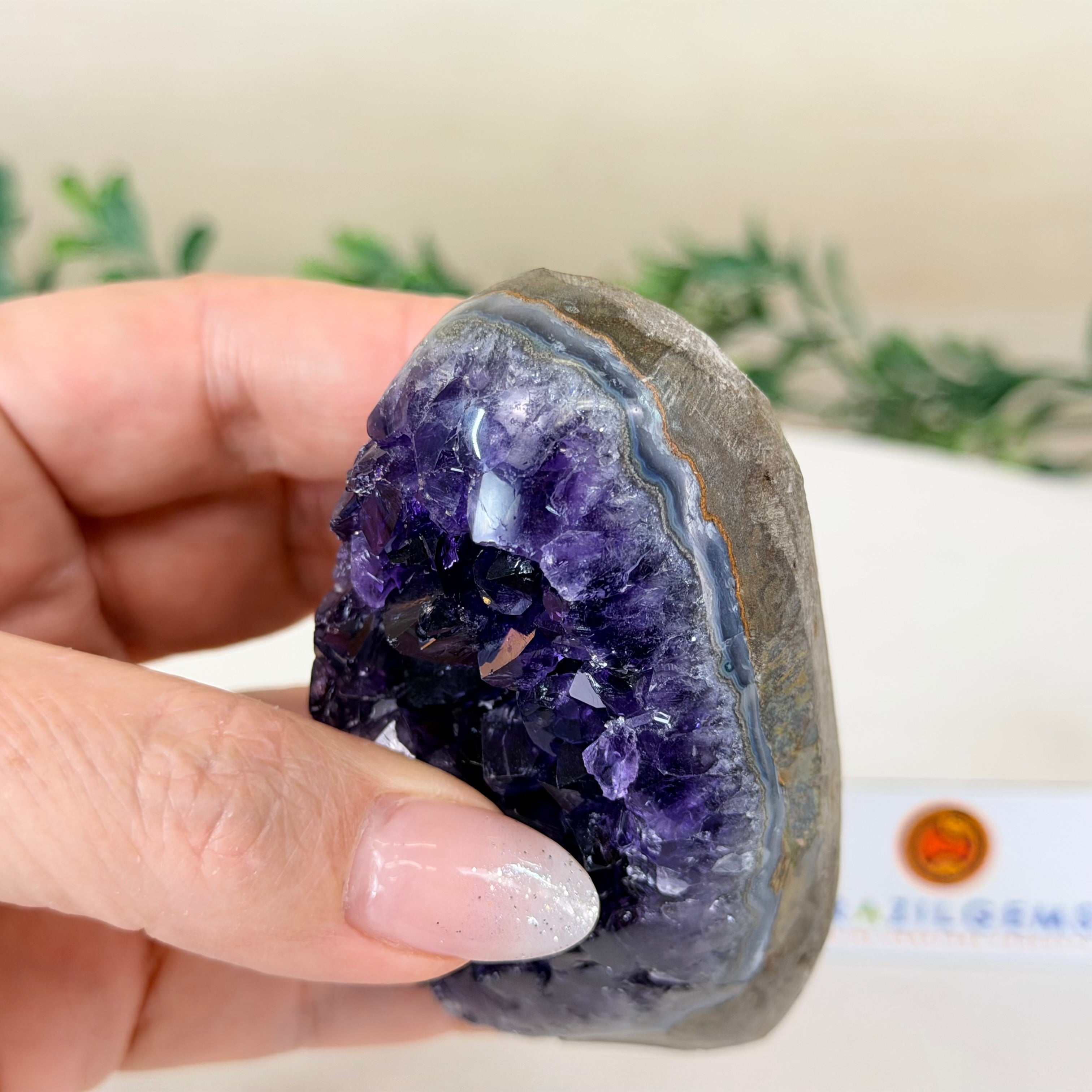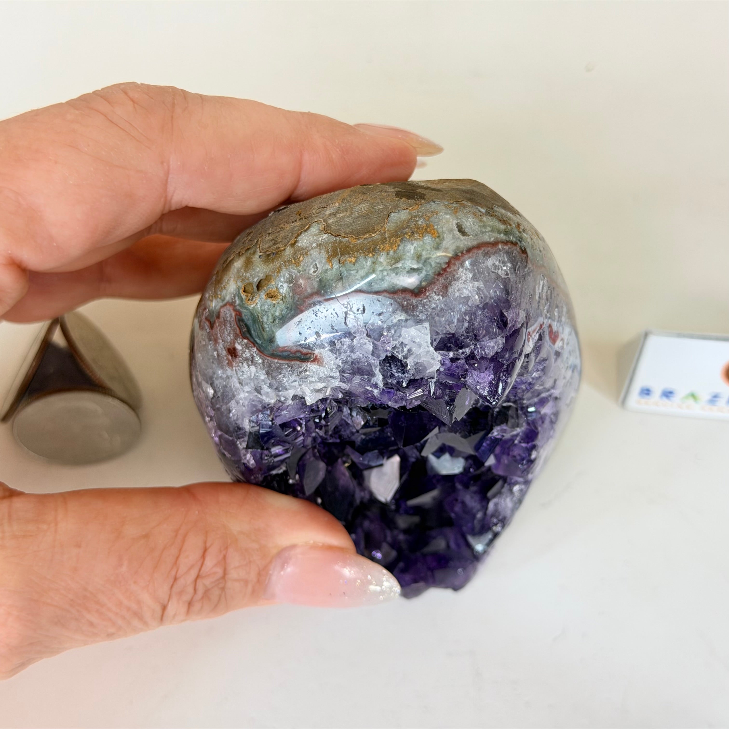 These clusters grow inside geodes–where mineral-rich water slowly deposits crystals over time. The result is a captivating arrangement of pointed amethyst crystals that can beautify any space.