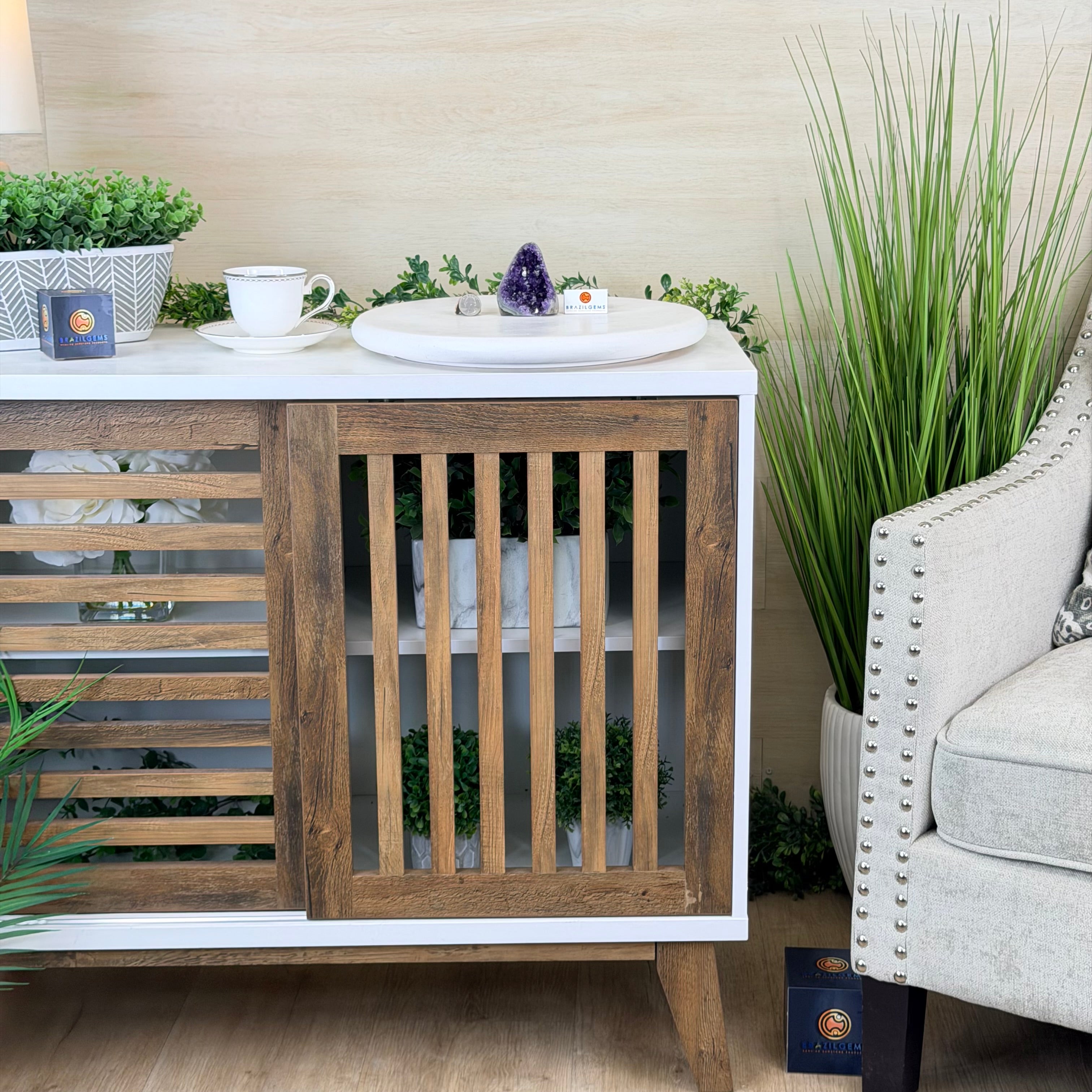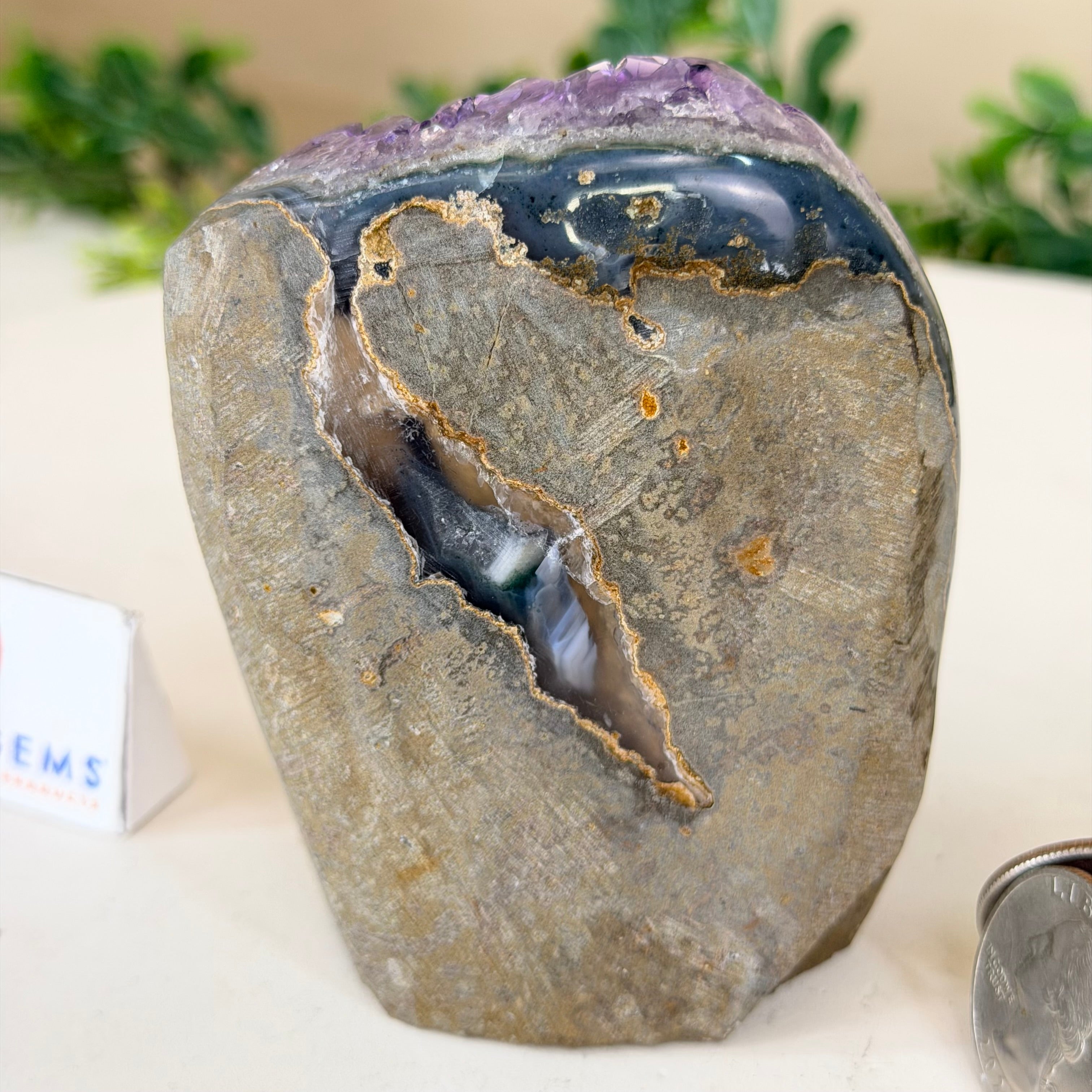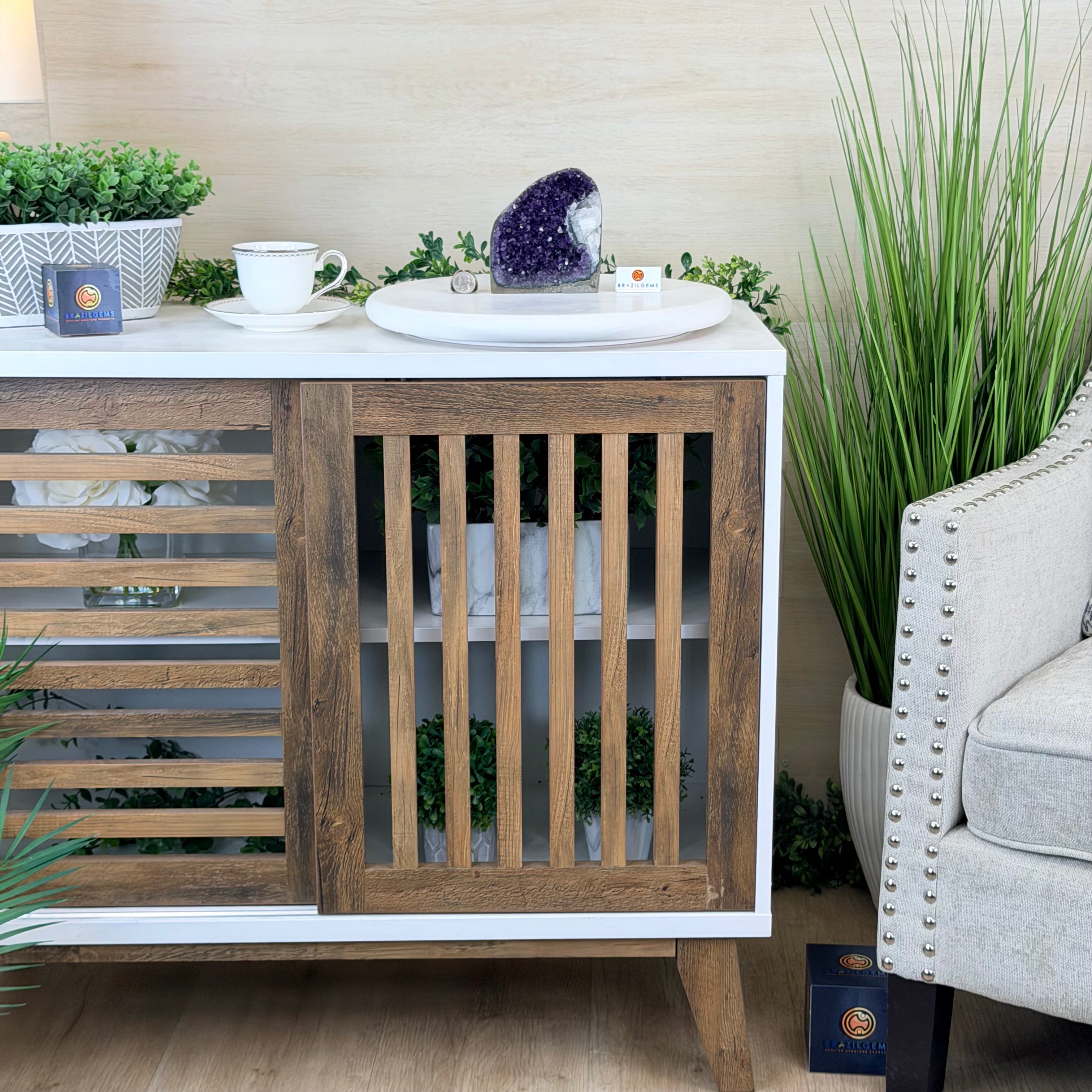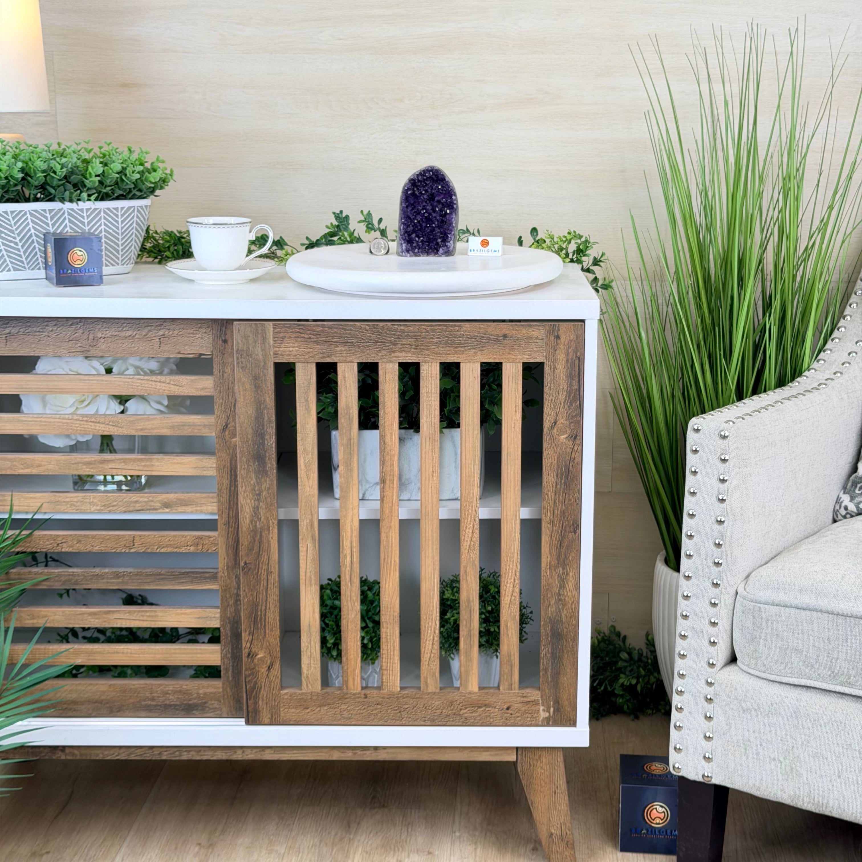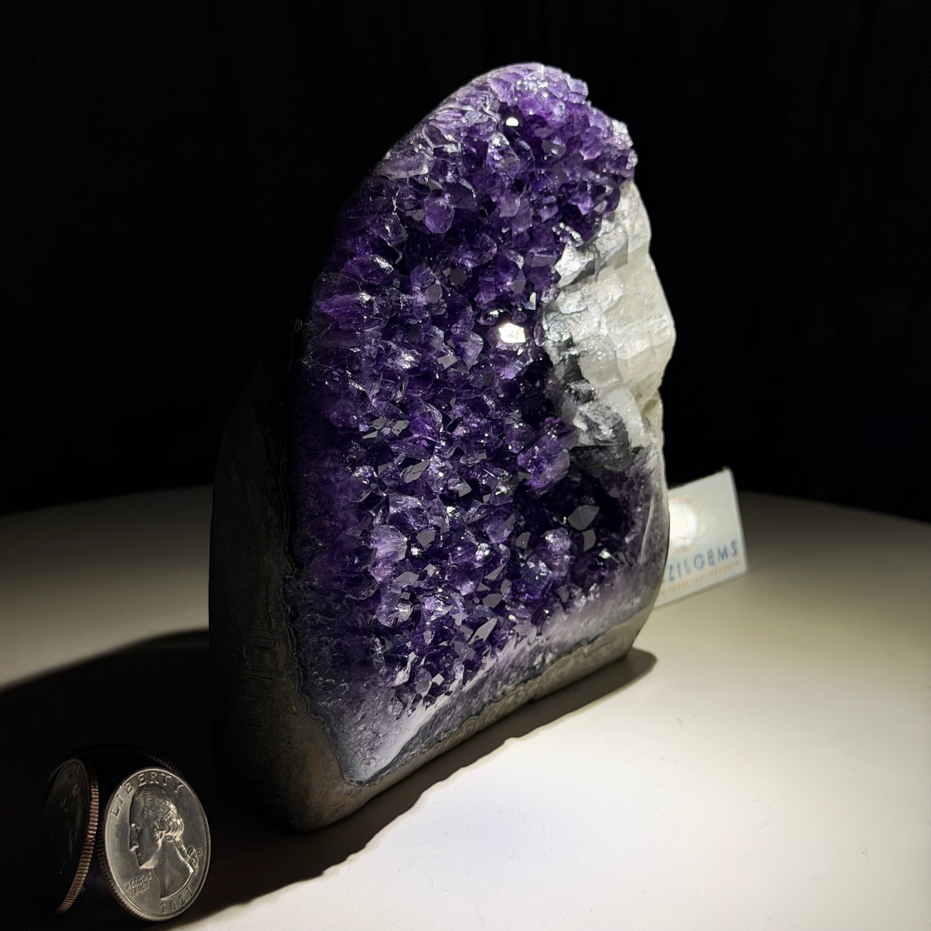 These clusters grow inside geodes–where mineral-rich water slowly deposits crystals over time. The result is a captivating arrangement of pointed amethyst crystals that can beautify any space.