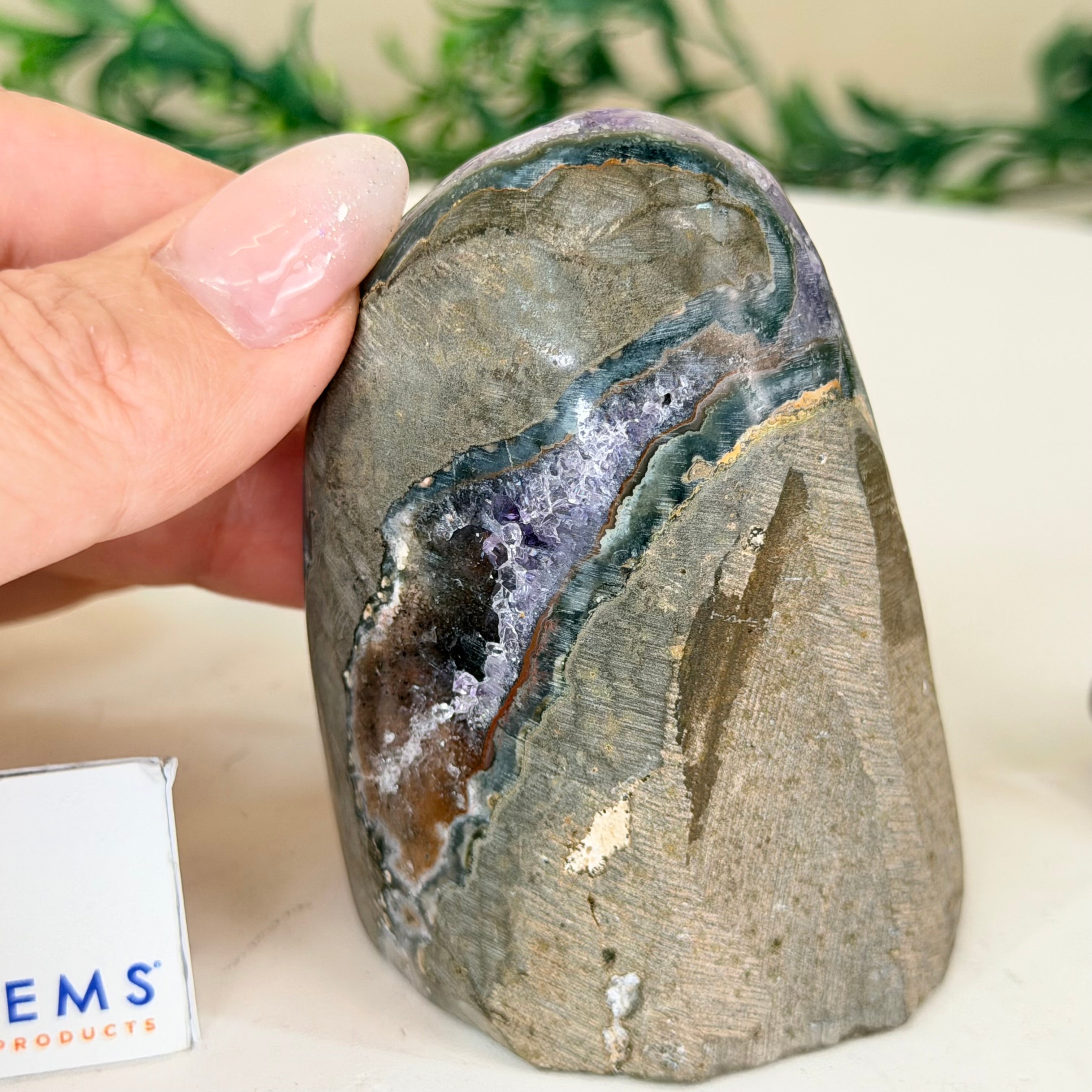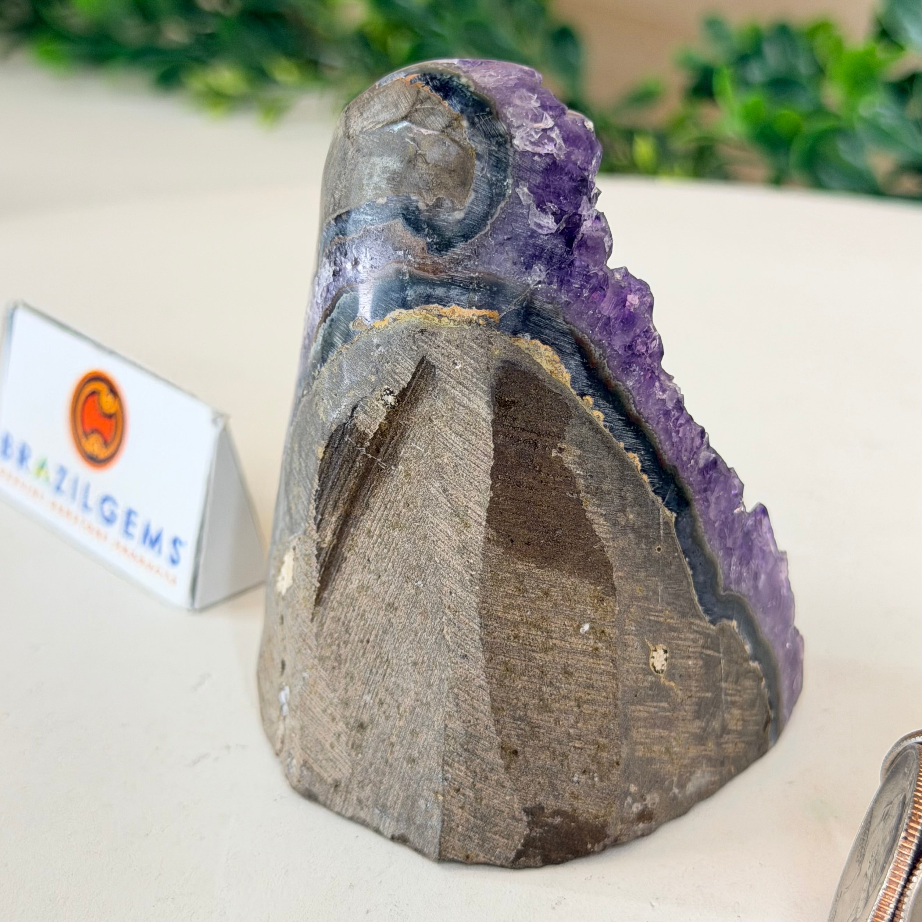 Disclaimer: This is a natural gemstone crystal sold by Brazil Gems® as is and as you see it in its images and video. It is the exact one you will receive. It may contain natural imperfections and/or imperfections, broken edges and repairs from the extraction, polishing and prepping processes. In order for it to stand on its own the bottom has been cut flat. At Brazil Gems® we make every effort to get measurements as exact as possible but they are done by human hands and eyes and therefore may have minor discrepancies.