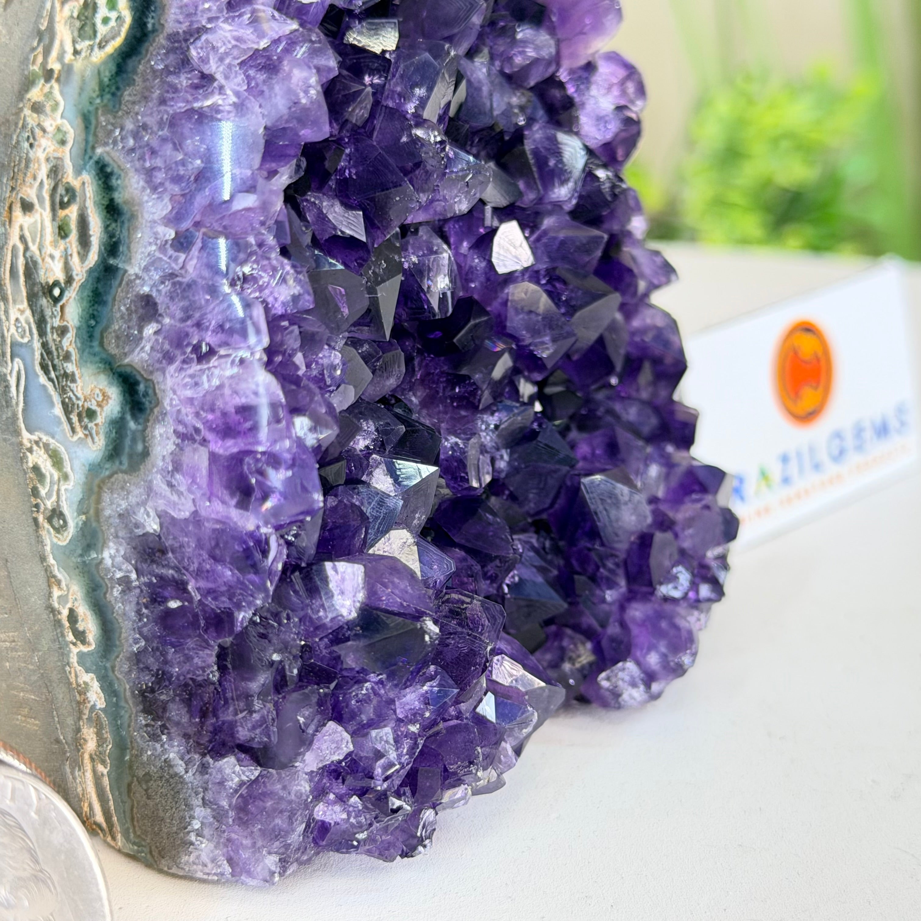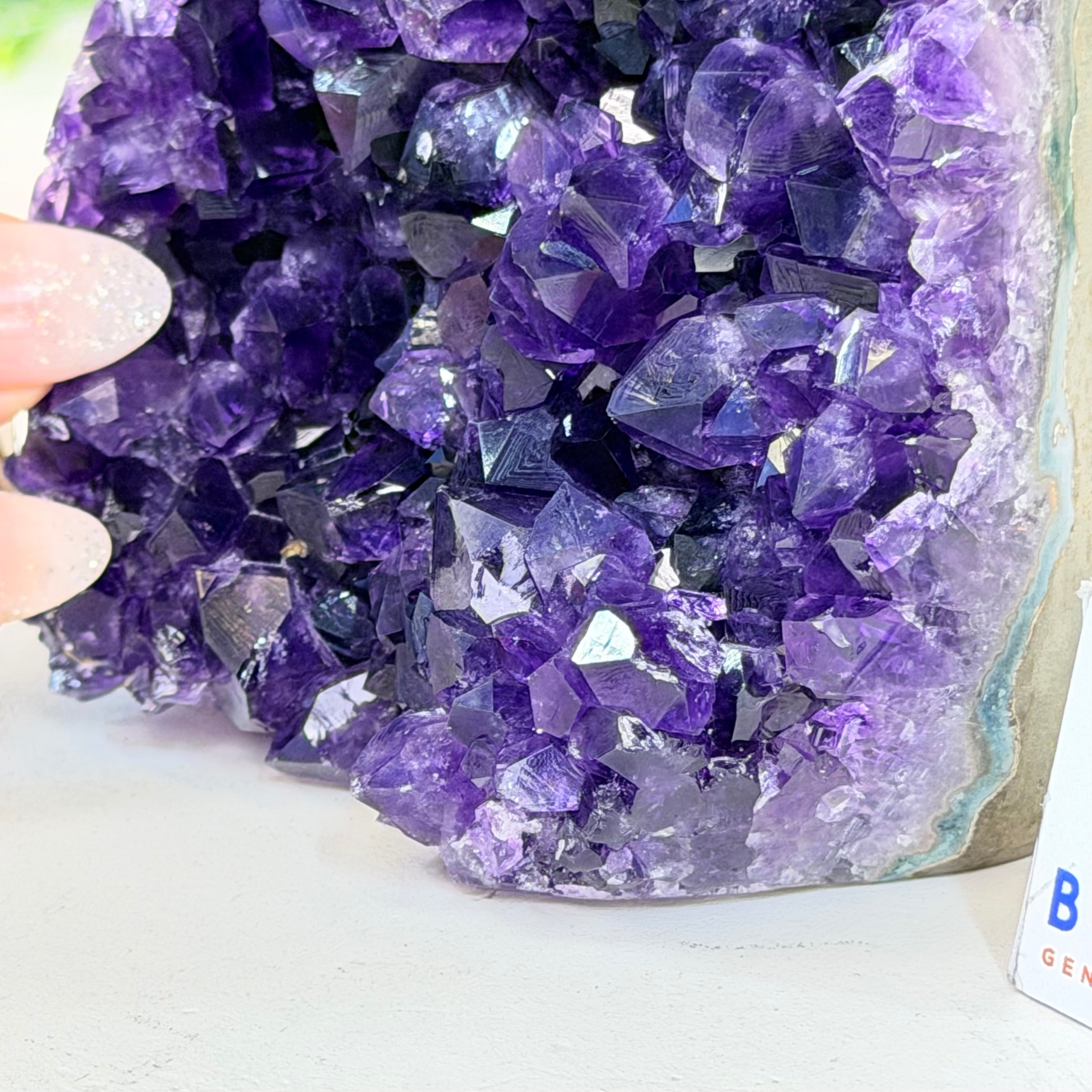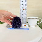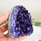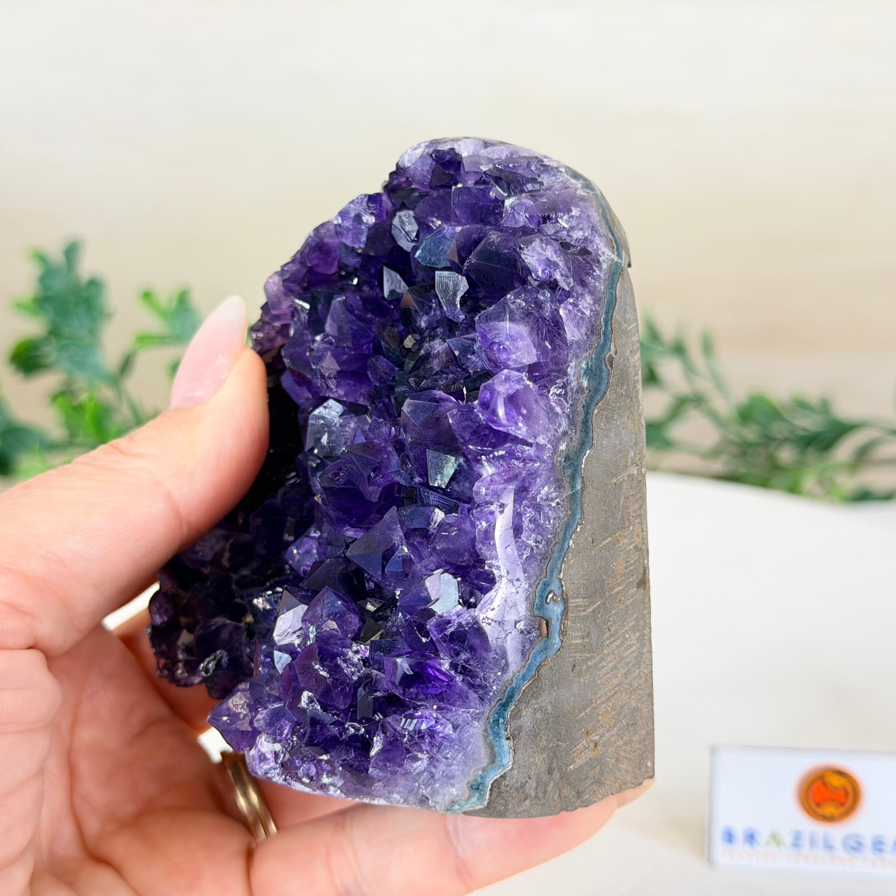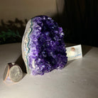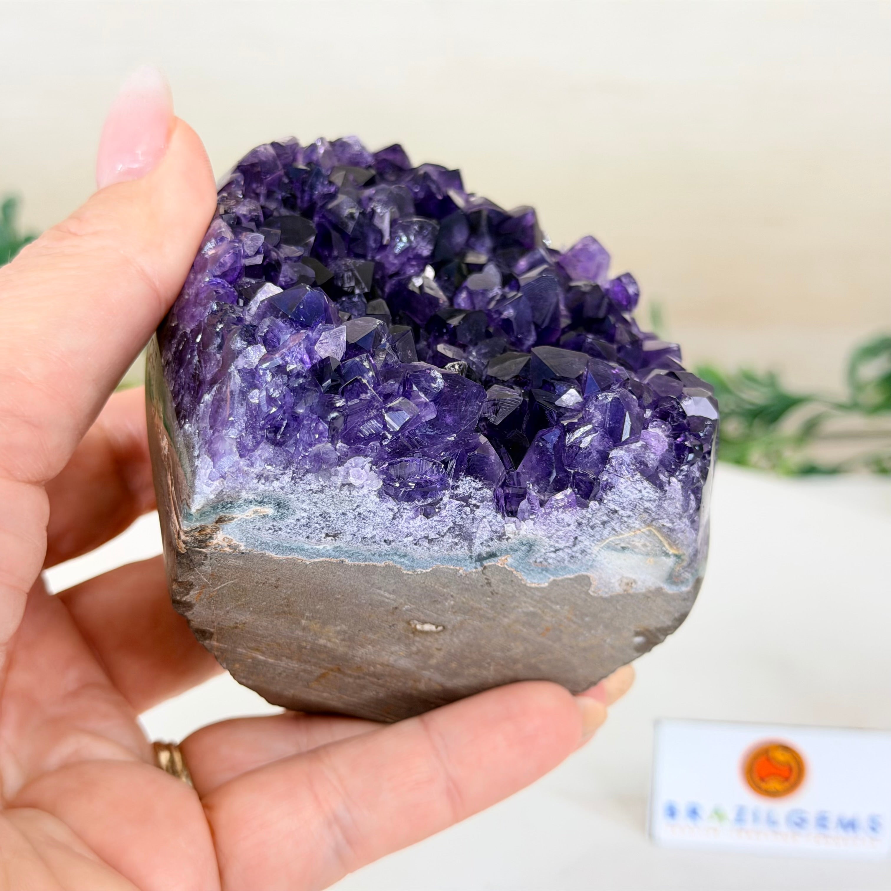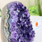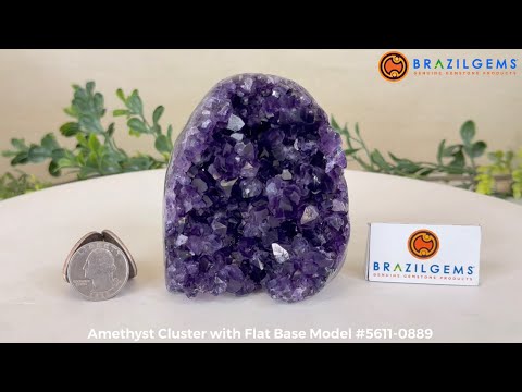 Embrace the natural beauty of this Small Brazilian Extra Plus Quality Amethyst Crystal Cluster with a flat base by Brazil Gems®. This piece has deep purple colors, nicely shaped crystal points and polished edges.