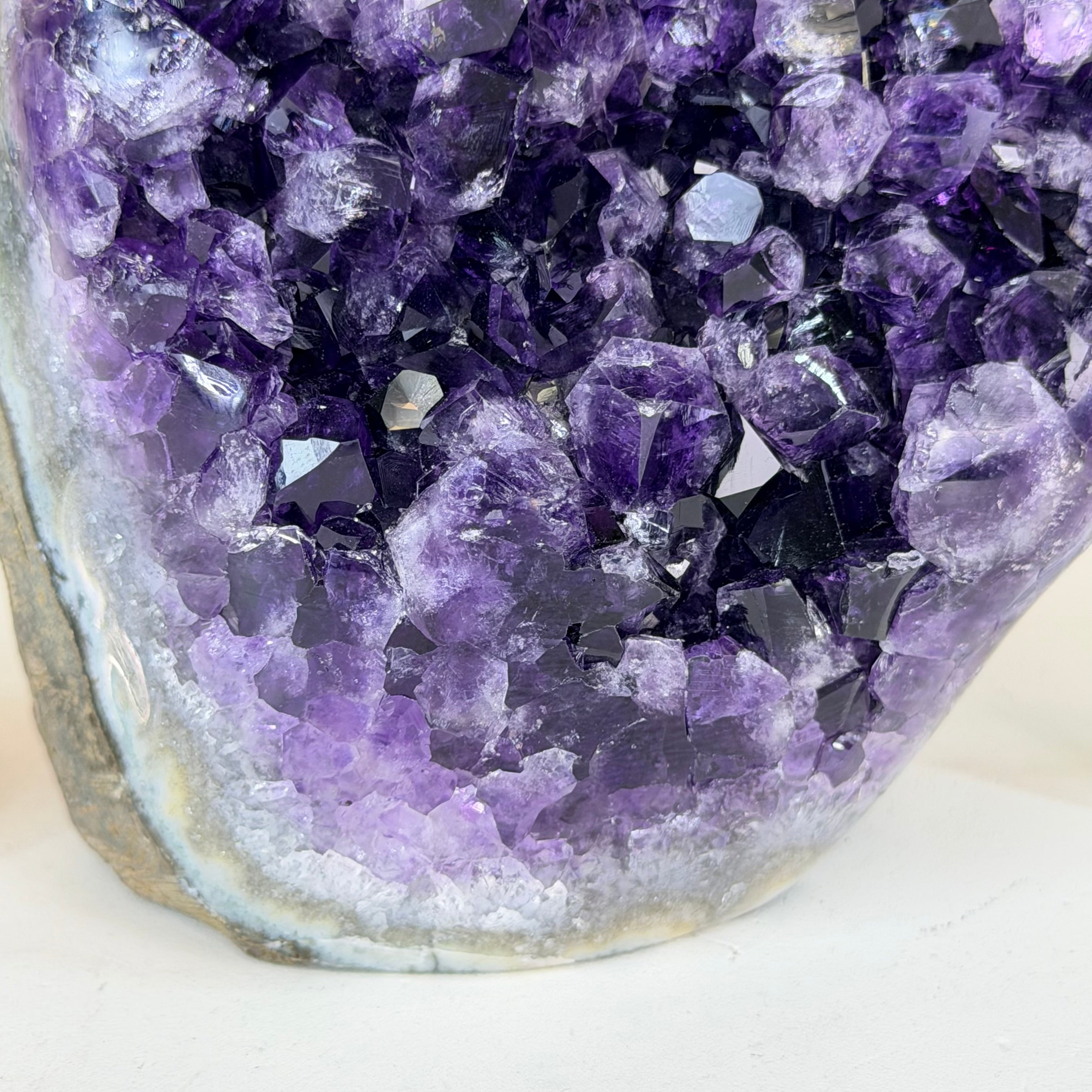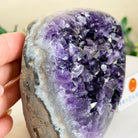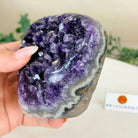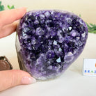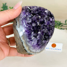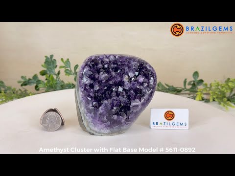 Embrace the natural beauty of this Small Brazilian Extra Plus Quality Amethyst Crystal Cluster with a flat base by Brazil Gems®. This piece has deep purple colors, nicely shaped crystal points and polished edges.
