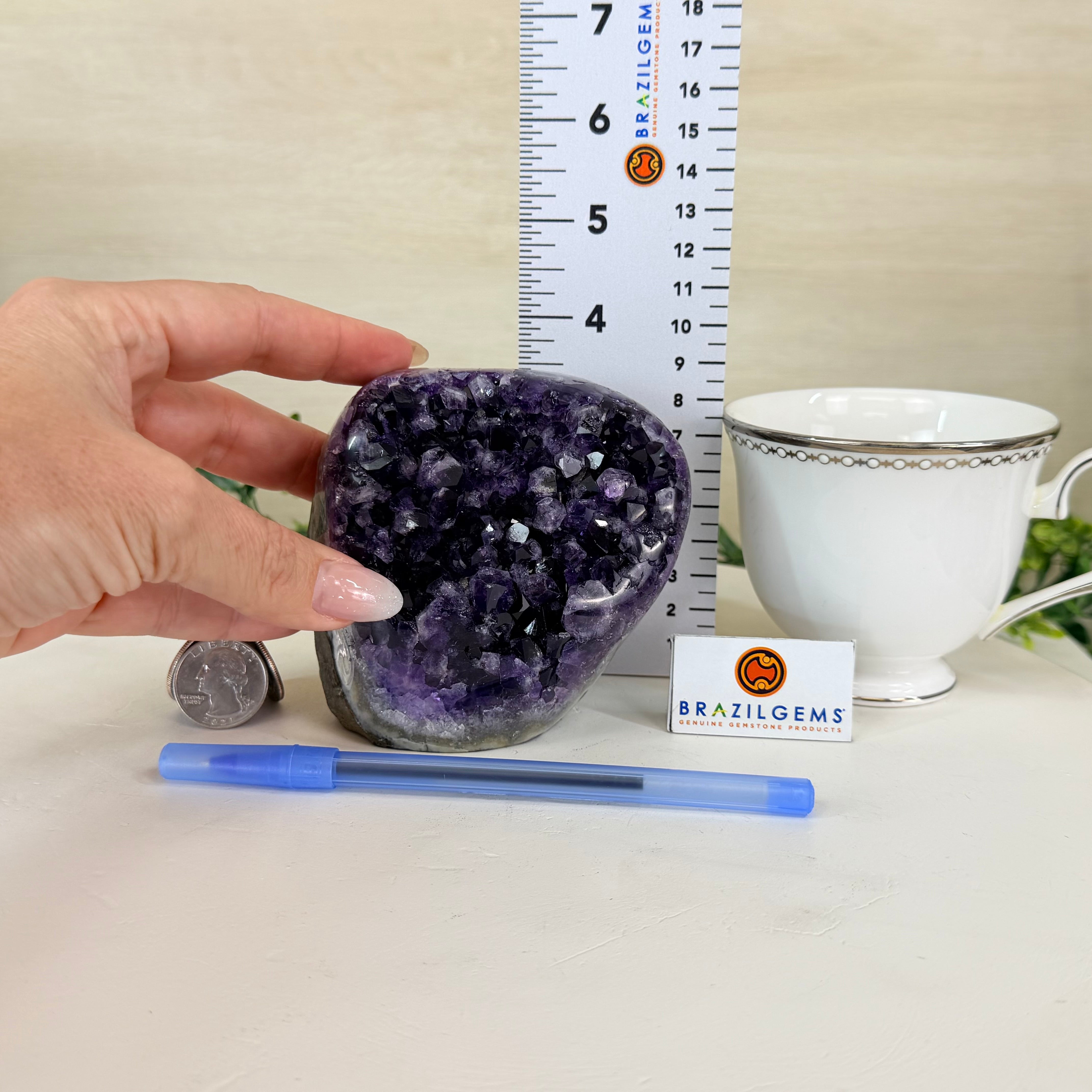 Disclaimer: This is a natural gemstone crystal sold by Brazil Gems® as is and as you see it in its images and video. It is the exact one you will receive. It may contain natural imperfections and/or imperfections, broken edges and repairs from the extraction, polishing and prepping processes. In order for it to stand on its own the bottom has been cut flat. At Brazil Gems® we make every effort to get measurements as exact as possible but they are done by human hands and eyes and therefore may have minor discrepancies.