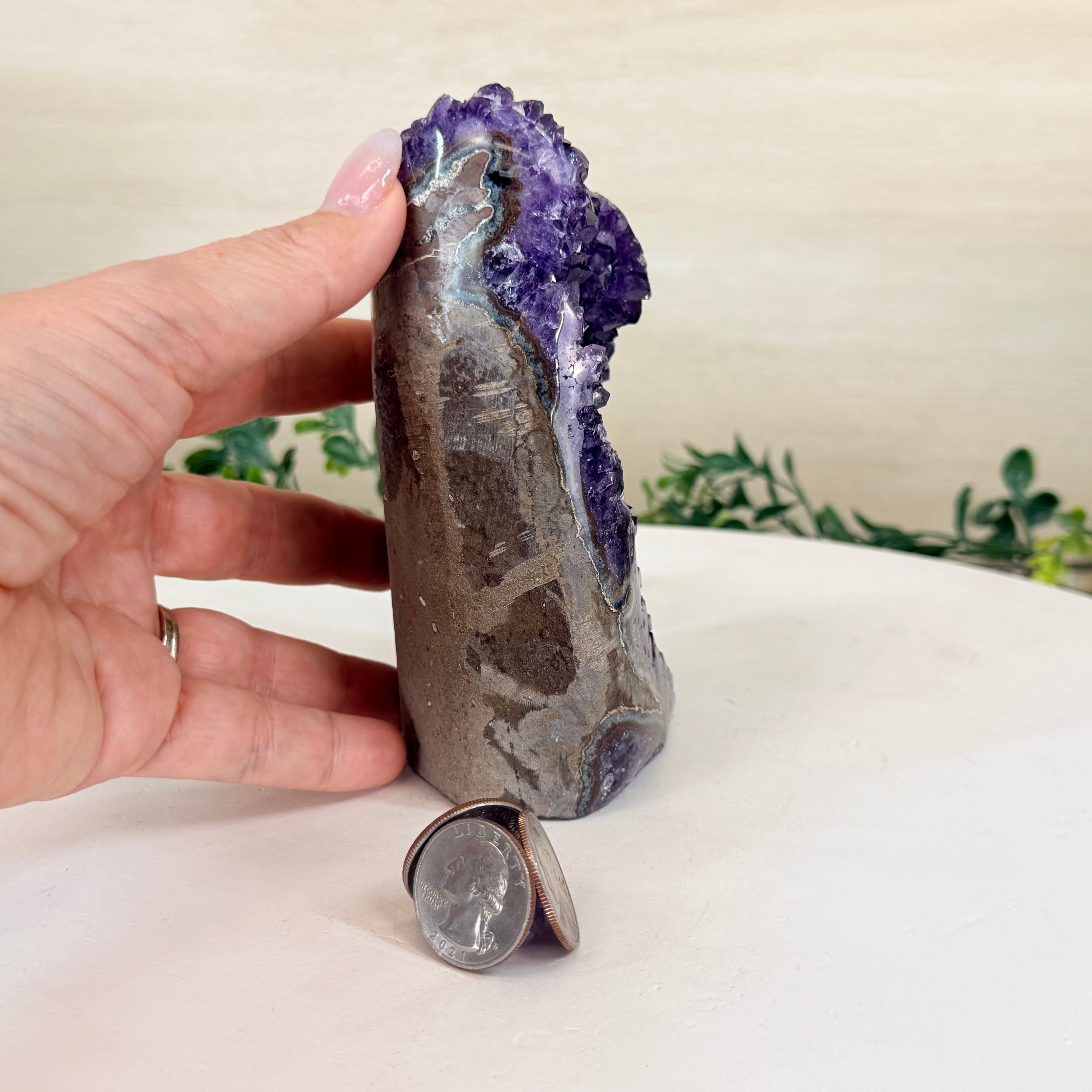 Small Extra Plus Quality Amethyst Cluster Flat Base, 5.6" Tall #5611-0896