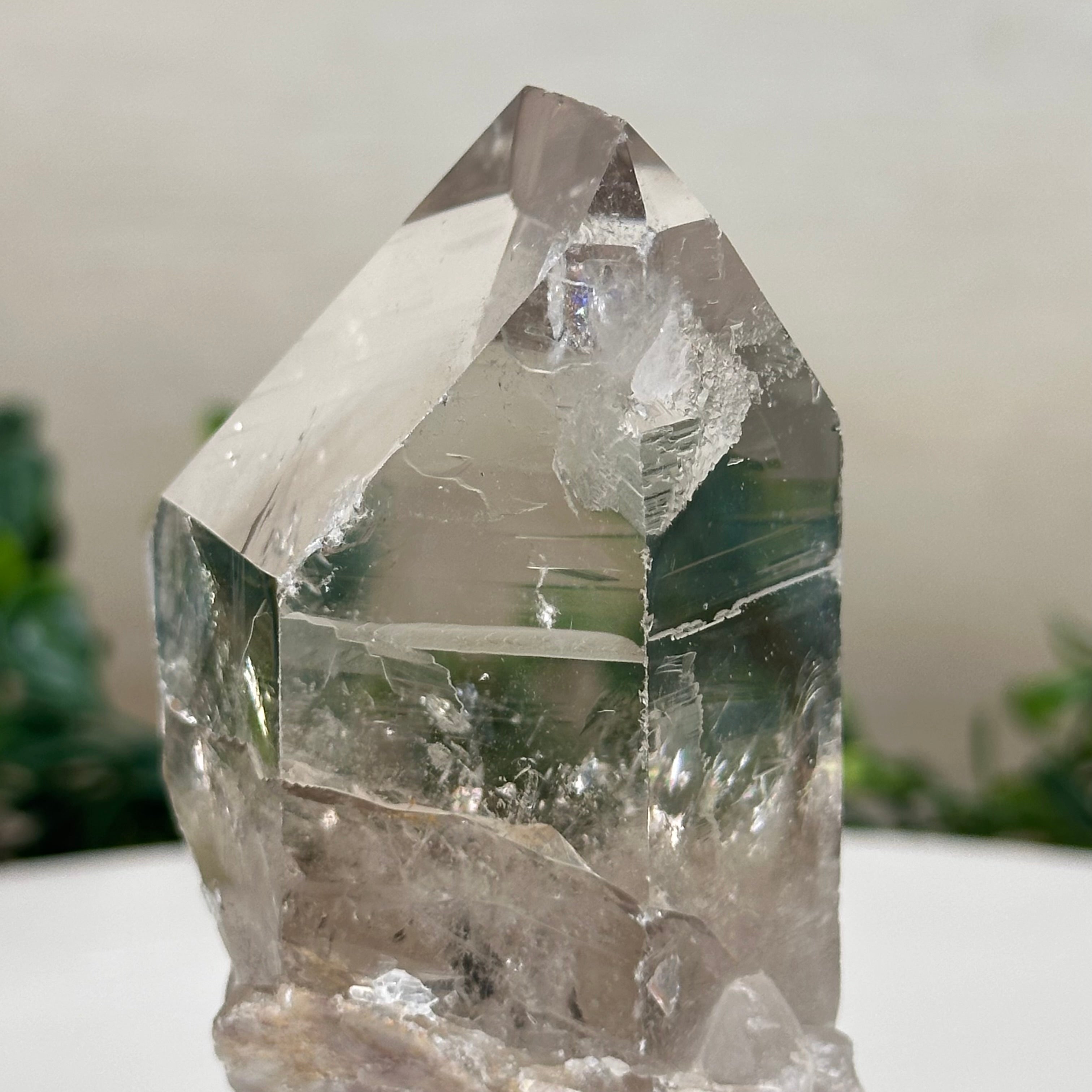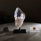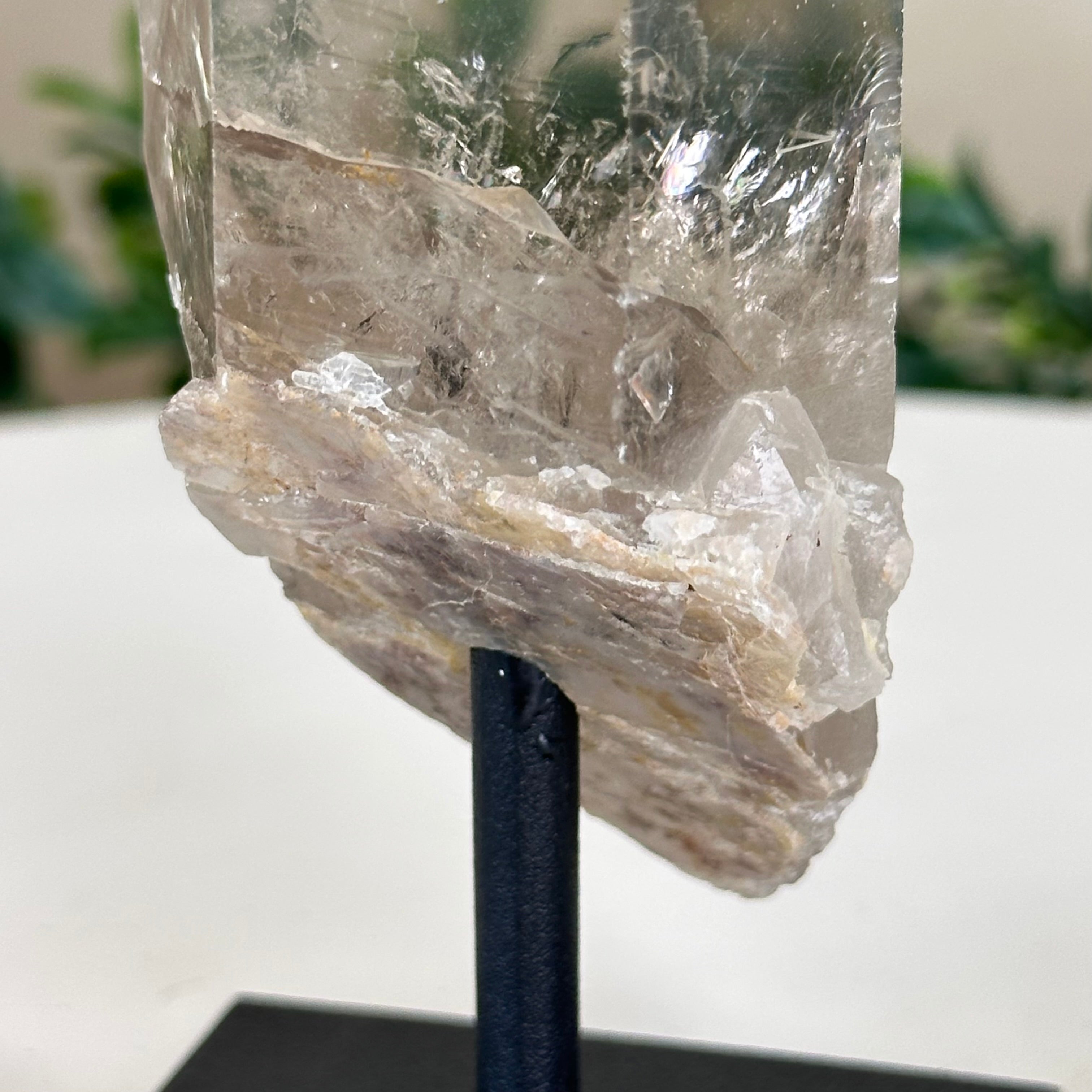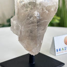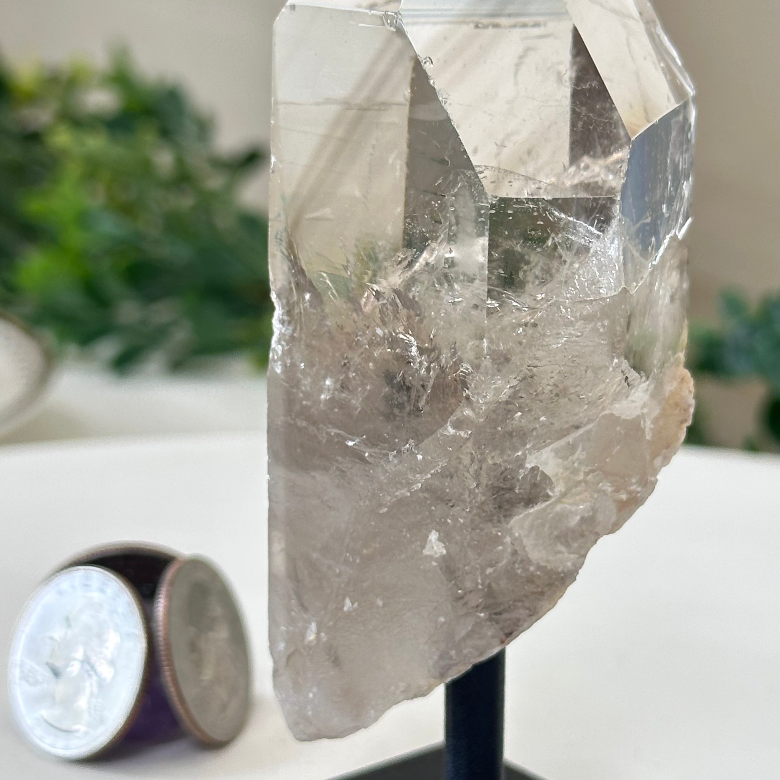 Enhance your home or sacred space with the multi-faceted beauty of this Smoky Quartz Crystal Point on a Metal Stand by Brazil Gems. Crafted from Brazilian Smoky Quartz, this all natural crystal has naturally smooth faces of a 6-sided point on the top, rough side edges, a warm hue and a translucent glow when lit from behind. Its calming presence is perfect for home décor, and its beauty and natural energy will enrich any environment.