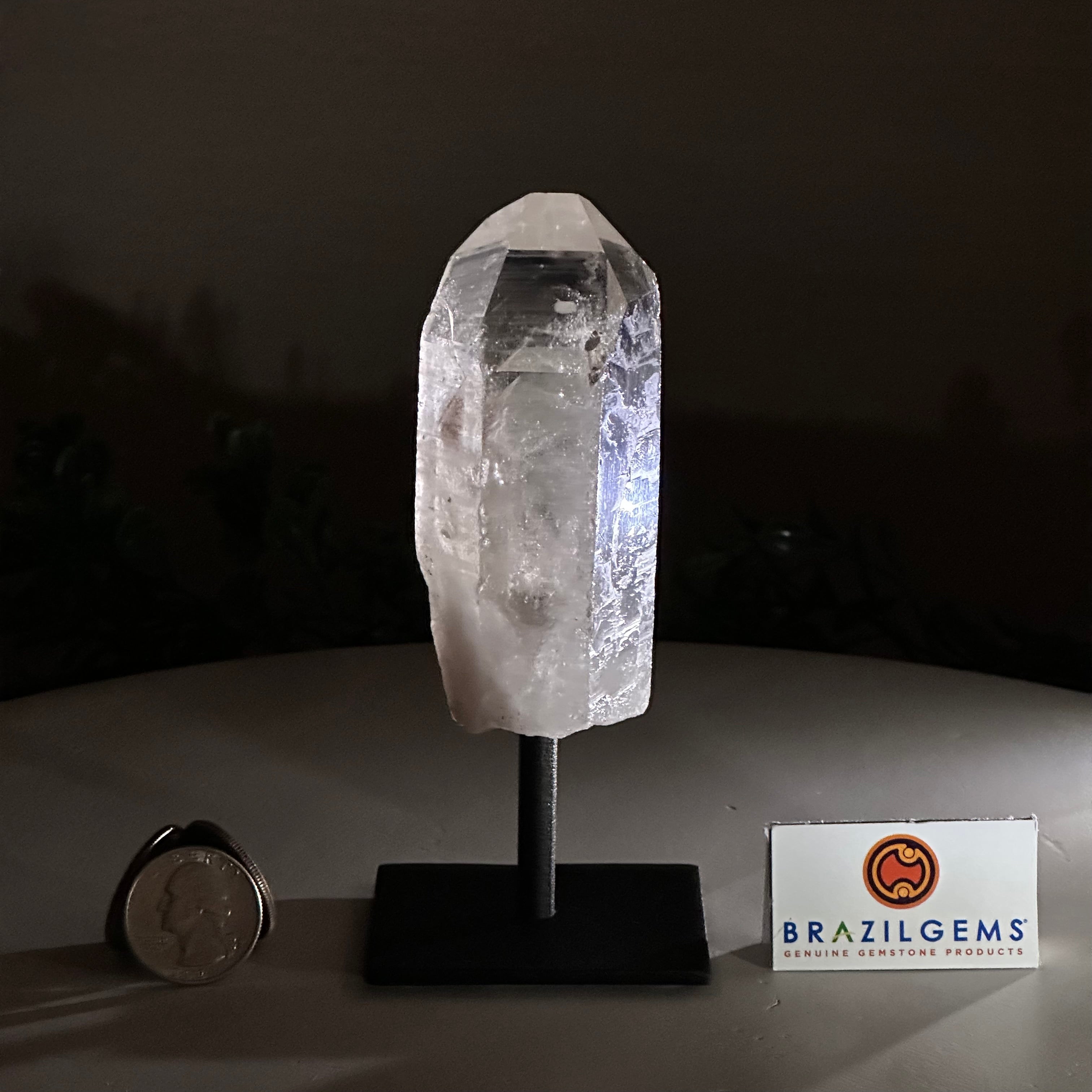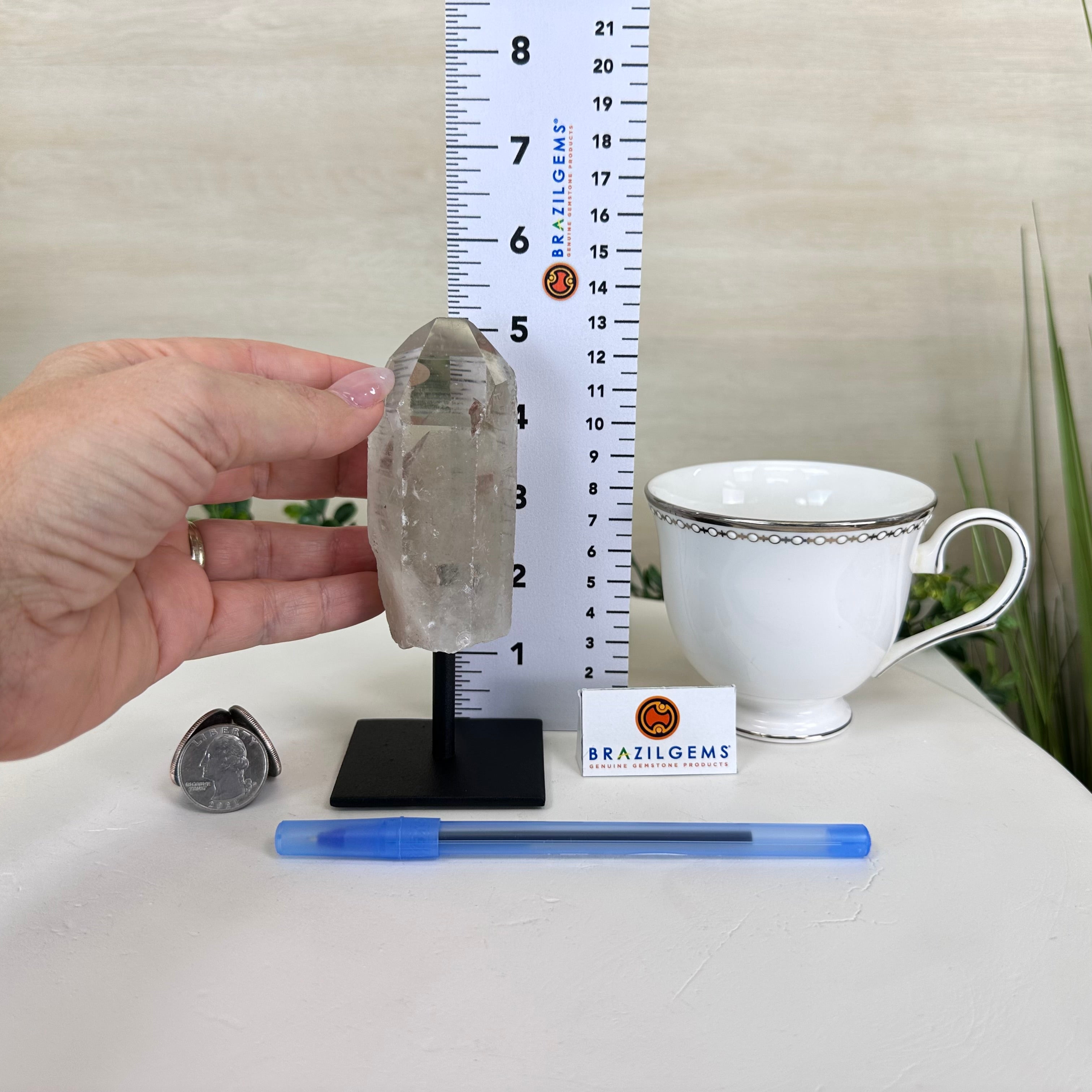 Disclaimer: This is a natural gemstone crystal sold by Brazil Gems® as is and as you see it in its images and video. It is the exact one you will receive. It may contain natural imperfections, scratches, repairs, and/or broken edges from the extraction, polishing, mounting, and prepping processes. A small hole was drilled into the bottom of the crystal in order to mount it on its black painted metal stand. At Brazil Gems® we make every effort to get measurements as exact as possible but they are done by human hands and eyes and therefore may have minor discrepancies.