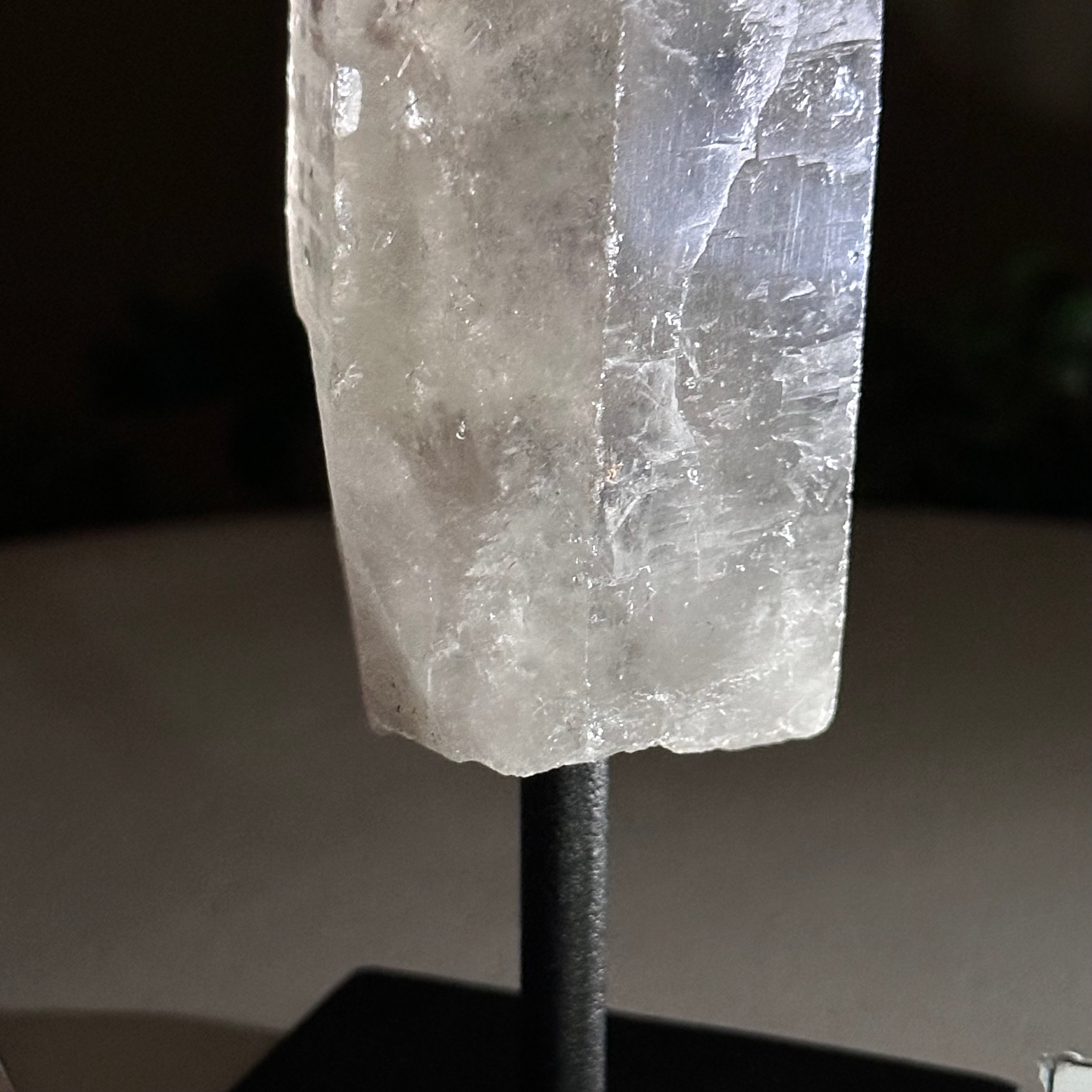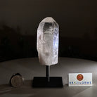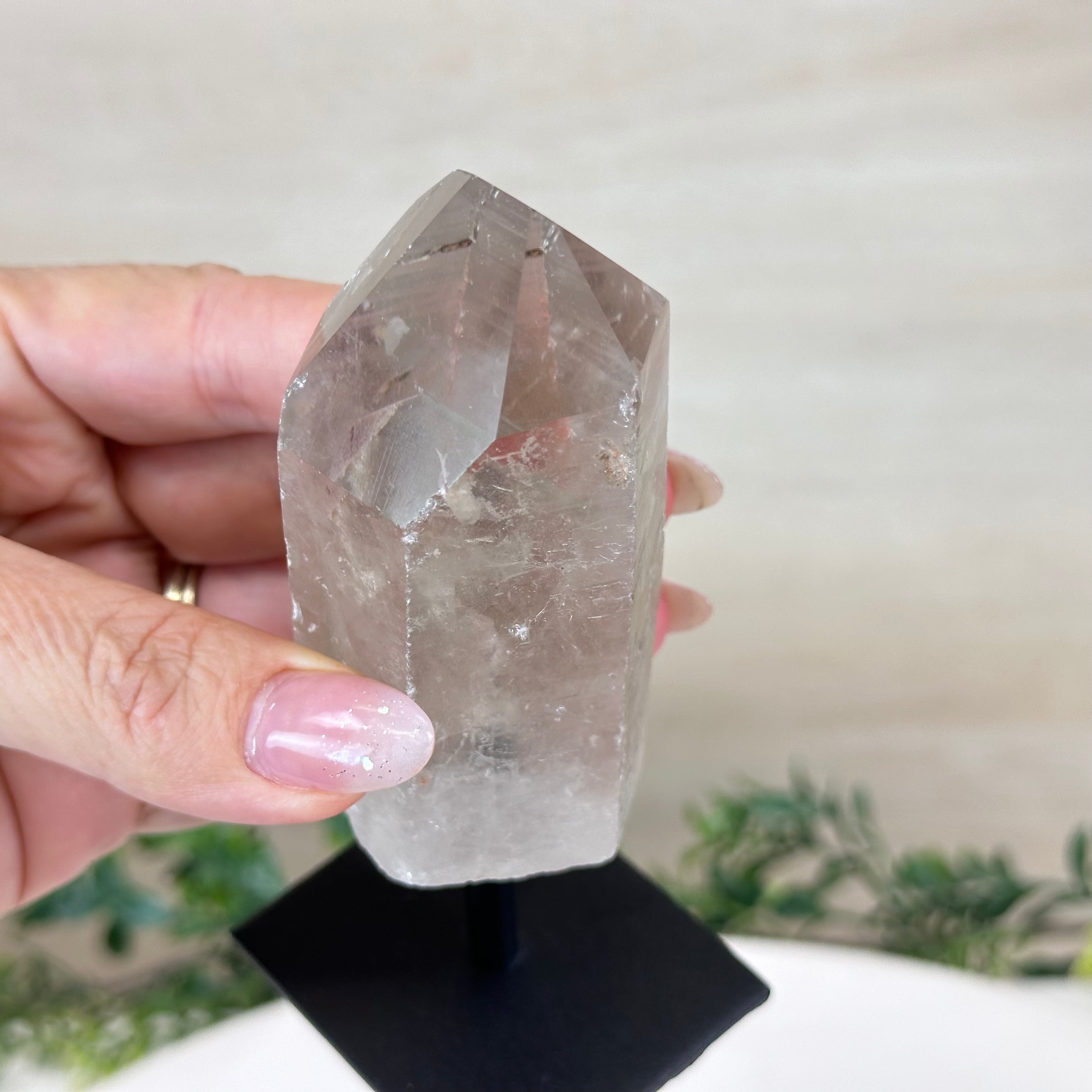 Enhance your home or sacred space with the multi-faceted beauty of this Smoky Quartz Crystal Point on a Metal Stand by Brazil Gems. Crafted from Brazilian Smoky Quartz, this all natural crystal has naturally smooth faces of a 6-sided point on the top, rough side edges, a warm hue and a translucent glow when lit from behind. Its calming presence is perfect for home décor, and its beauty and natural energy will enrich any environment.