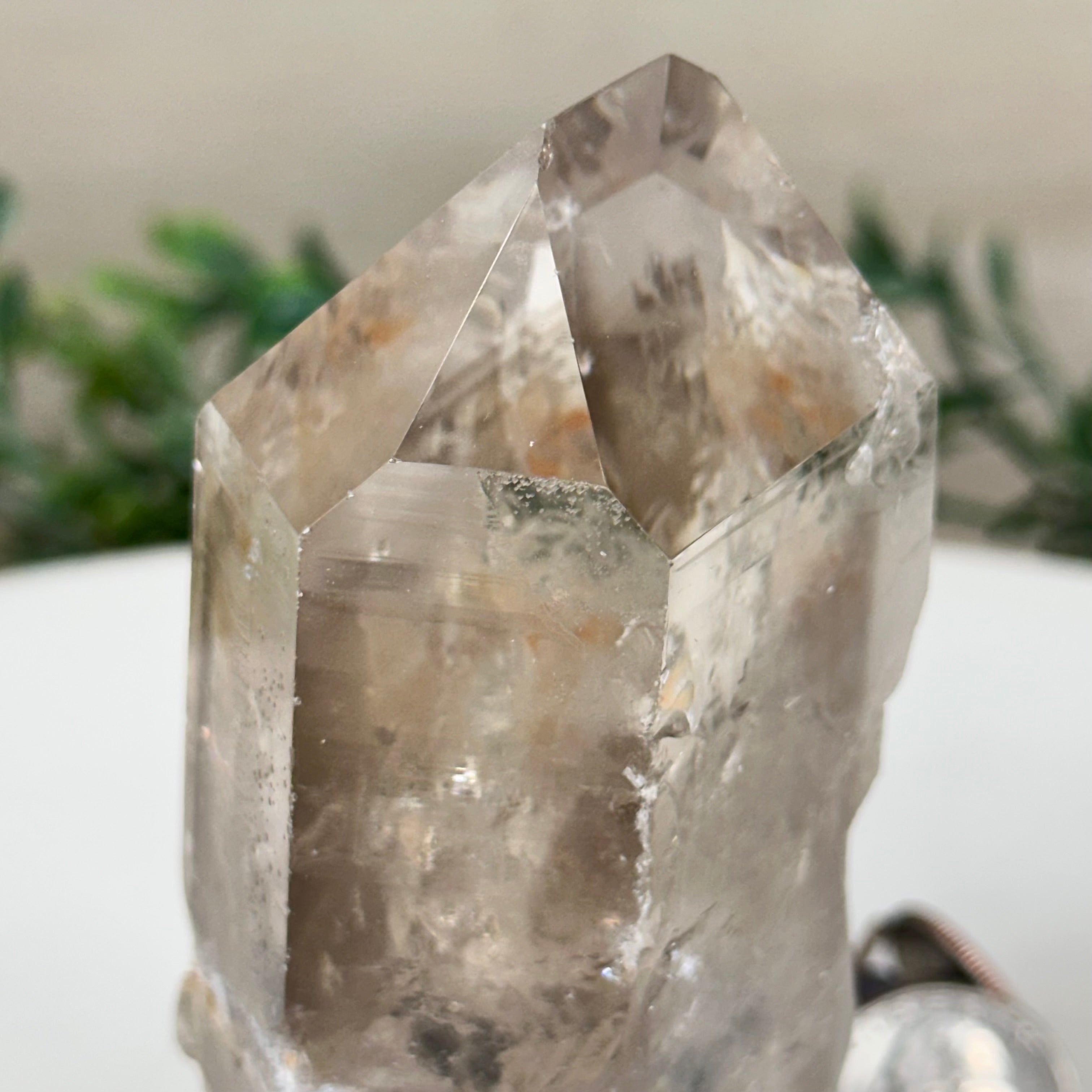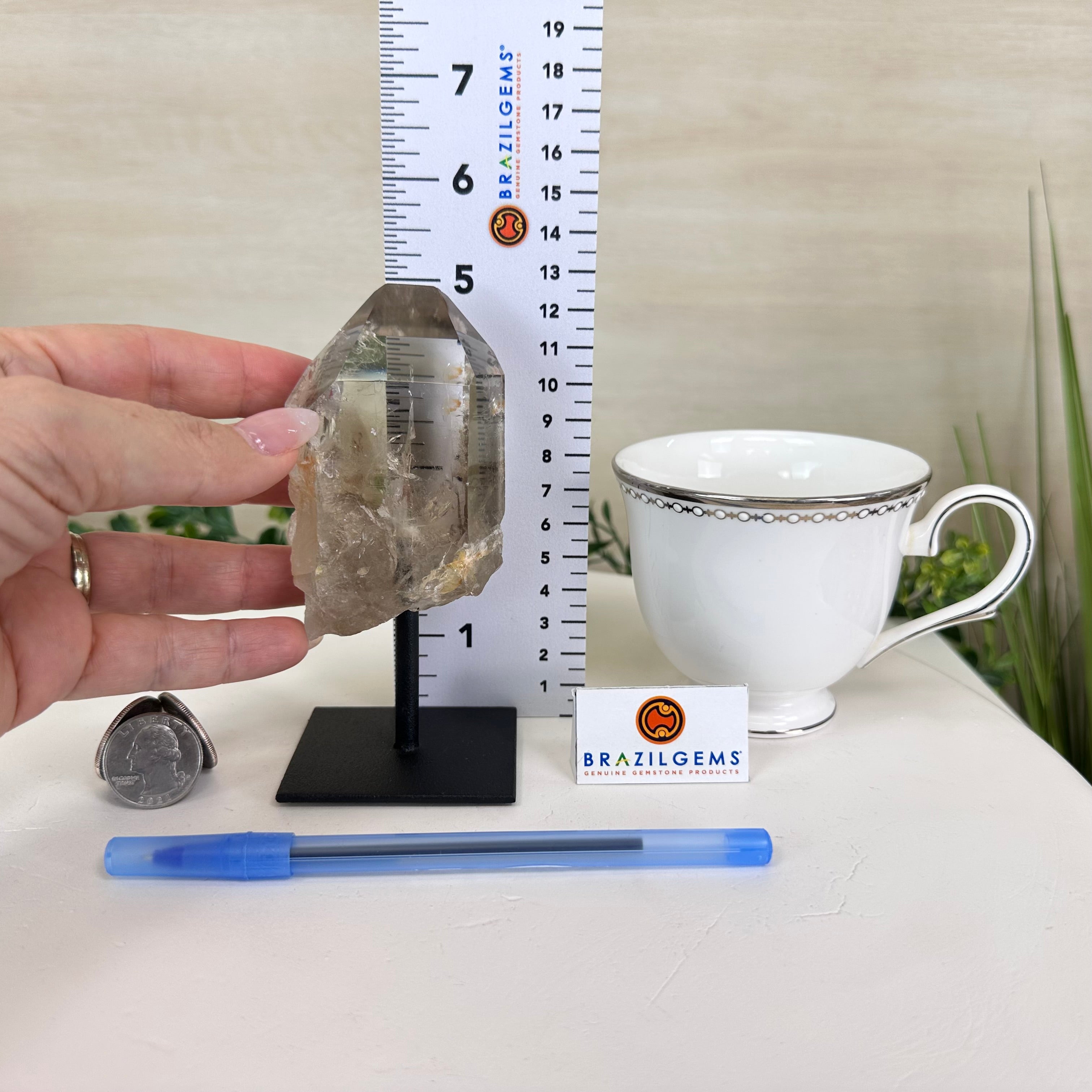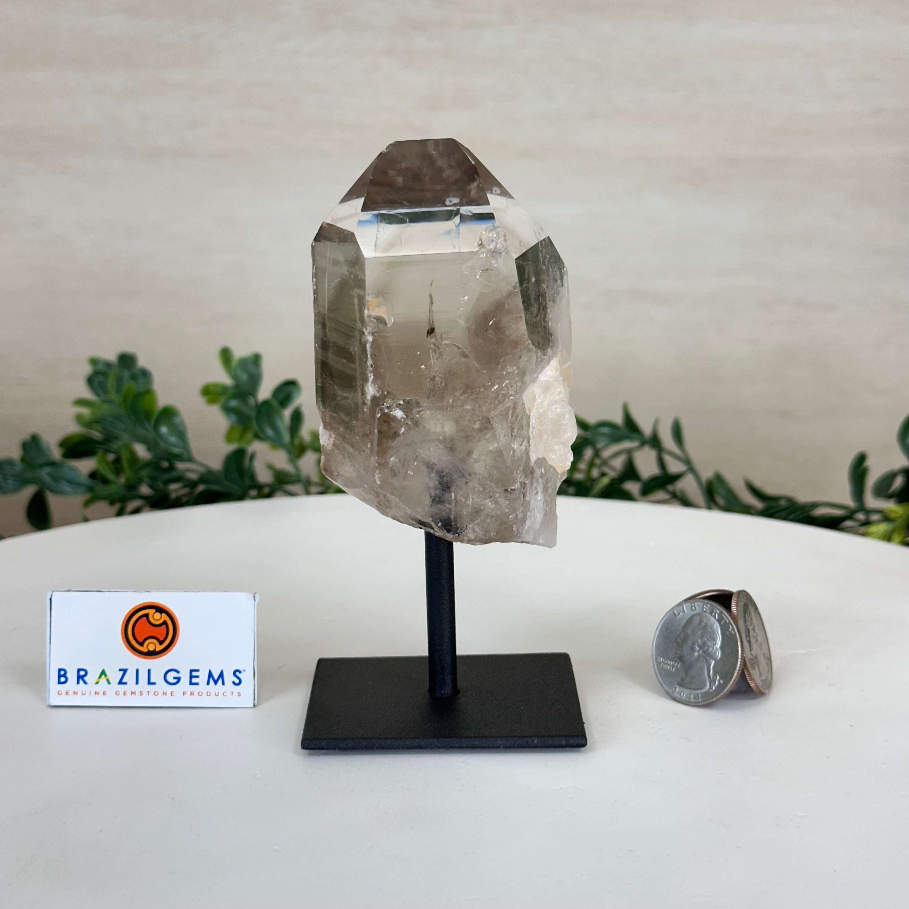 Smoky Quartz Crystal Point on a Metal Stand, 5" Tall #3122SQ-019
