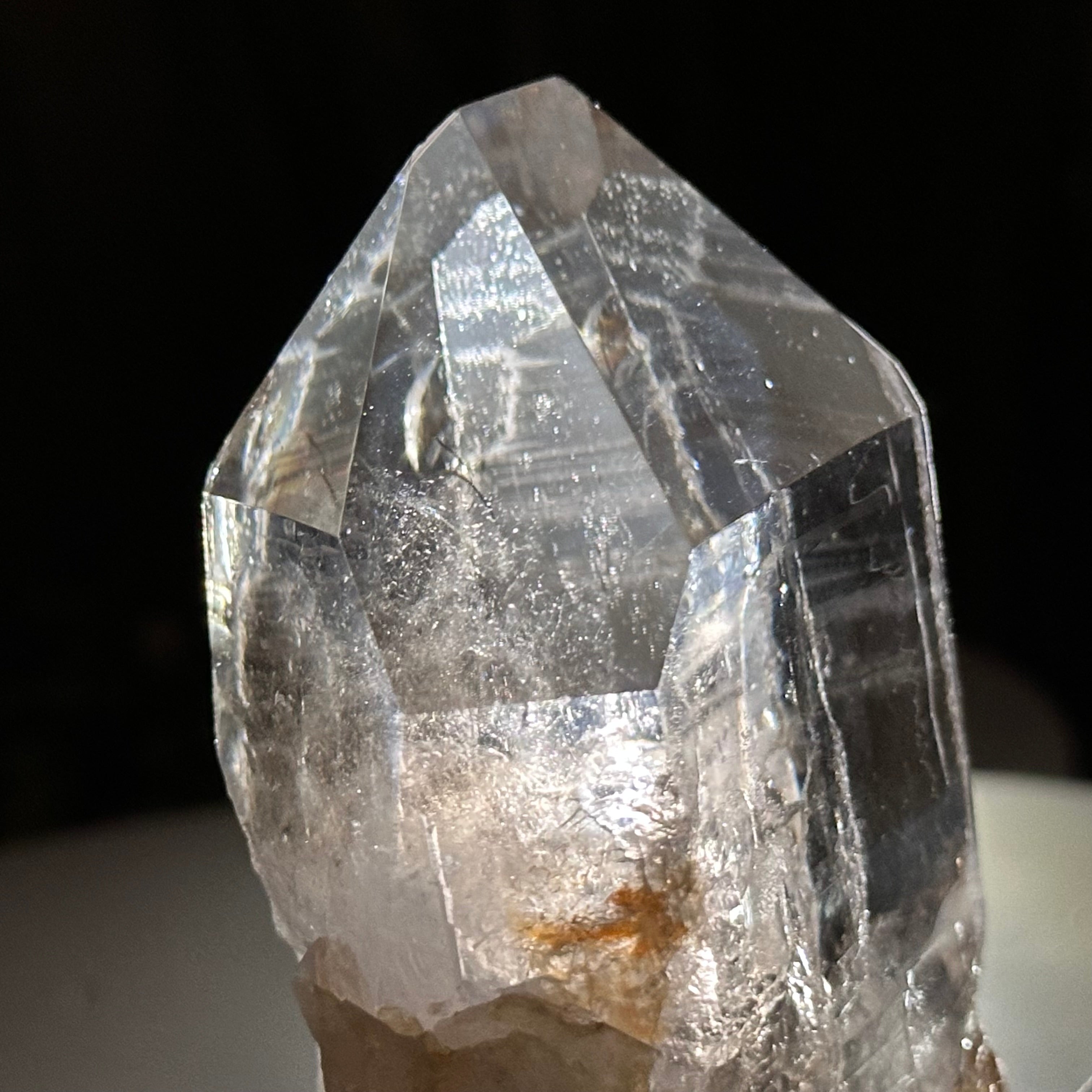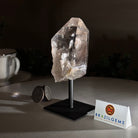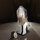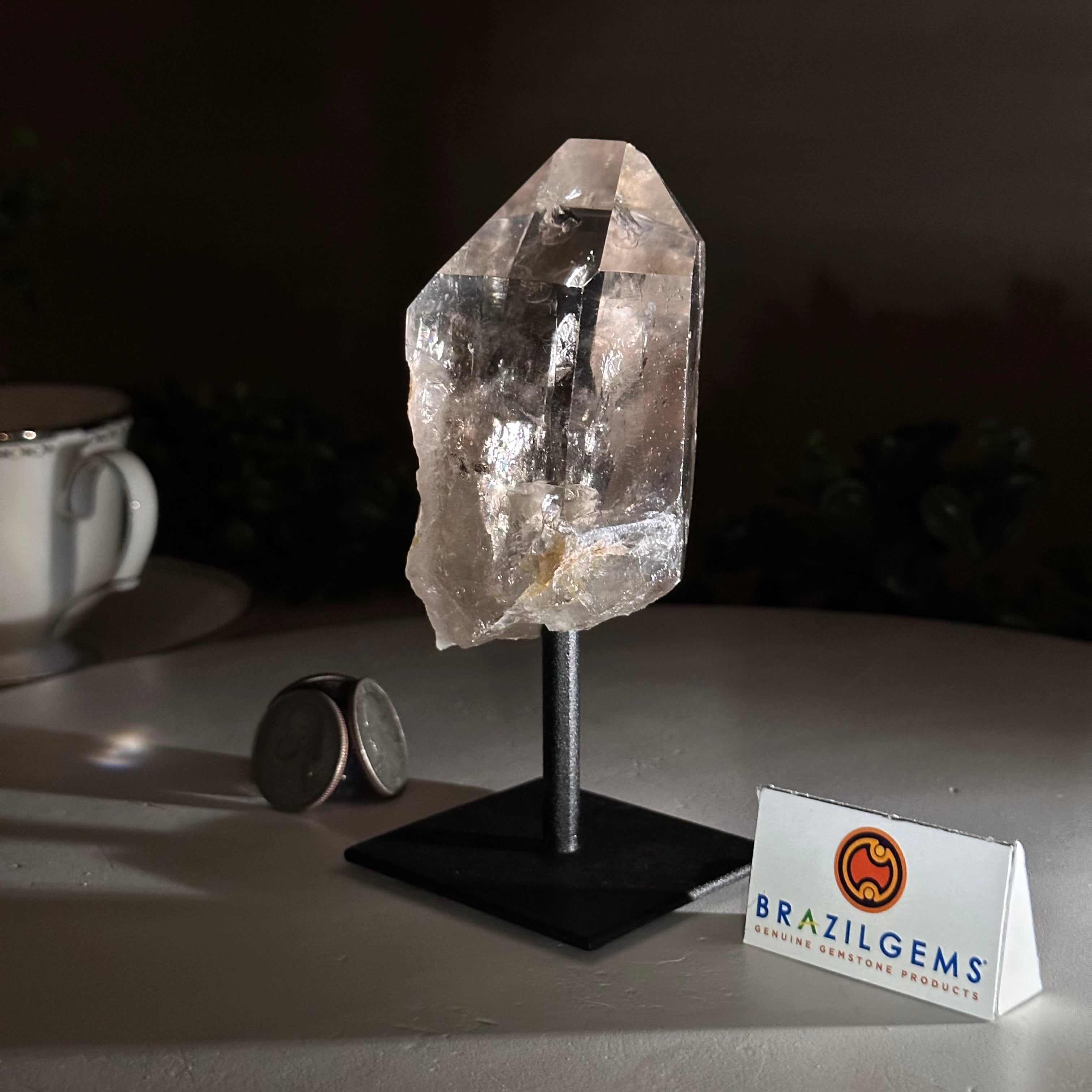 Enhance your home or sacred space with the multi-faceted beauty of this Smoky Quartz Crystal Point on a Metal Stand by Brazil Gems. Crafted from Brazilian Smoky Quartz, this all natural crystal has naturally smooth faces of a 6-sided point on the top, rough side edges, a warm hue and a translucent glow when lit from behind. Its calming presence is perfect for home décor, and its beauty and natural energy will enrich any environment.