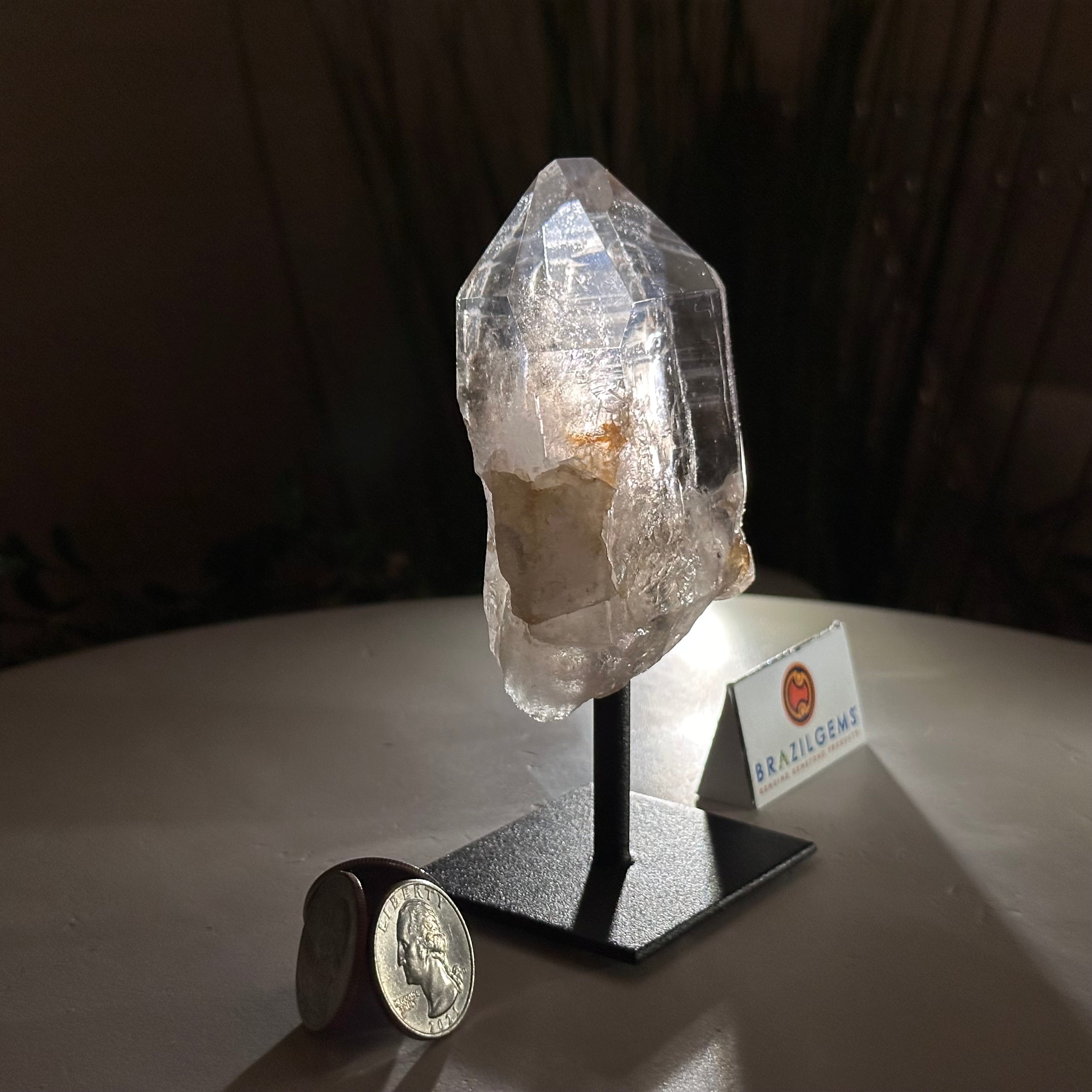 Disclaimer: This is a natural gemstone crystal sold by Brazil Gems® as is and as you see it in its images and video. It is the exact one you will receive. It may contain natural imperfections, scratches, repairs, and/or broken edges from the extraction, polishing, mounting, and prepping processes. A small hole was drilled into the bottom of the crystal in order to mount it on its black painted metal stand. At Brazil Gems® we make every effort to get measurements as exact as possible but they are done by human hands and eyes and therefore may have minor discrepancies.