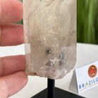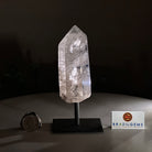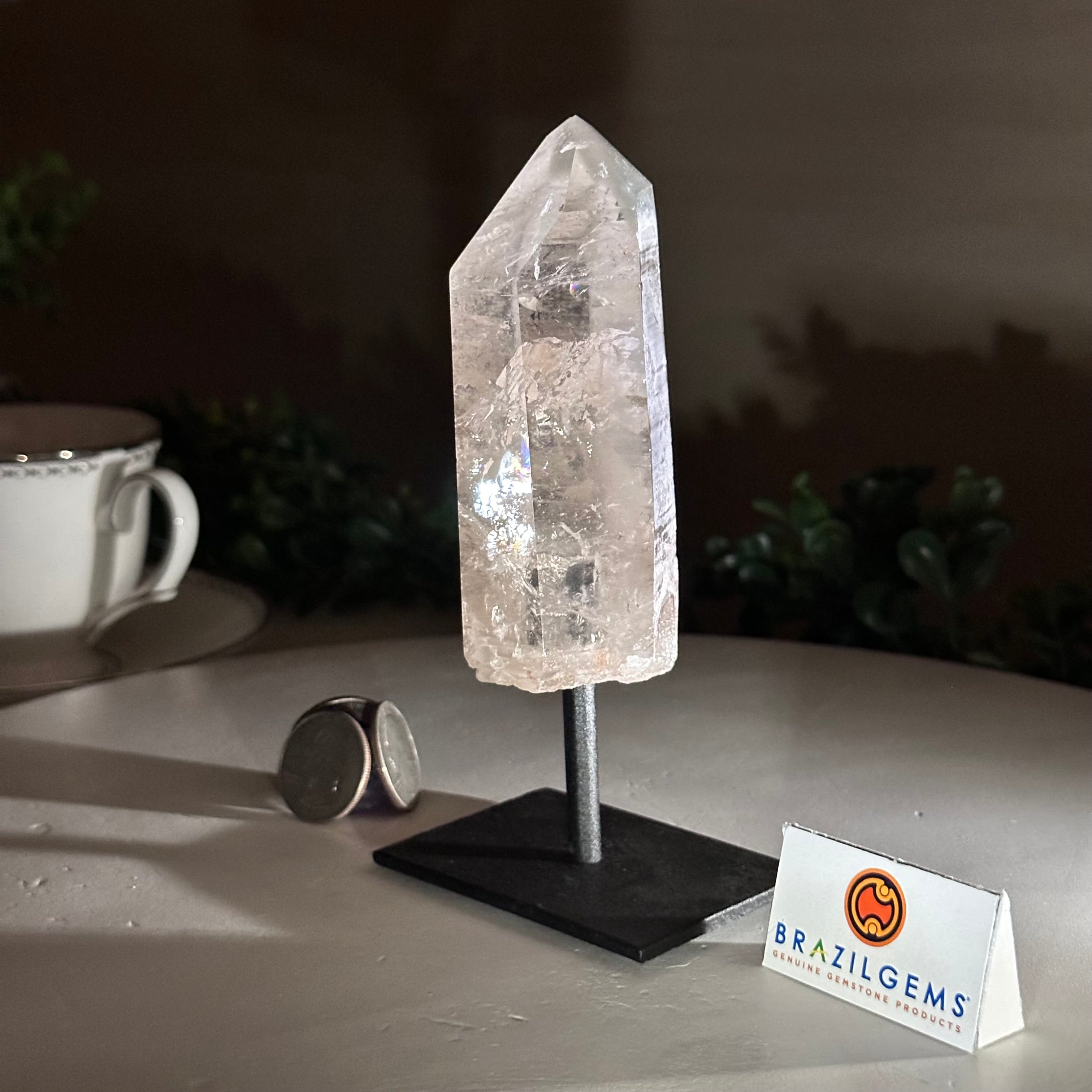 Disclaimer: This is a natural gemstone crystal sold by Brazil Gems® as is and as you see it in its images and video. It is the exact one you will receive. It may contain natural imperfections, scratches, repairs, and/or broken edges from the extraction, polishing, mounting, and prepping processes. A small hole was drilled into the bottom of the crystal in order to mount it on its black painted metal stand. At Brazil Gems® we make every effort to get measurements as exact as possible but they are done by human hands and eyes and therefore may have minor discrepancies.
