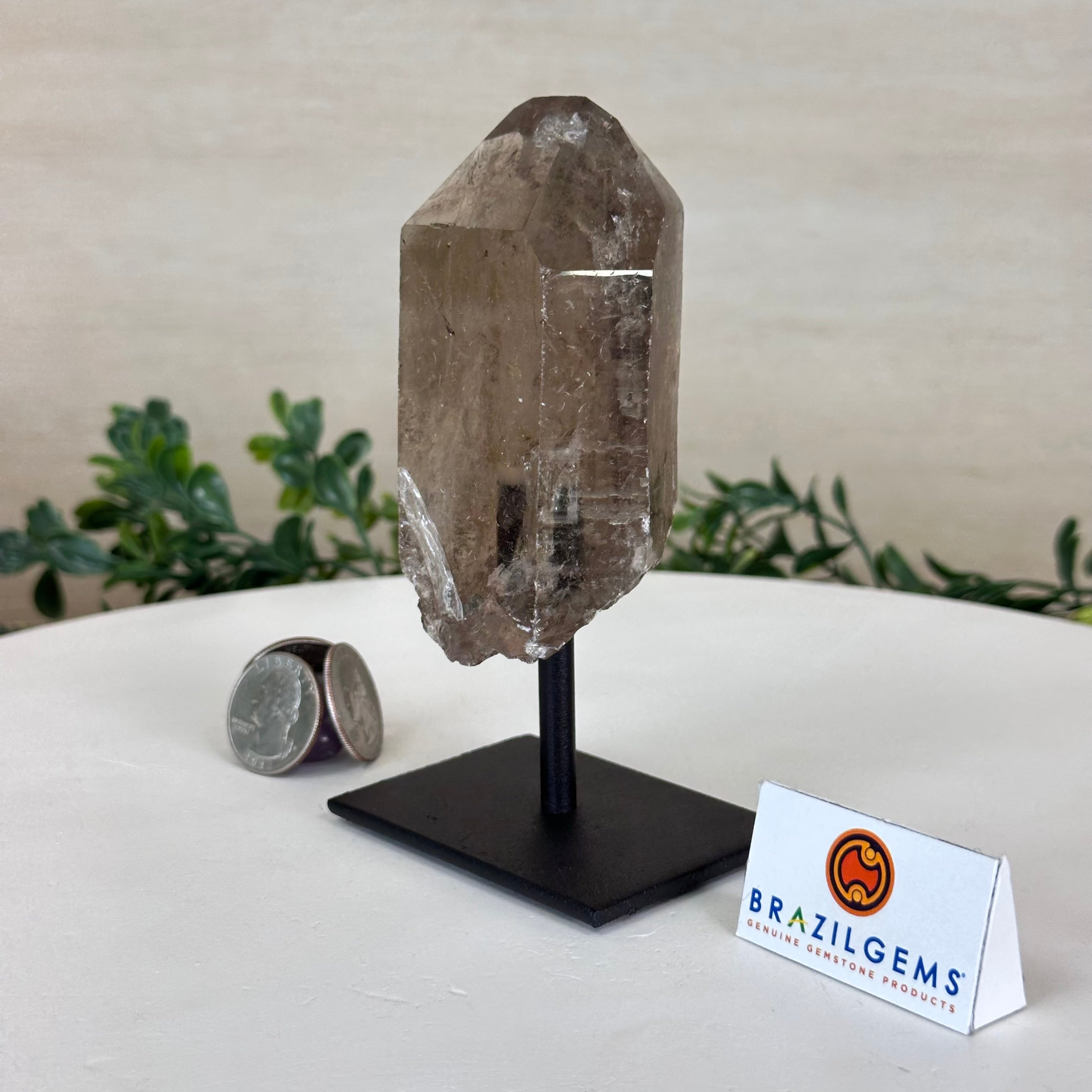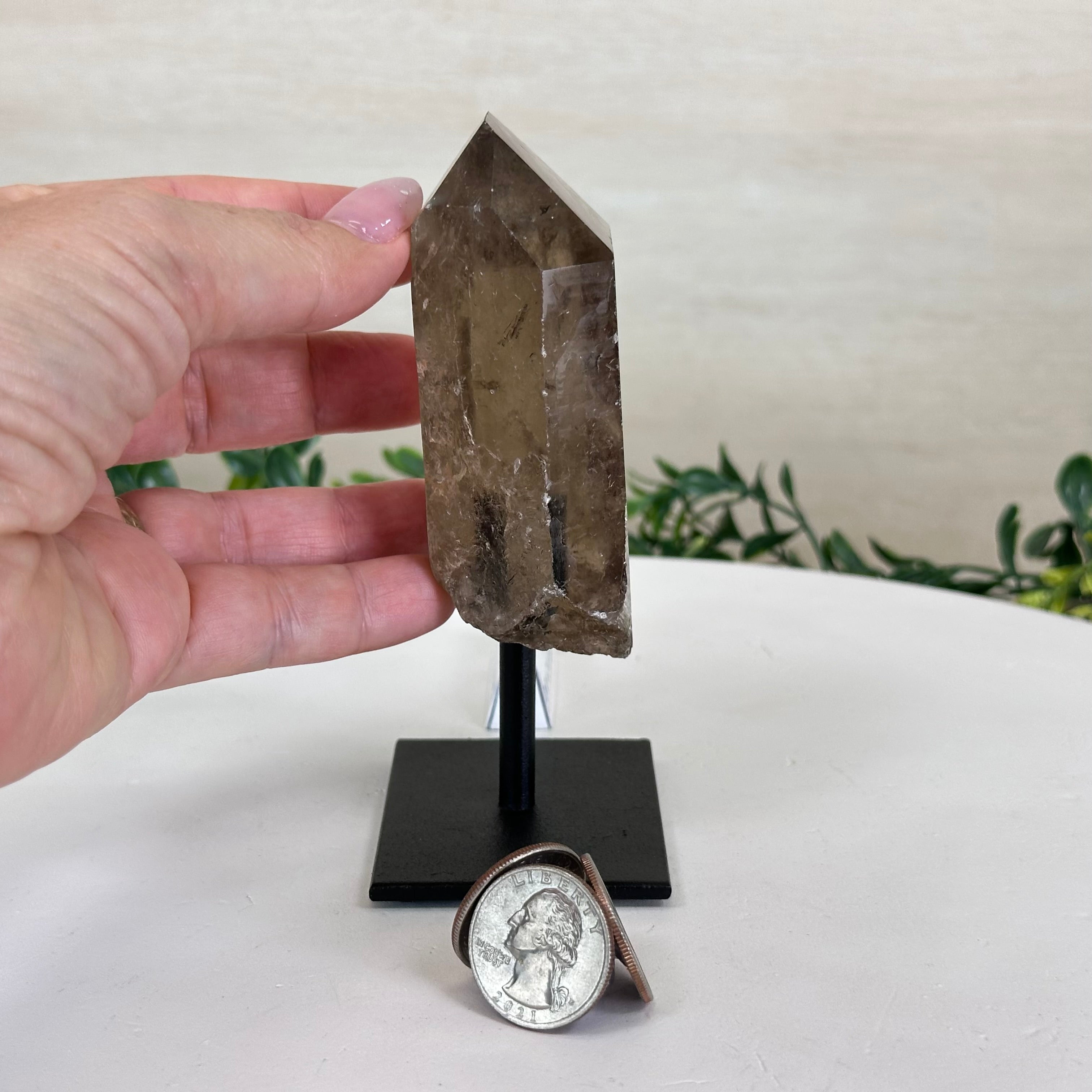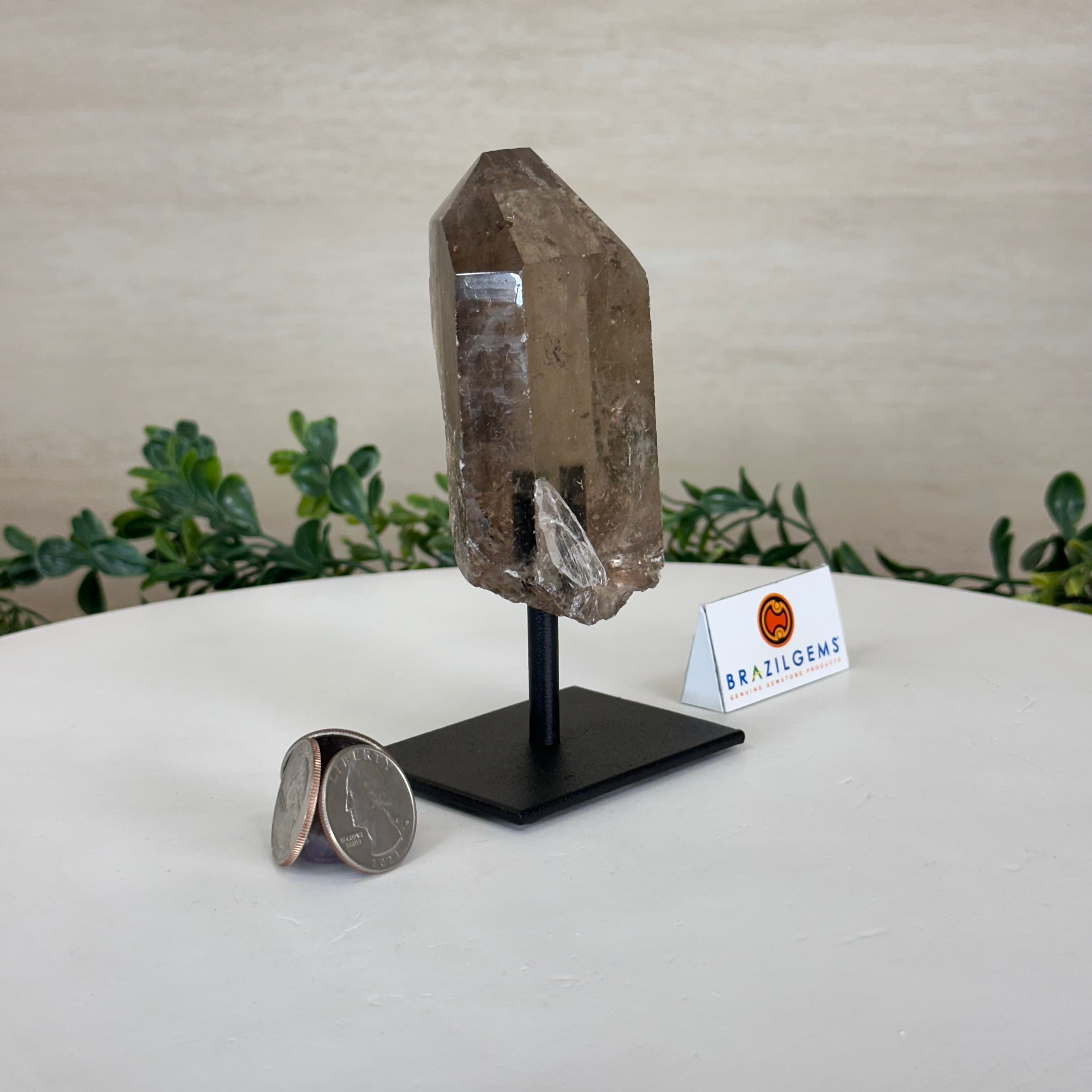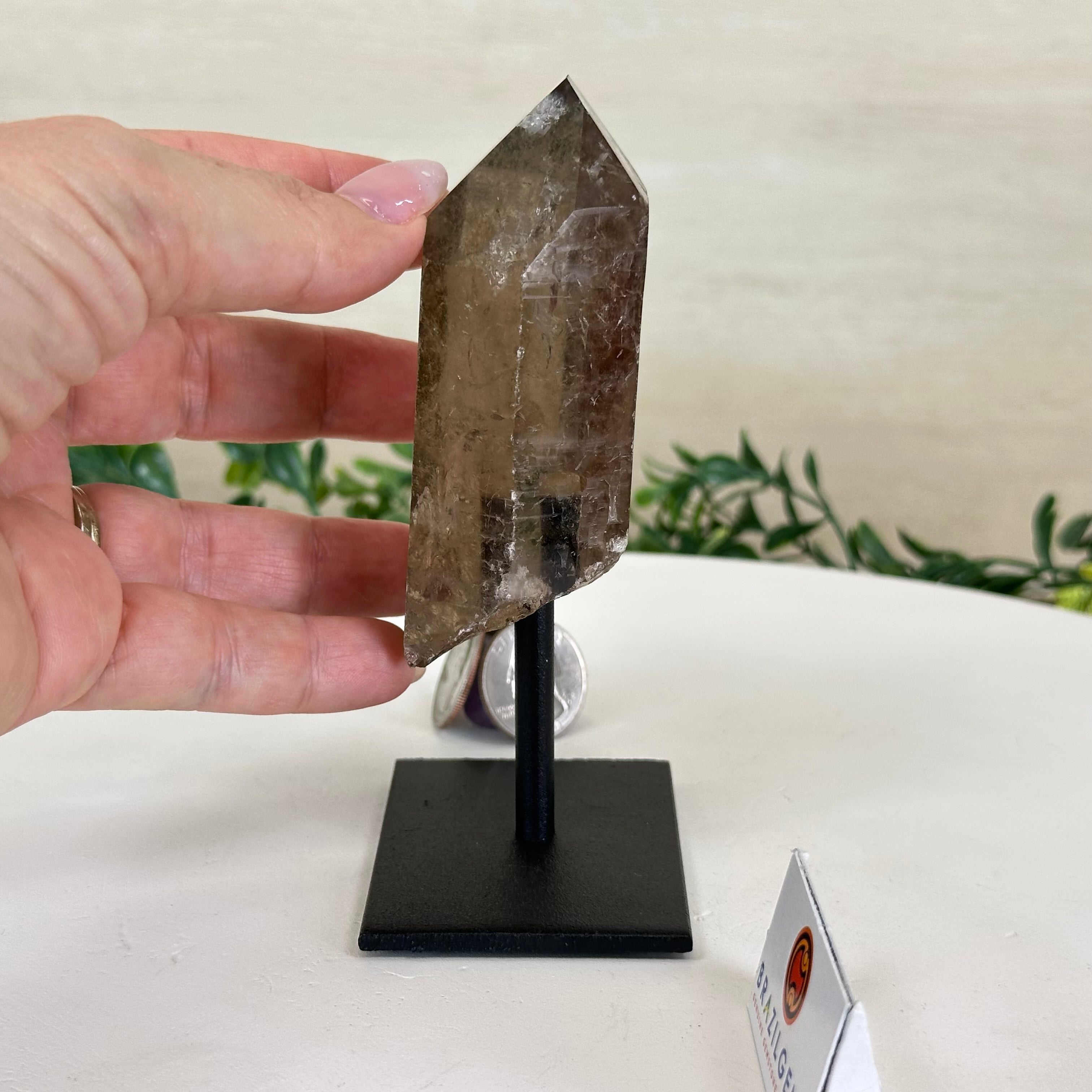 Smoky Quartz Crystal Point on a Metal Stand, 5.2" Tall #3122SQ-021