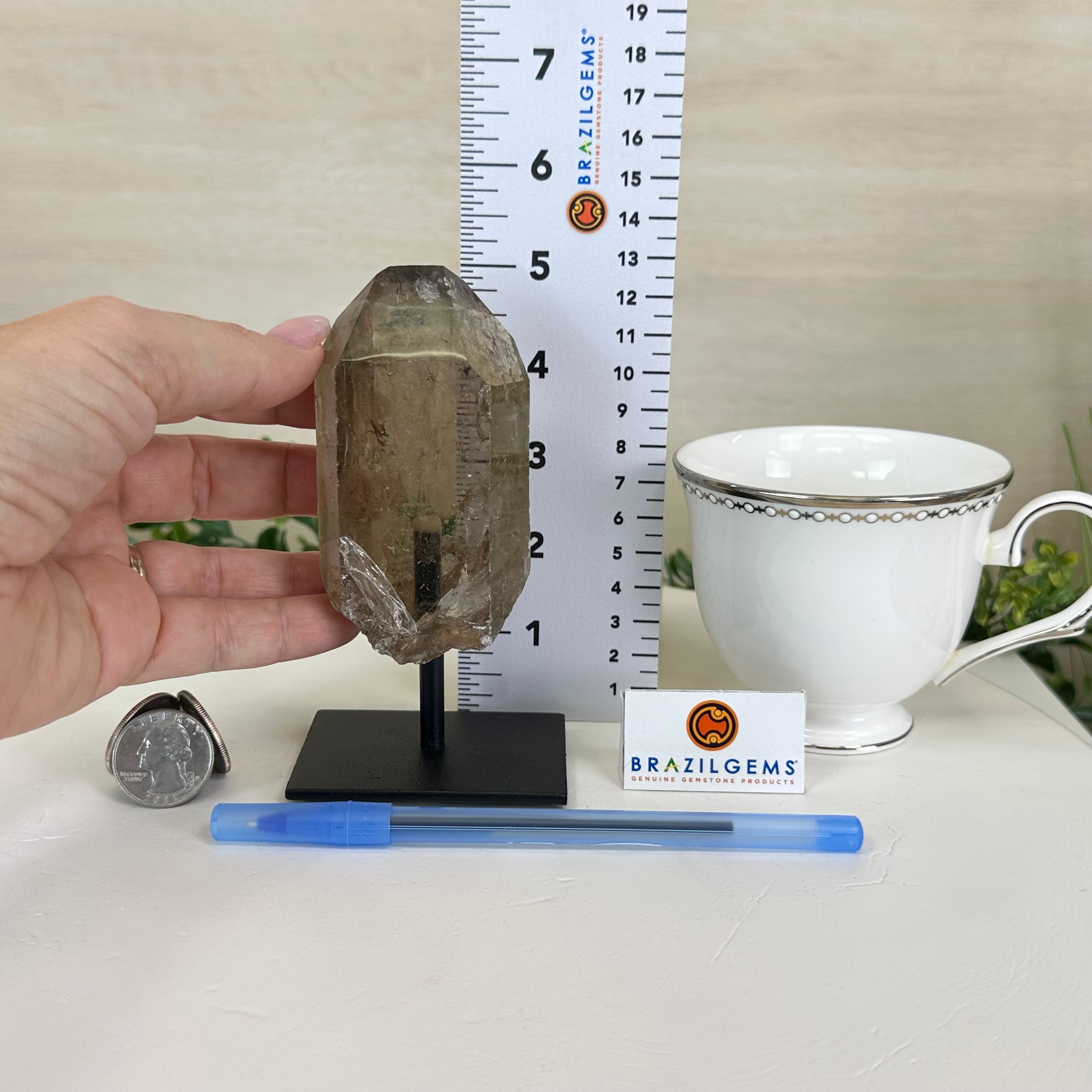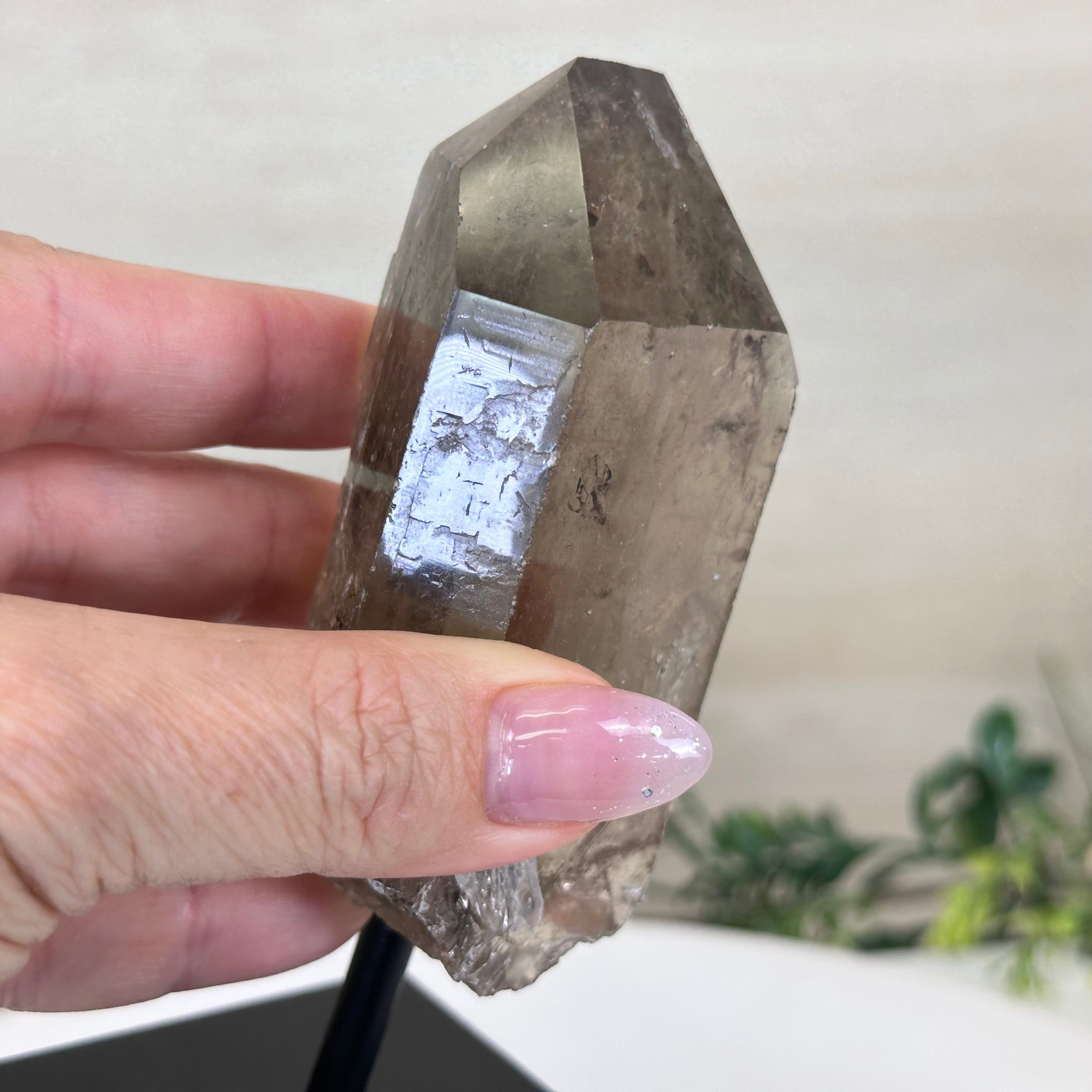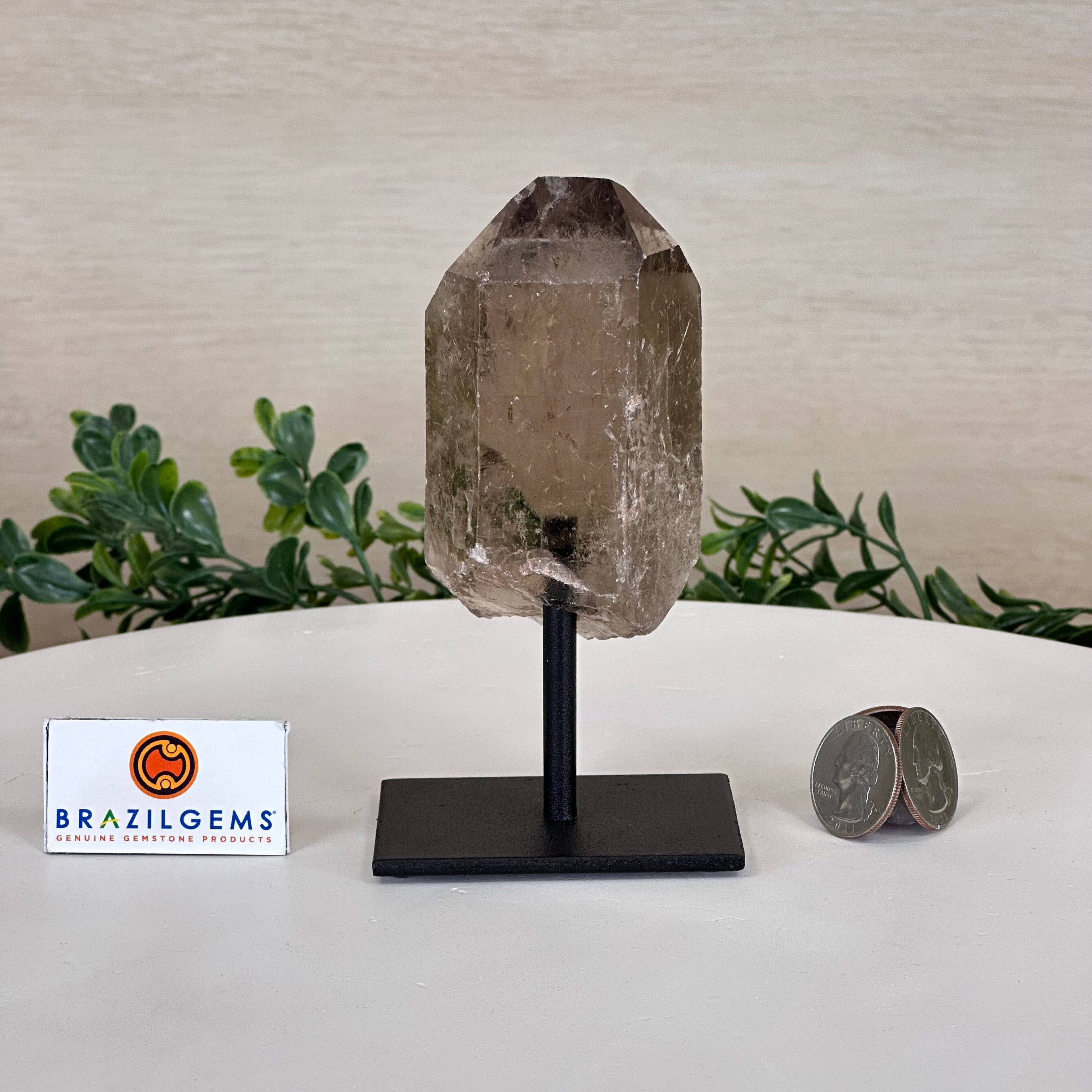 Smoky Quartz Crystal Point on a Metal Stand, 5.2" Tall #3122SQ-021