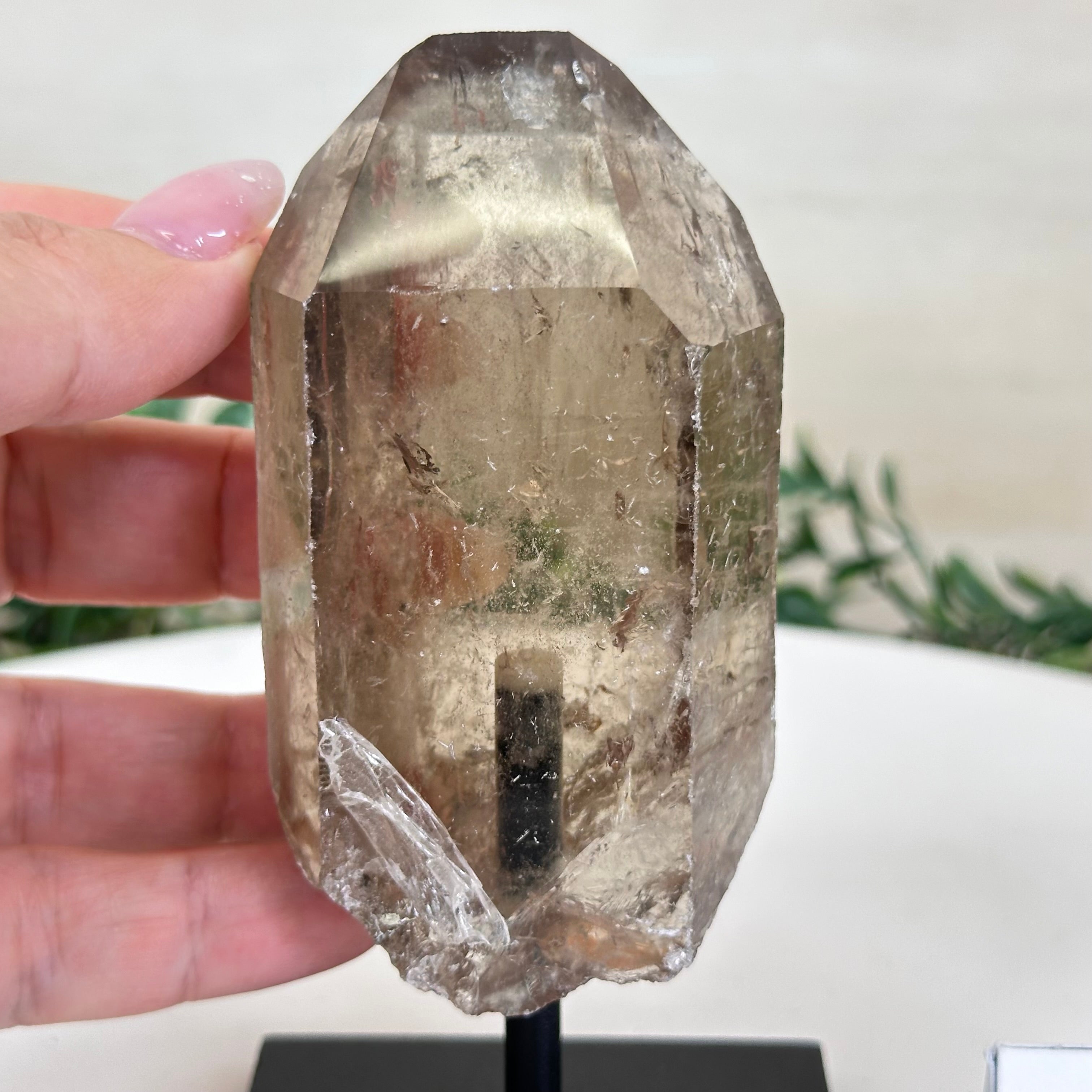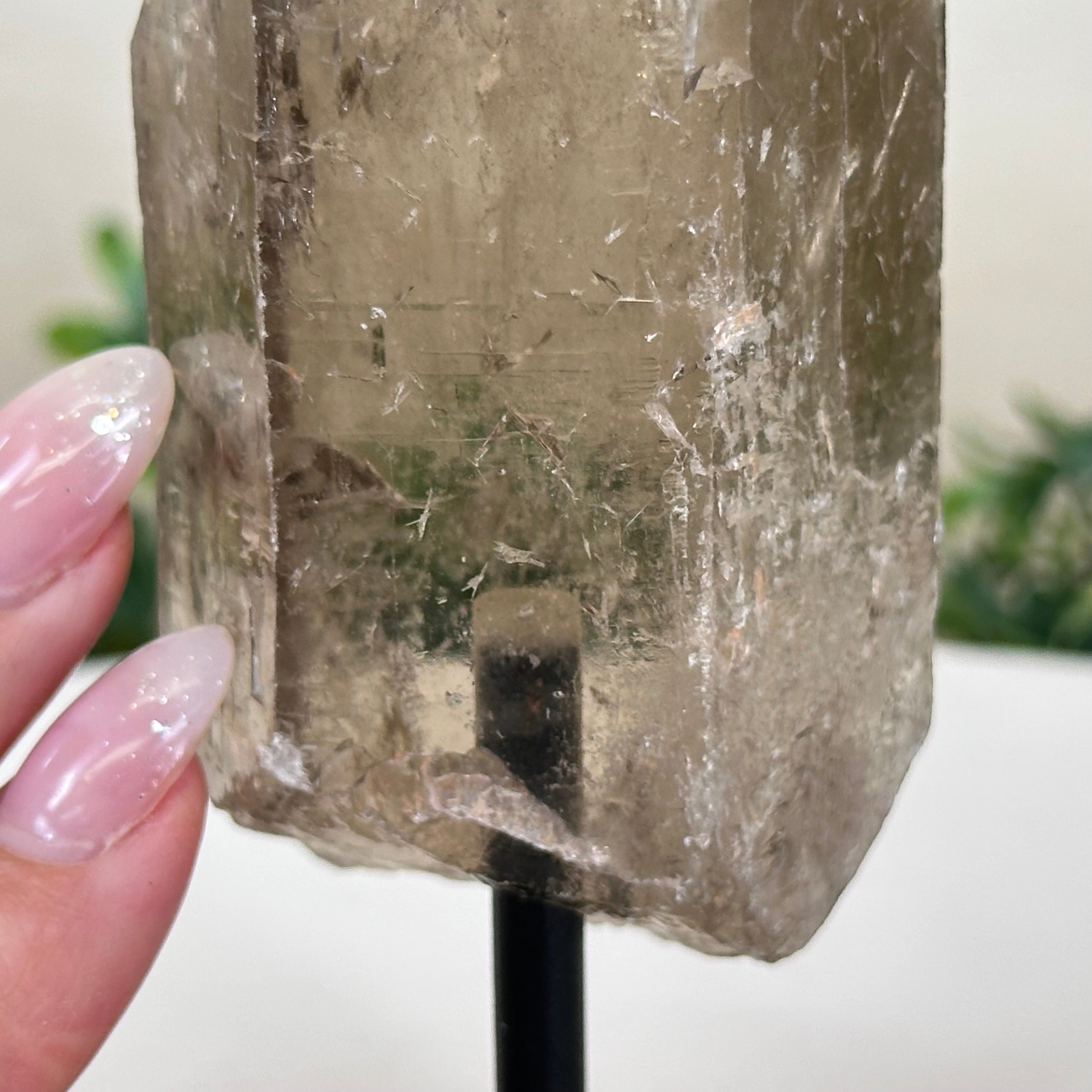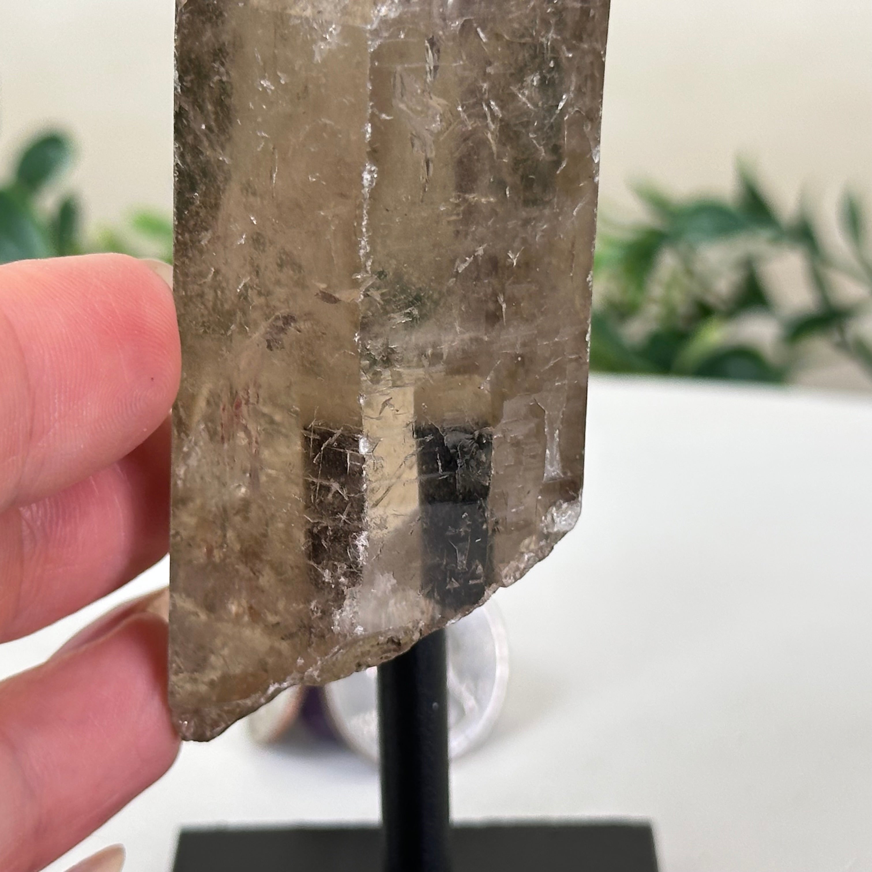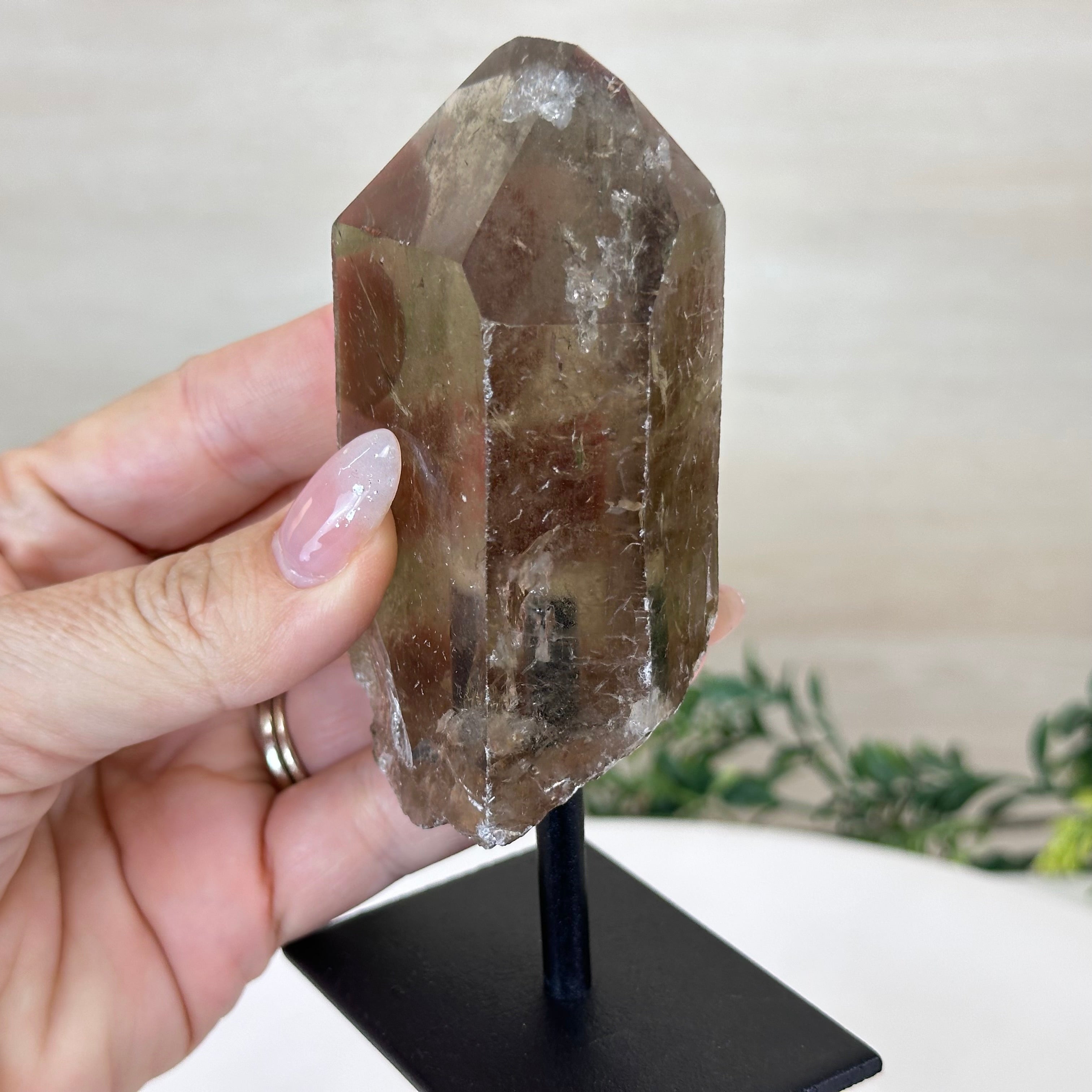 Smoky Quartz Crystal Point on a Metal Stand, 5.2" Tall #3122SQ-021