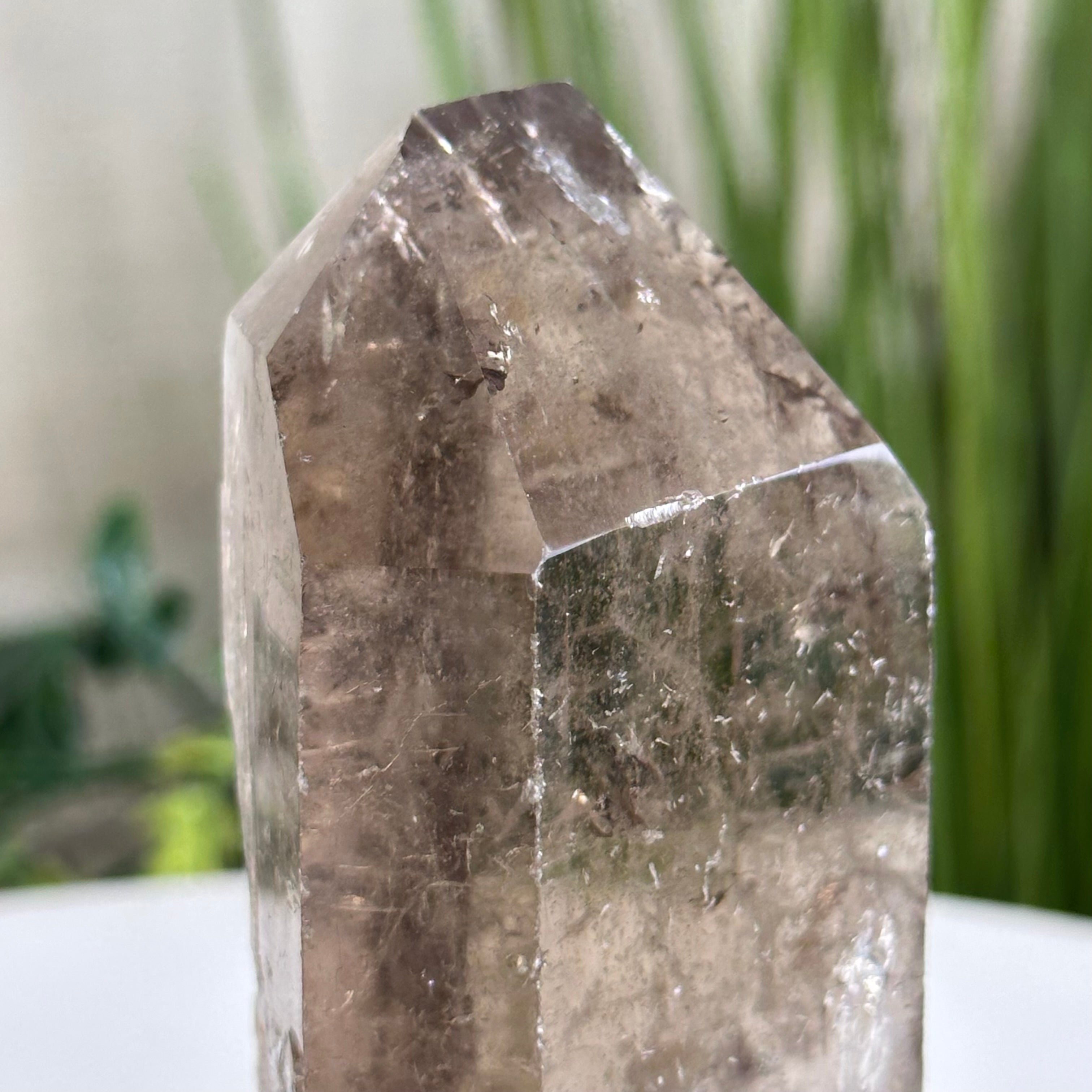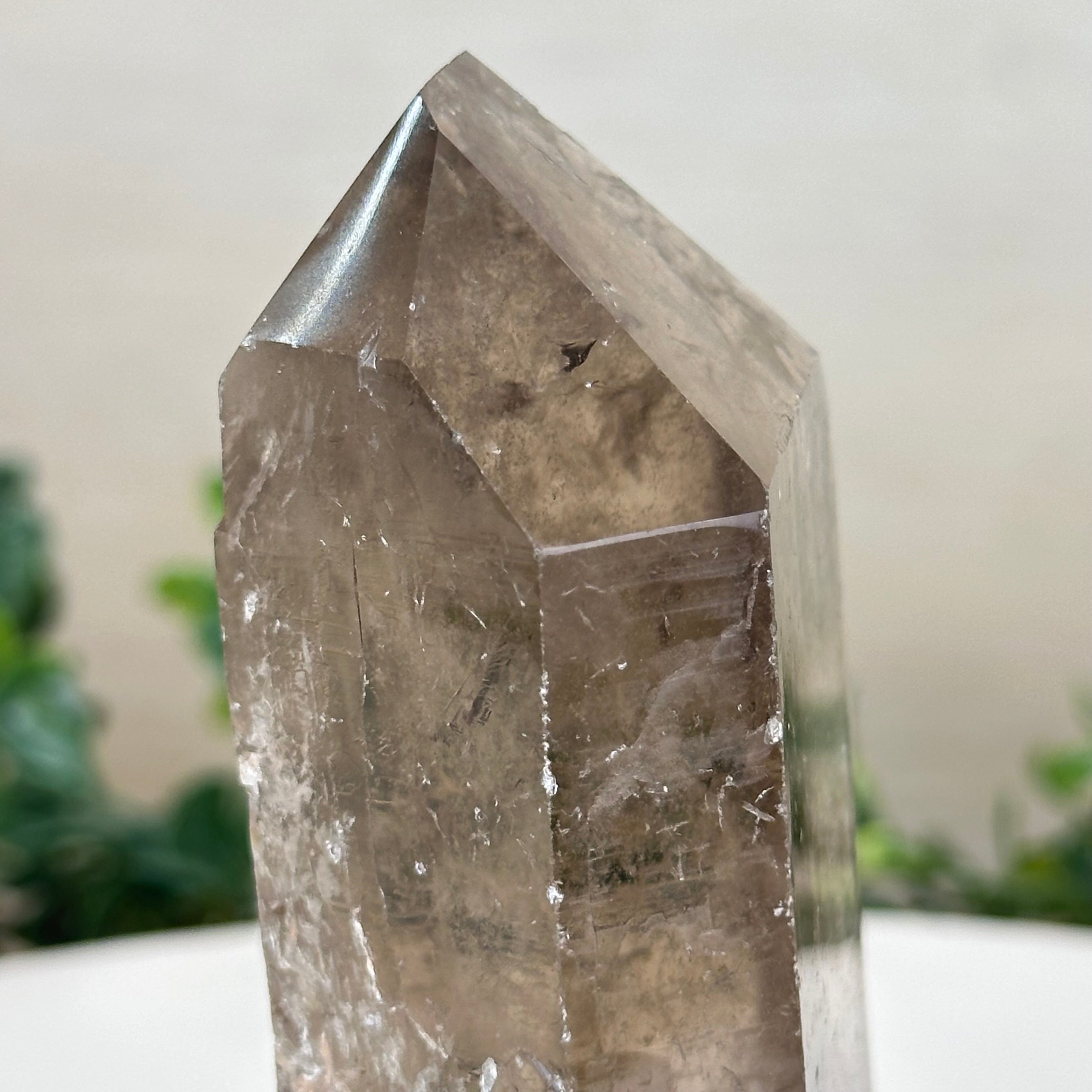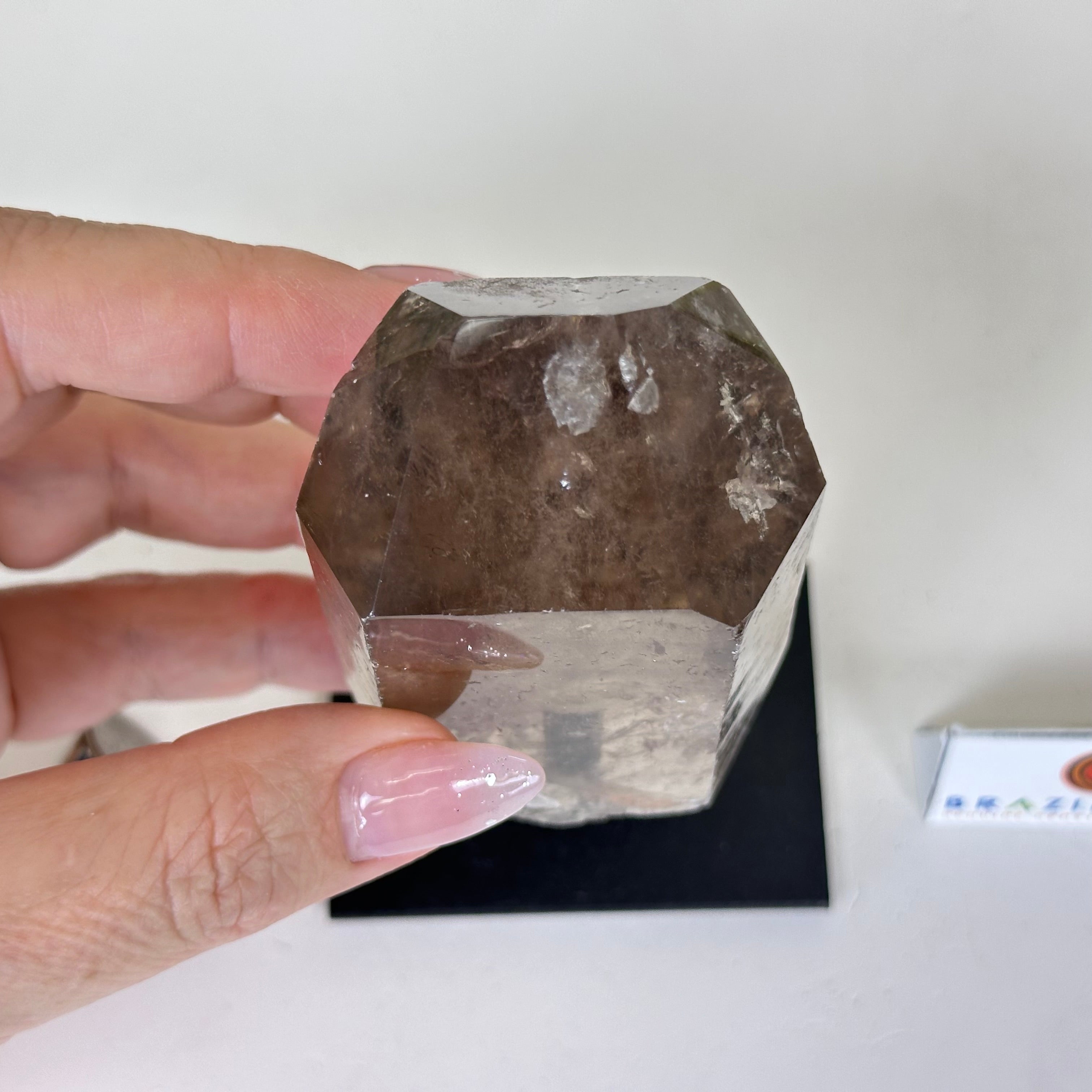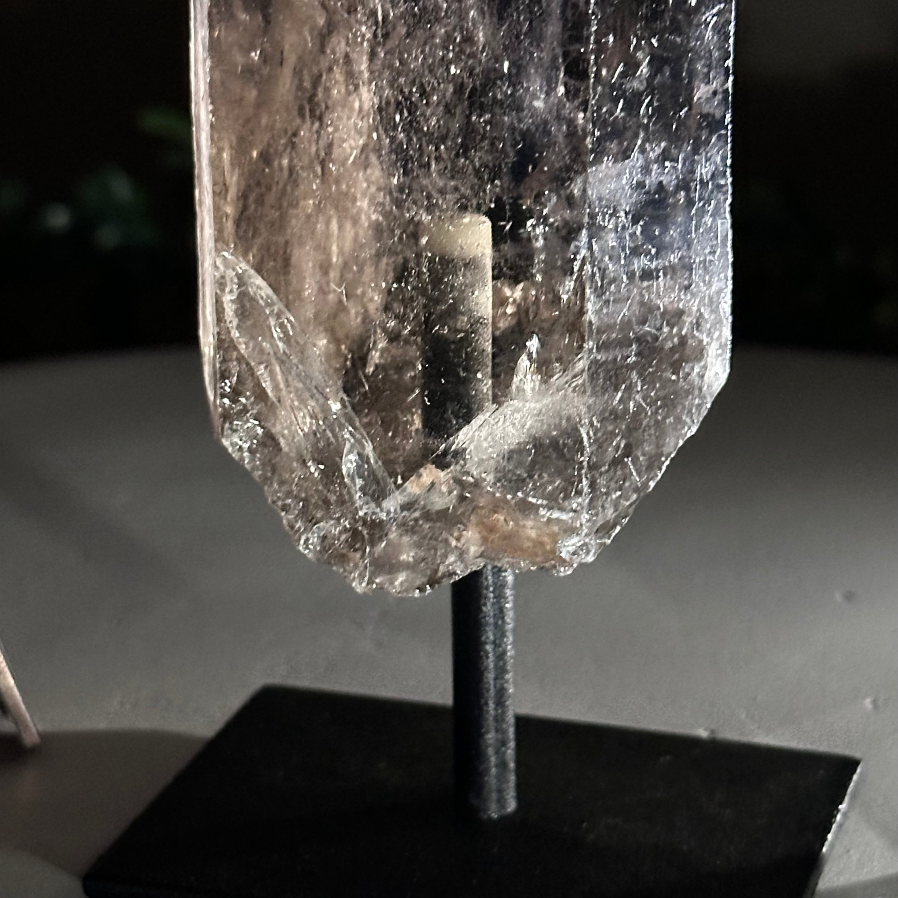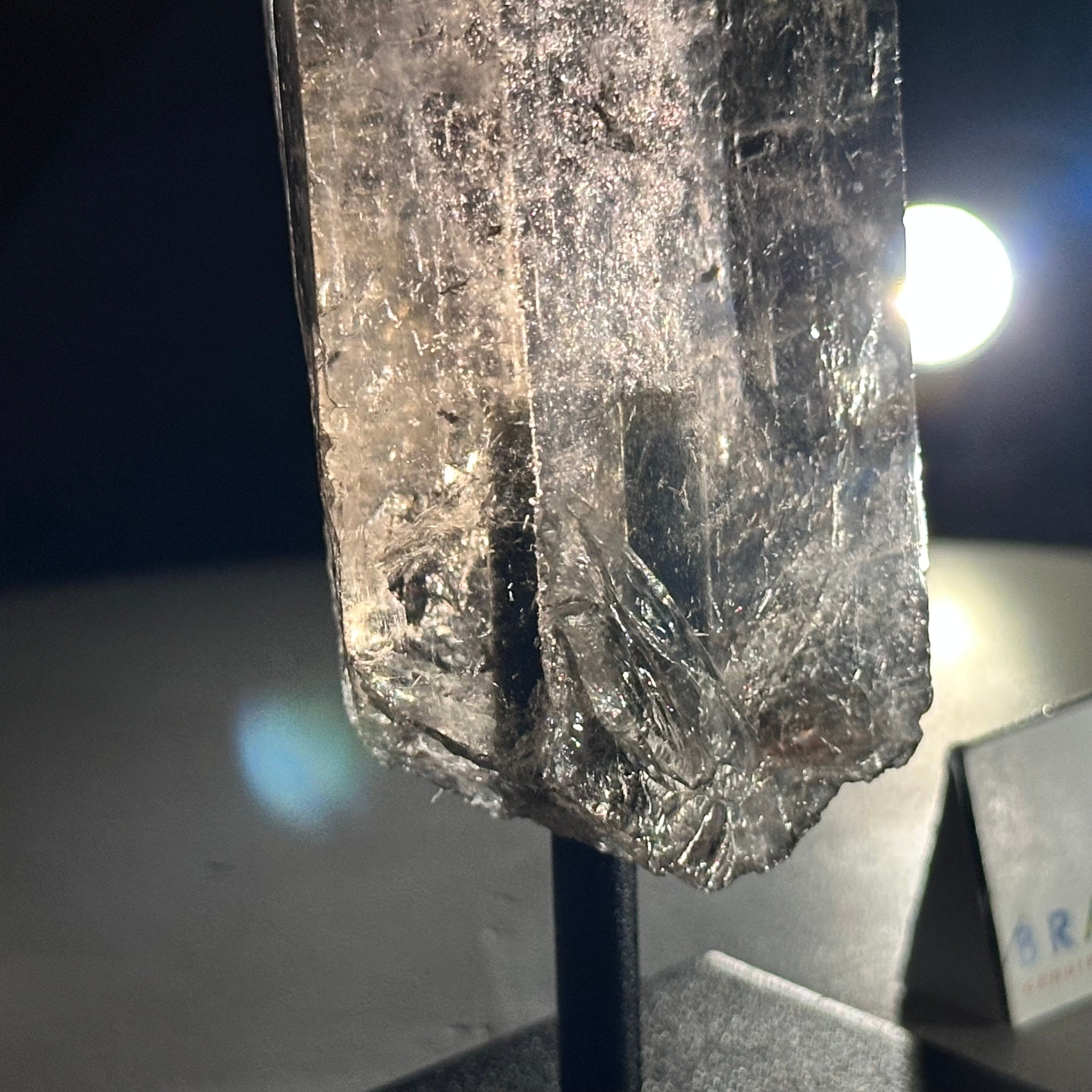 Enhance your home or sacred space with the multi-faceted beauty of this Smoky Quartz Crystal Point on a Metal Stand by Brazil Gems. Crafted from Brazilian Smoky Quartz, this all natural crystal has naturally smooth faces of a 6-sided point on the top, rough side edges, a warm hue and a translucent glow when lit from behind. Its calming presence is perfect for home décor, and its beauty and natural energy will enrich any environment.