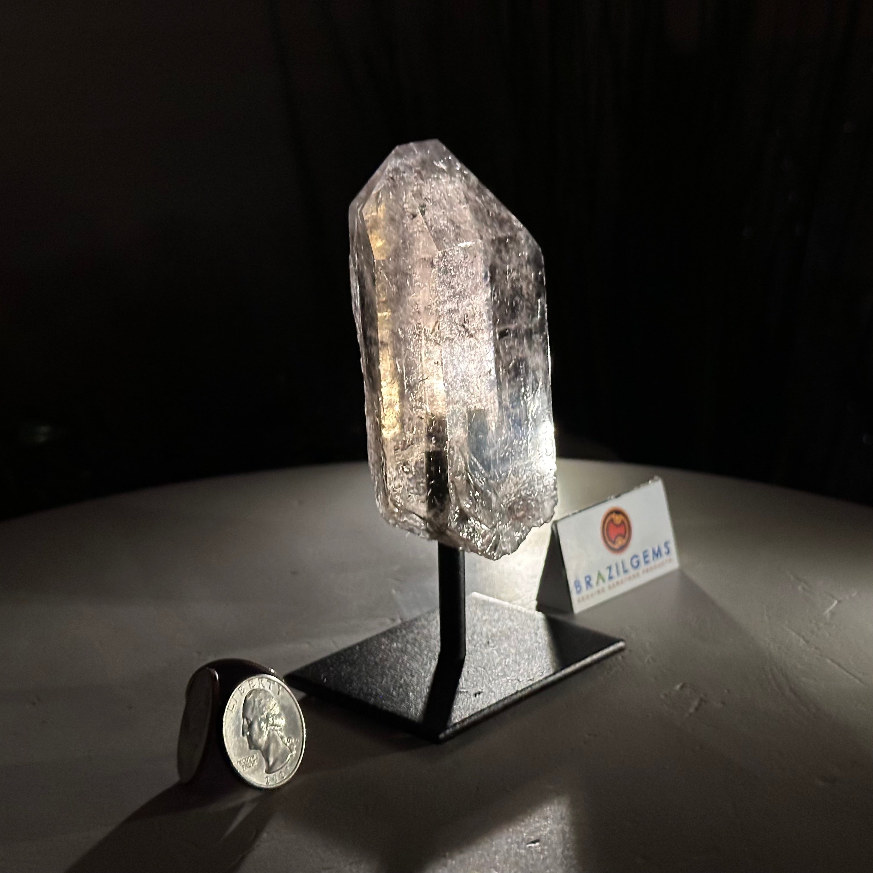 Disclaimer: This is a natural gemstone crystal sold by Brazil Gems® as is and as you see it in its images and video. It is the exact one you will receive. It may contain natural imperfections, scratches, repairs, and/or broken edges from the extraction, polishing, mounting, and prepping processes. A small hole was drilled into the bottom of the crystal in order to mount it on its black painted metal stand. At Brazil Gems® we make every effort to get measurements as exact as possible but they are done by human hands and eyes and therefore may have minor discrepancies.