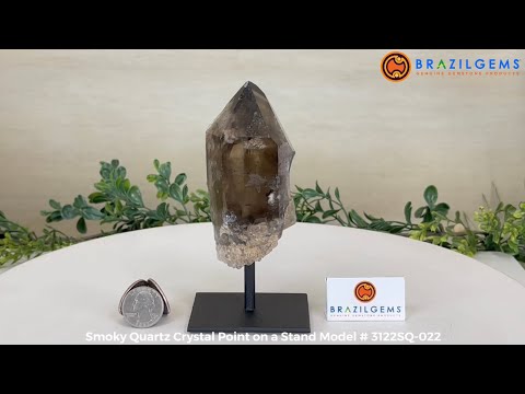 Enhance your home or sacred space with the multi-faceted beauty of this Smoky Quartz Crystal Point on a Metal Stand by Brazil Gems. Crafted from Brazilian Smoky Quartz, this all natural crystal has naturally smooth faces of a 6-sided point on the top, rough side edges, a warm hue and a translucent glow when lit from behind. Its calming presence is perfect for home décor, and its beauty and natural energy will enrich any environment.