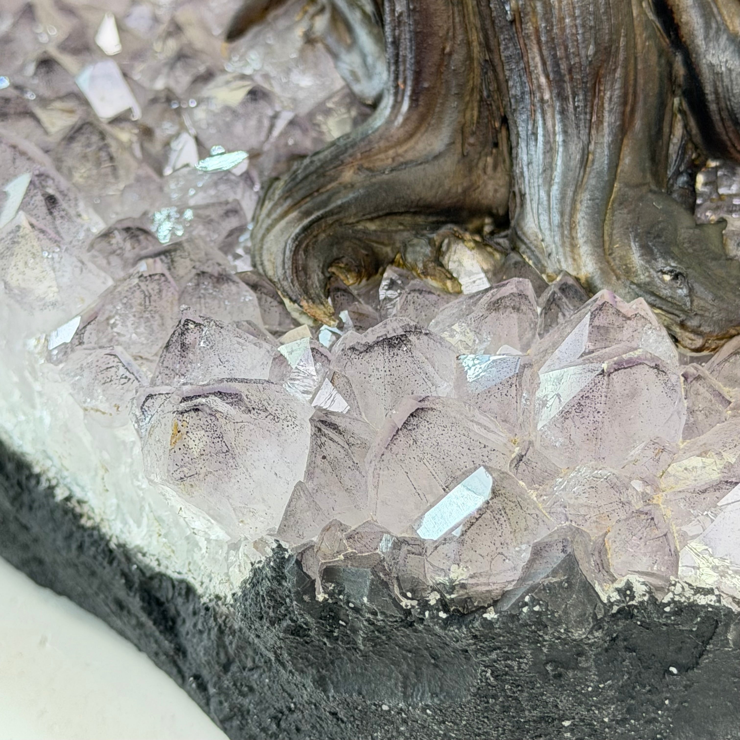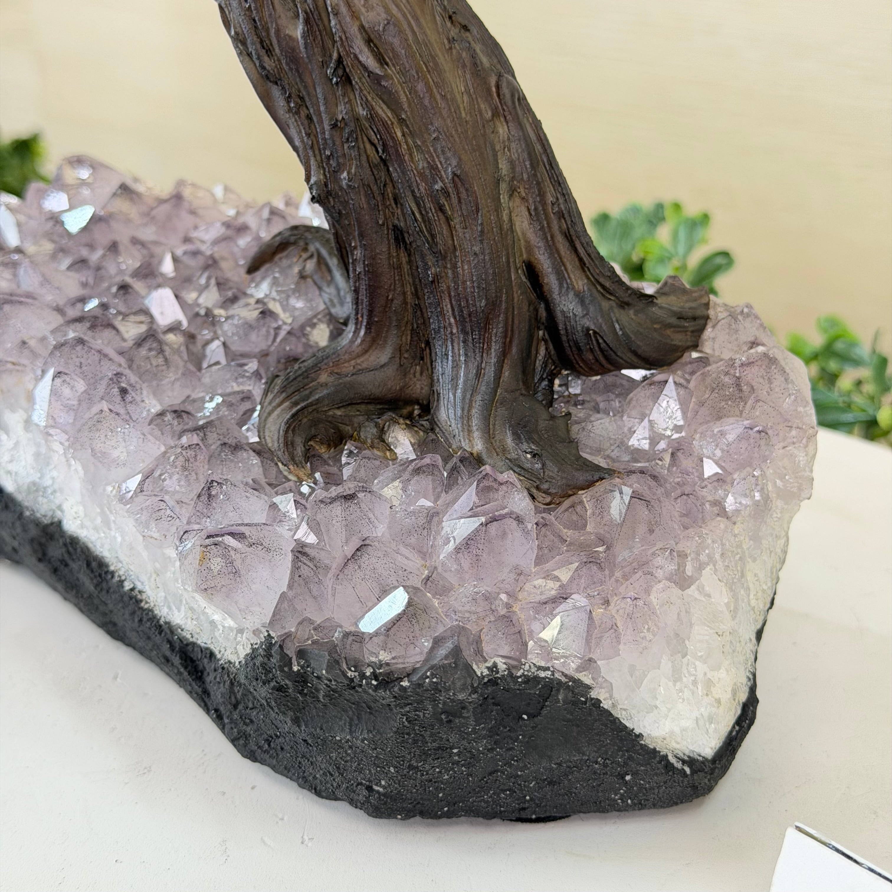 Rooted in a large natural Amethyst cluster, this tree is substantial in size—designed to become a focal point in any room, whether it’s a peaceful home corner or a thoughtful office space. It also makes a meaningful and lasting gift for someone special.