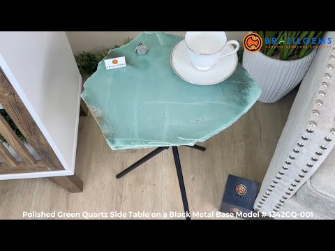 Natural Green Quartz Side Table on Black Metal Base, 23.6" Tall #1342GQ-001