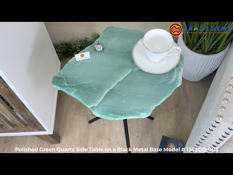 Natural Green Quartz Side Table on Black Metal Base, 24" Tall #1342GQ-003