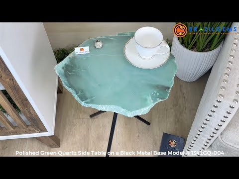 Natural Green Quartz Side Table on Black Metal Base, 23.8" Tall #1342GQ-004
