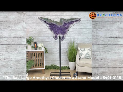 "The Bat" Amethyst Cluster, Metal Base, 163 lbs & 69" Tall #5491-0145