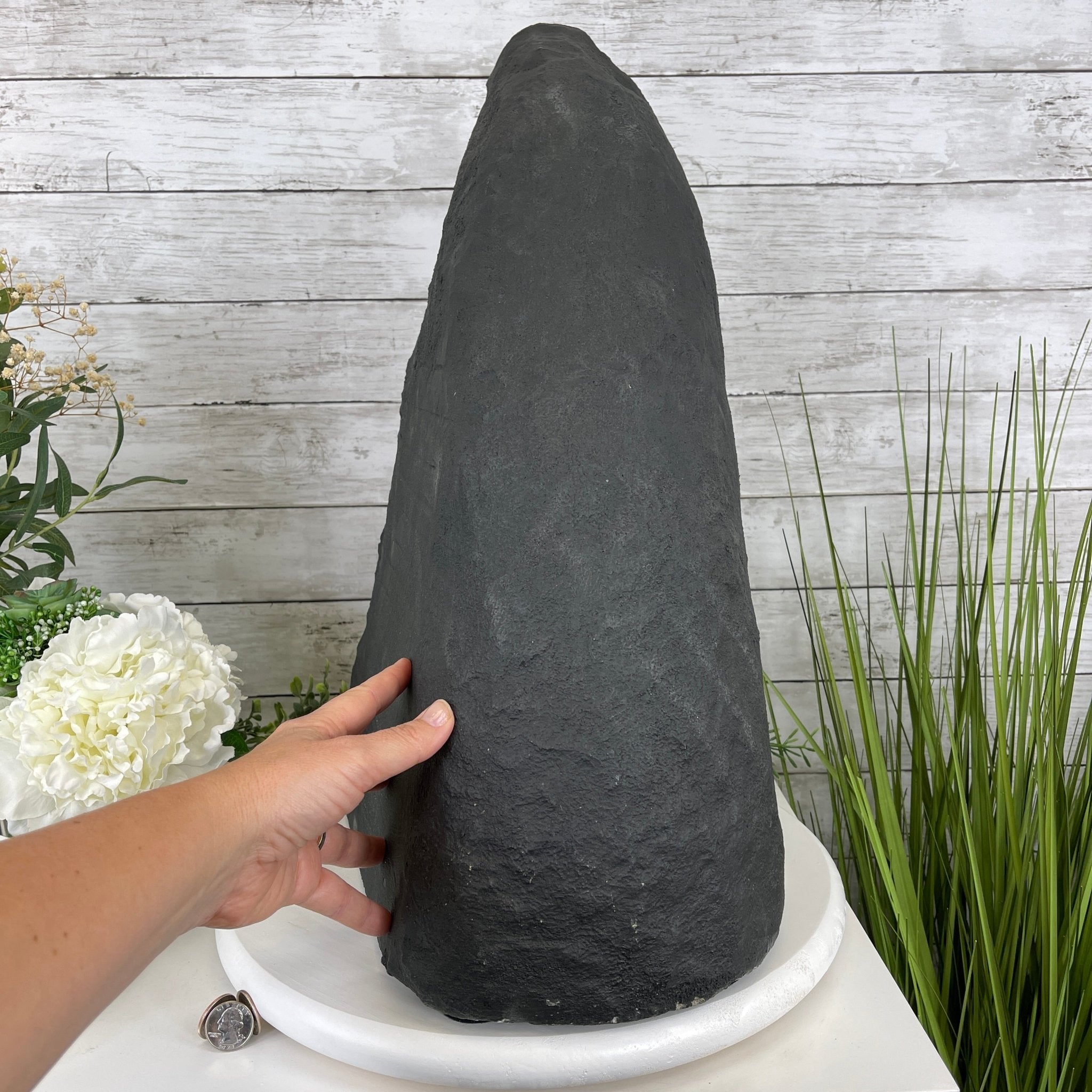Disclaimer: This is a natural gemstone crystal sold as is and as you see it in its images and video. It is the exact one you will receive. It may contain natural imperfections and/or imperfections, broken edges and repairs from the extraction, polishing and prepping processes. In order for it to stand on its own, the back and bottom have been reinforced with a small amount of cement then painted black.