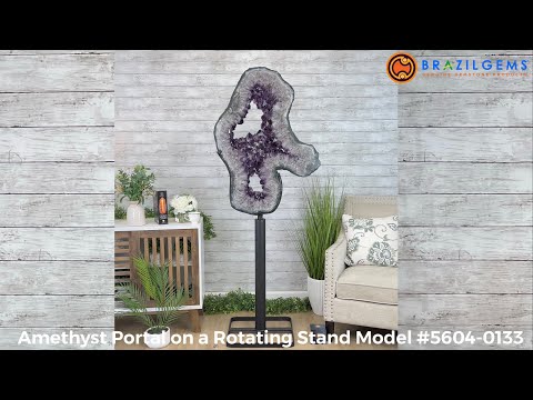 Brazil Gems® brings you this Large Super Quality Amethyst Portal which will be a breathtaking presence in any room with its large vivid violet points and white crystal bands atop a sturdy rotating base. It weighs 170.9 lbs and stands 73.5" tall.