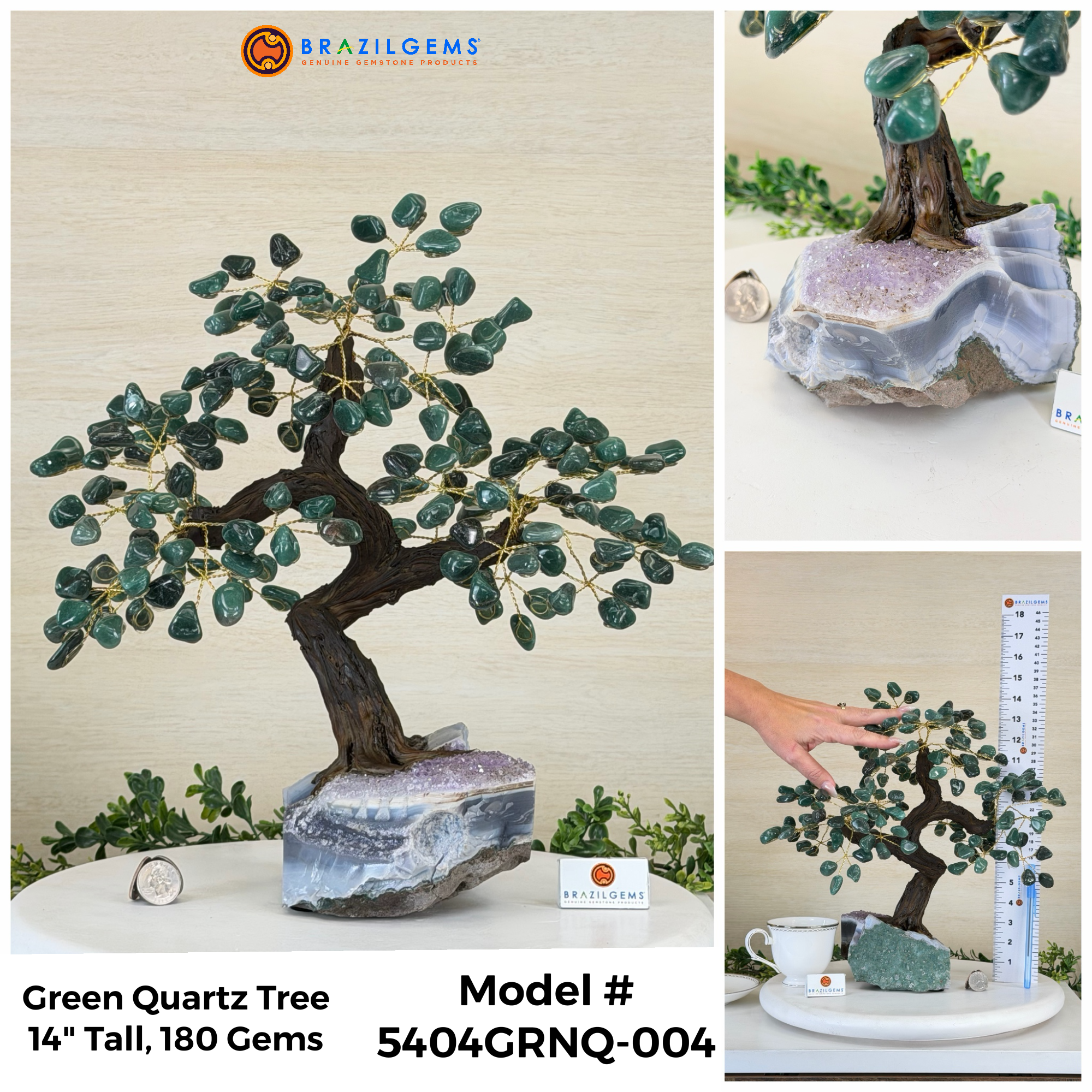 Green Quartz 14" Tall Bonsai Gemstone Tree, Amethyst Base, 180 Gems #5404GRNQ