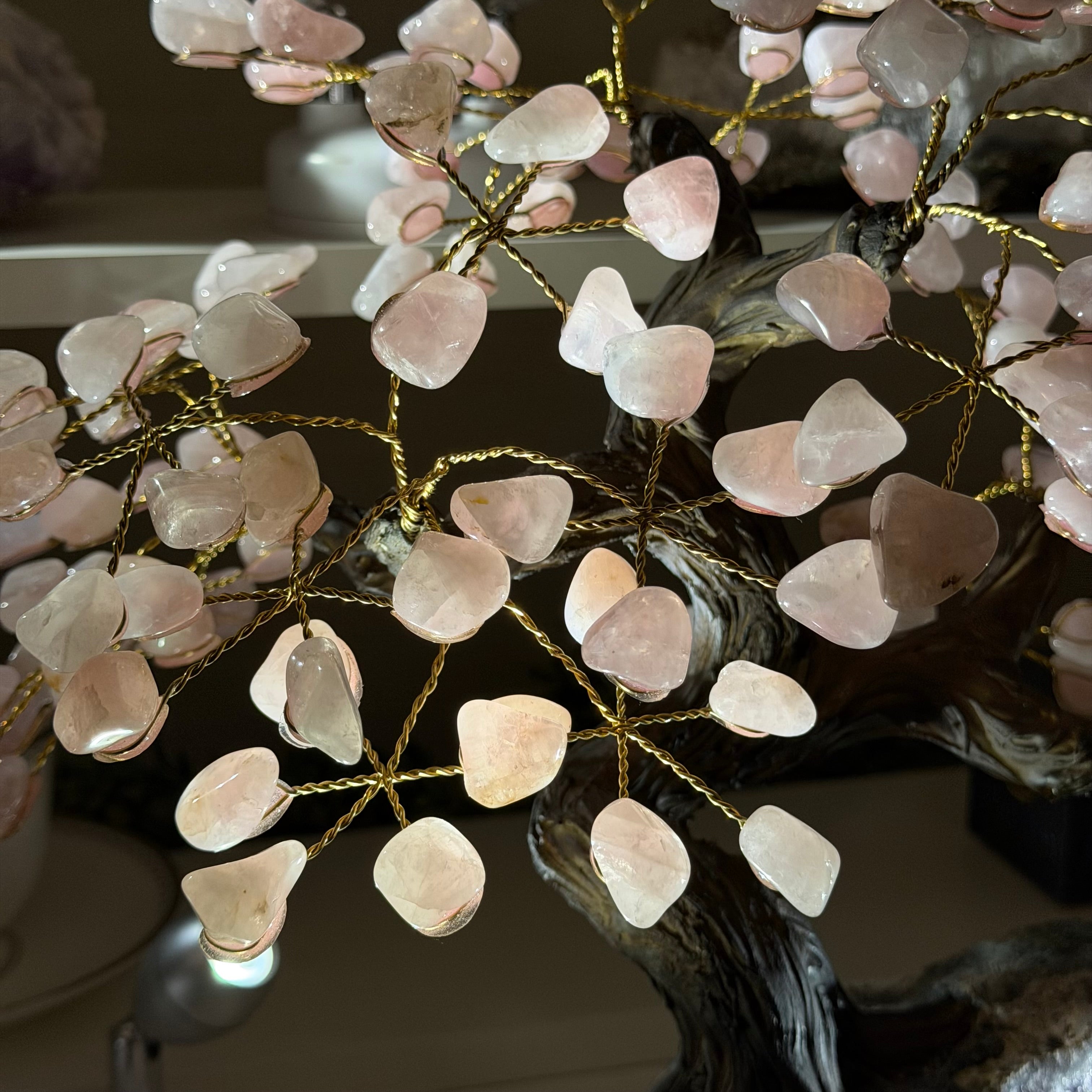 Rose Quartz 14" Tall Bonsai Gemstone Tree, Amethyst Base, 180 Gems #5404ROSQ