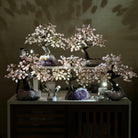 The process to make a gemstone tree like this is very extensive and meticulous. A special Amethyst cluster is selected for the base, the resin trunk and branches are crafted into a bonsai style by artisans in Brazil and then each gemstone is glued to the tree by hand.