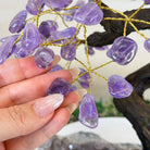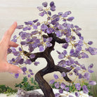 The process to make a gemstone tree like this is very extensive and meticulous. First, an Amethyst cluster is selected for the base, then a resin trunk and branches are crafted into a bonsai style by artisans in Brazil and finally each gemstone is glued to the tree by hand. The result is a work of art that radiates harmony, care, and intention.