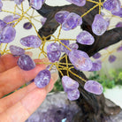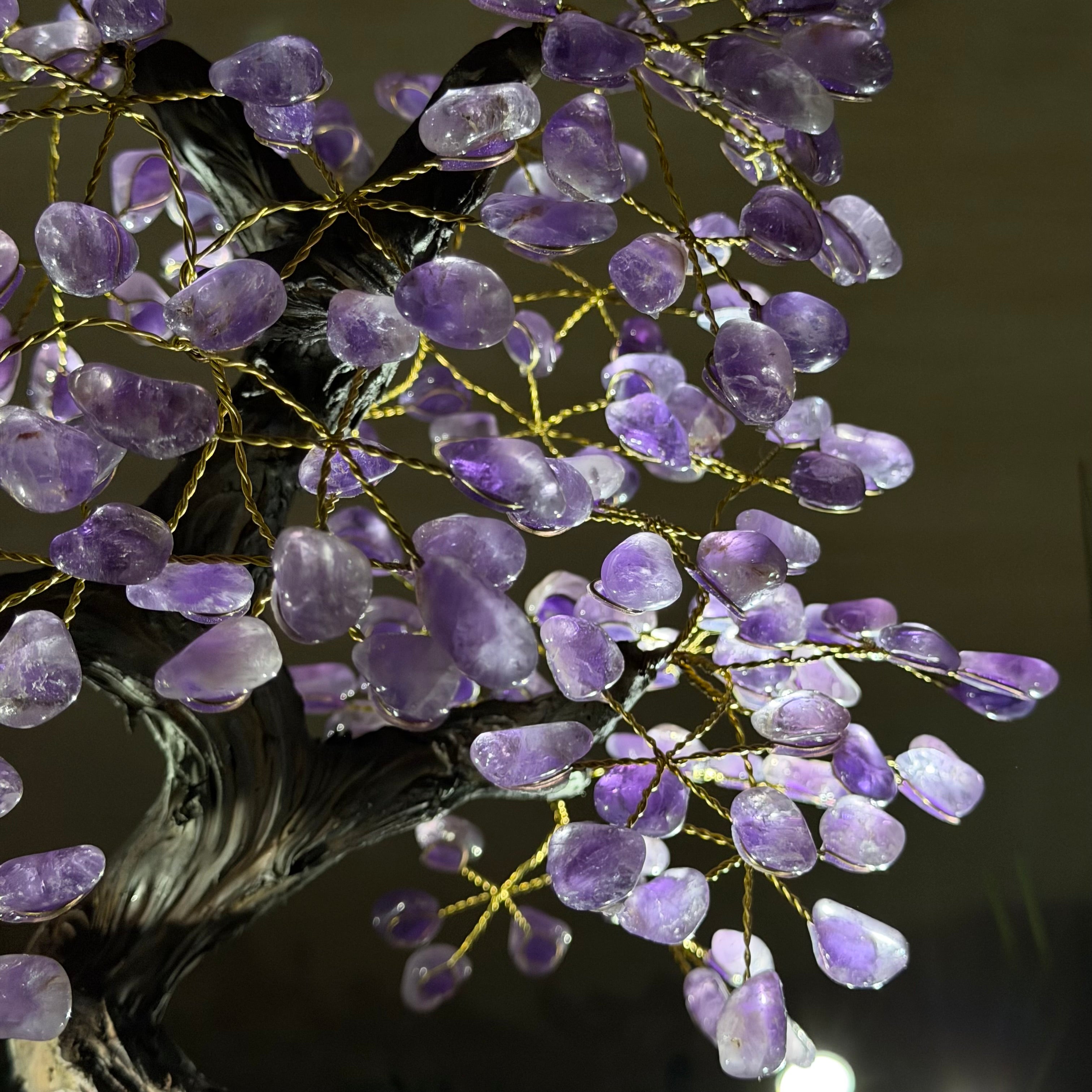 The process to make a gemstone tree like this is very extensive and meticulous. First, an Amethyst cluster is selected for the base, then a resin trunk and branches are crafted into a bonsai style by artisans in Brazil and finally each gemstone is glued to the tree by hand. The result is a work of art that radiates harmony, care, and intention.