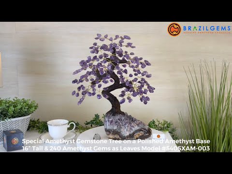 What makes this tree Special? Its polished Amethyst cluster base and its gemstones leaves are of a higher quality crystal with deeper purple colors and clarity making it even more beautiful.