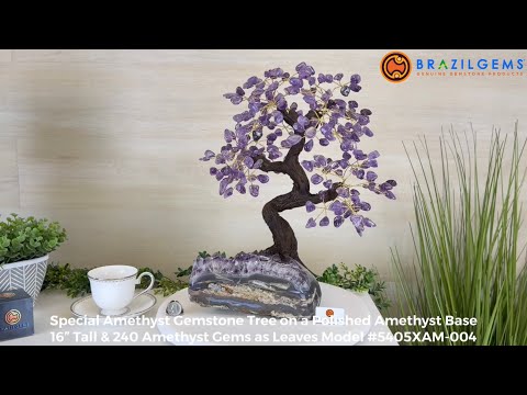 What makes this tree Special? Its polished Amethyst cluster base and its gemstones leaves are of a higher quality crystal with deeper purple colors and clarity making it even more beautiful.