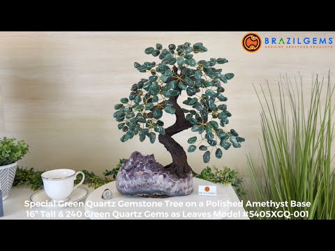 Disclaimer: This is a genuine gemstone handmade item sold by Brazil Gems® as is and as you see it in its images and video. It is the exact tree you will receive. The base may contain natural imperfections as well as imperfections, repairs and broken edges from the extraction, polishing, and prepping processes and the branches and leaf gemstones may contain imperfections as well. At Brazil Gems® we make every effort to get measurements as exact as possible but they are done by human hands and eyes and therefore may have minor discrepancies. For safe shipping, the branches will arrive compacted—you’ll simply need to gently “fluff” or spread them into place upon arrival. Also, it's possible a gemstone "leaf" might fall off of a branch. If this happens, it's a simple fix with hot glue or super glue.